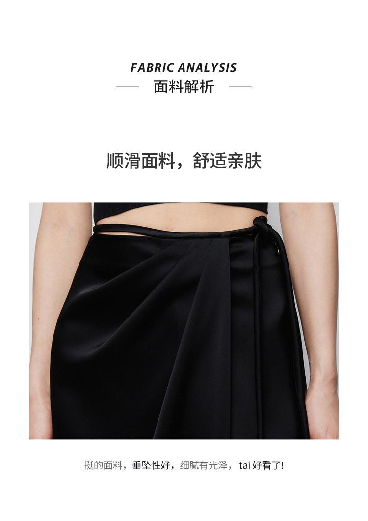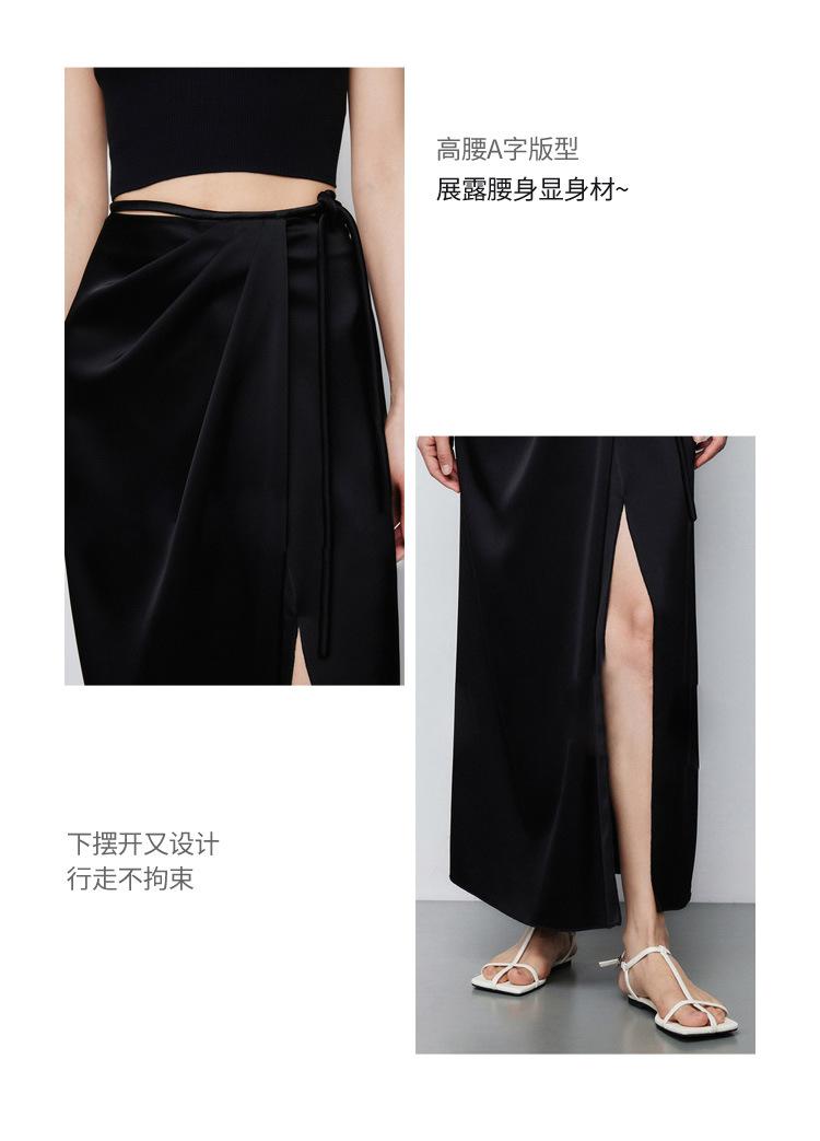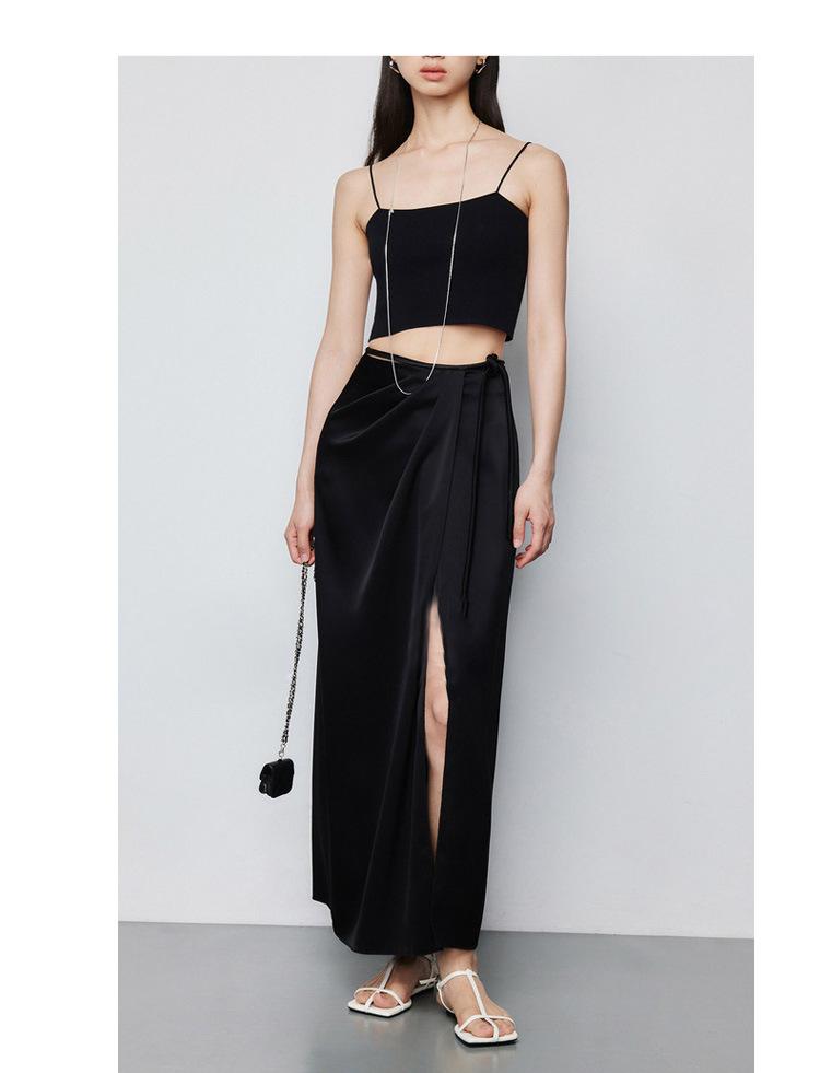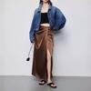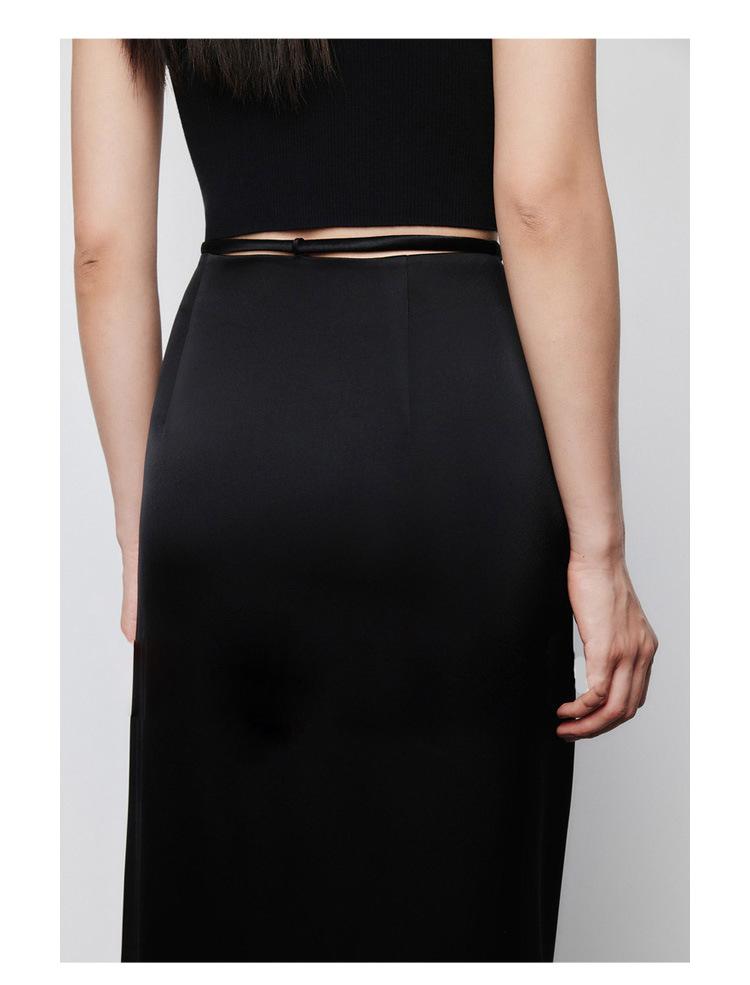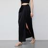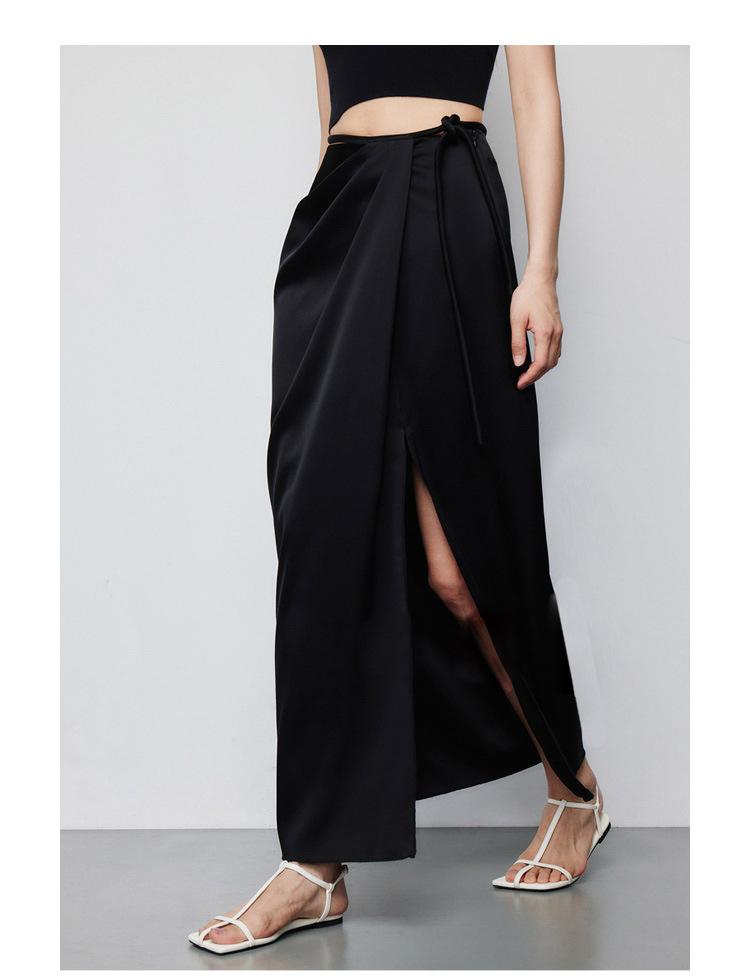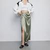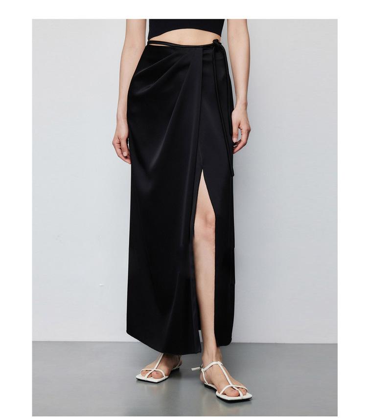 Falda de acetato satinado de una pieza de diseñador de estilo retro de doble cara con cordones y abertura alta en la cadera, versátil