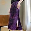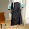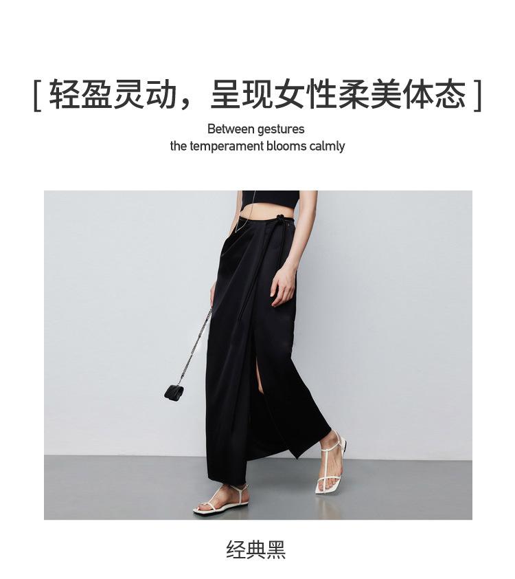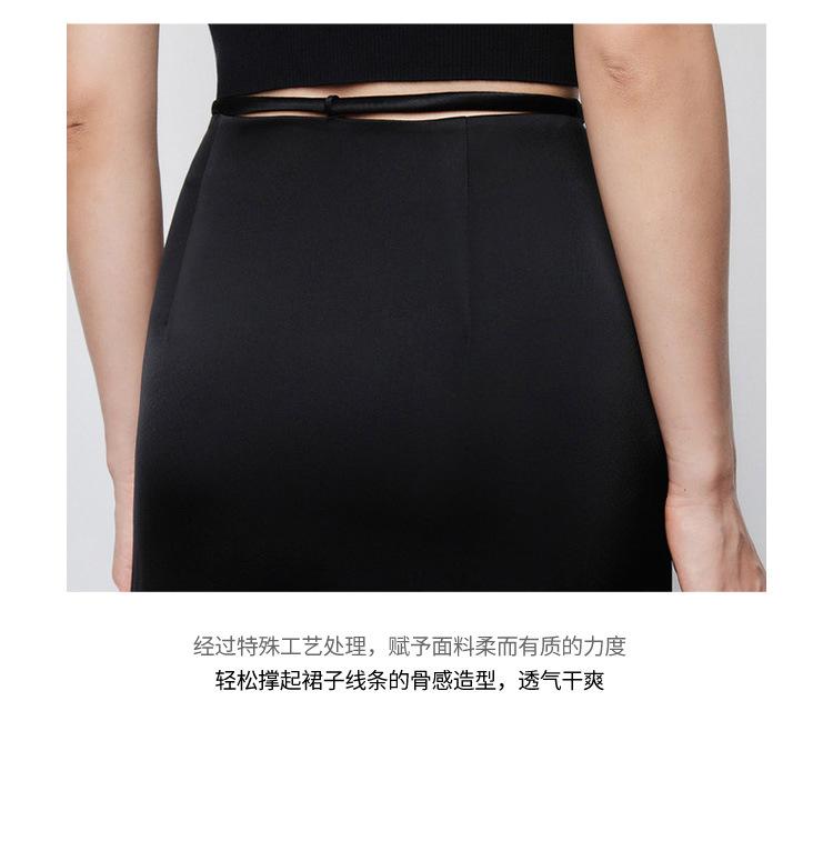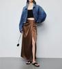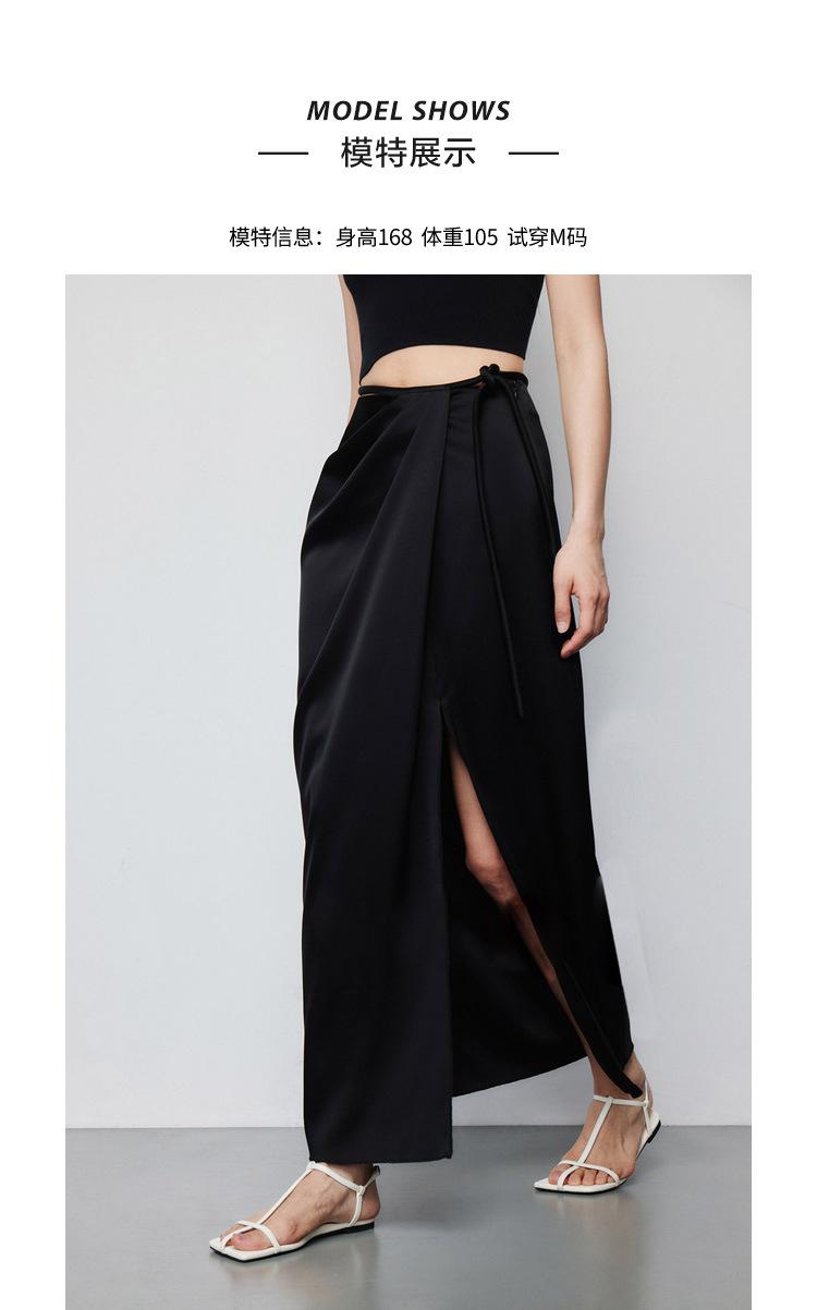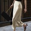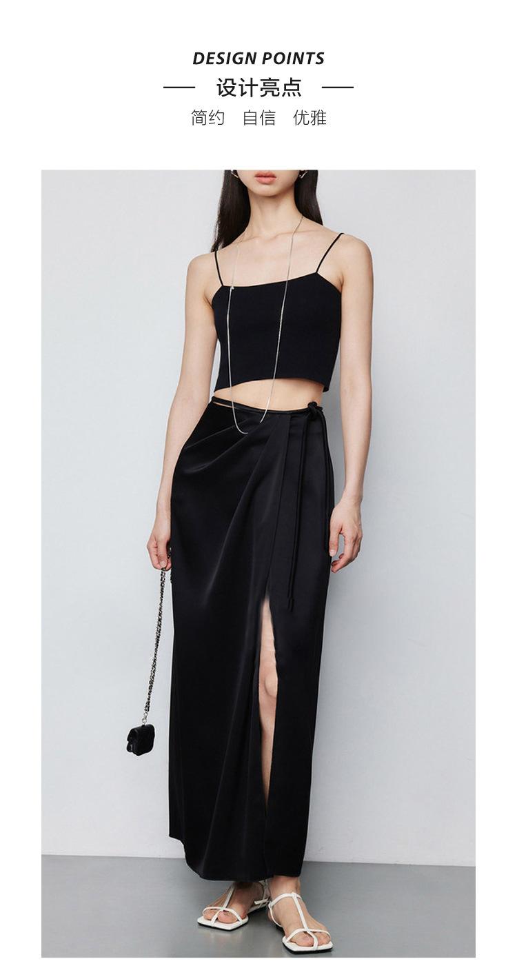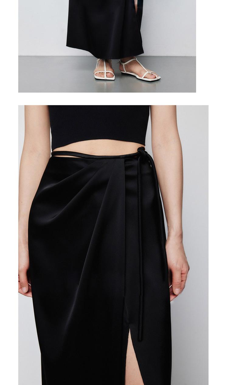 Falda de acetato satinado de una pieza de diseñador de estilo retro de doble cara con cordones y abertura alta en la cadera, versátil