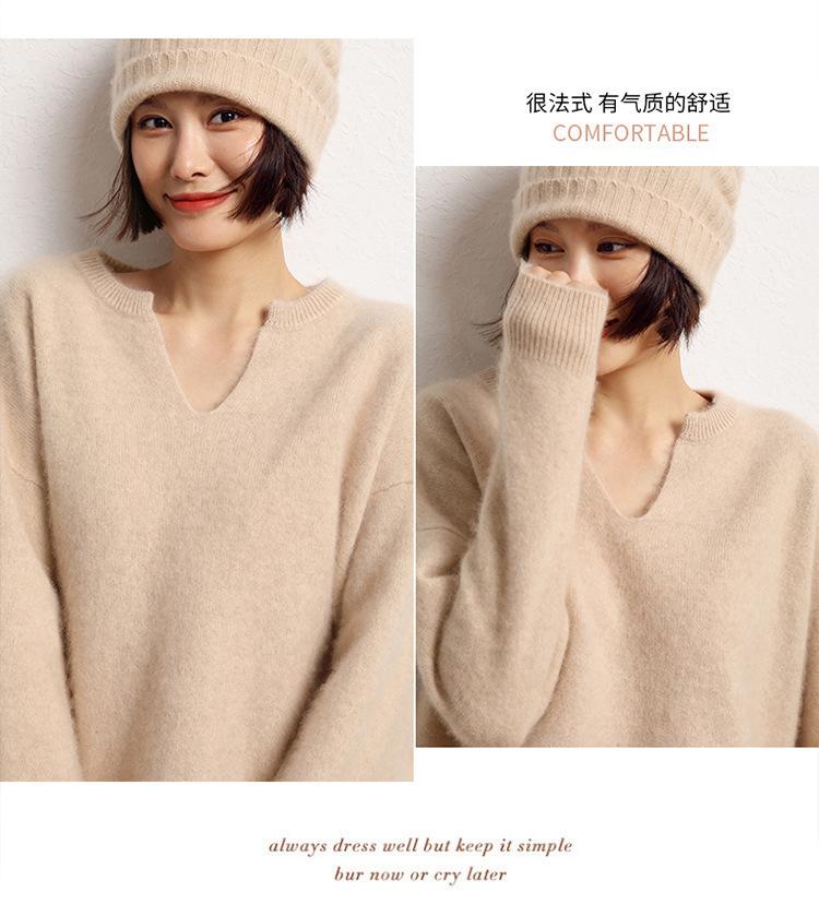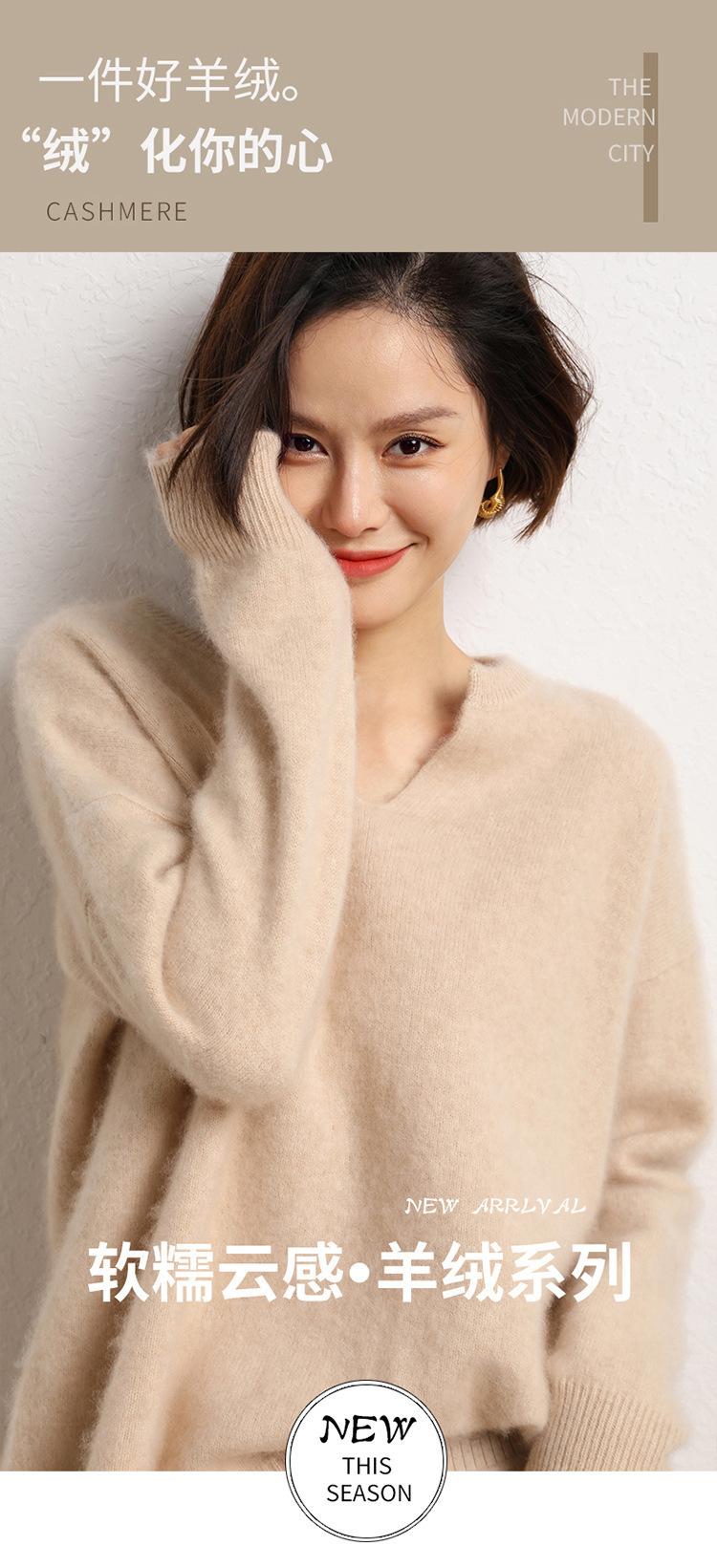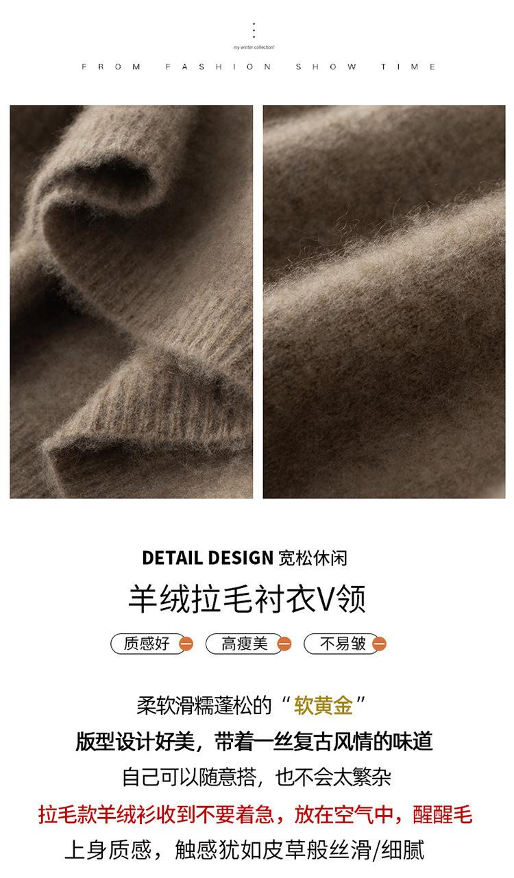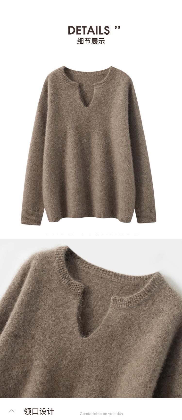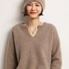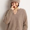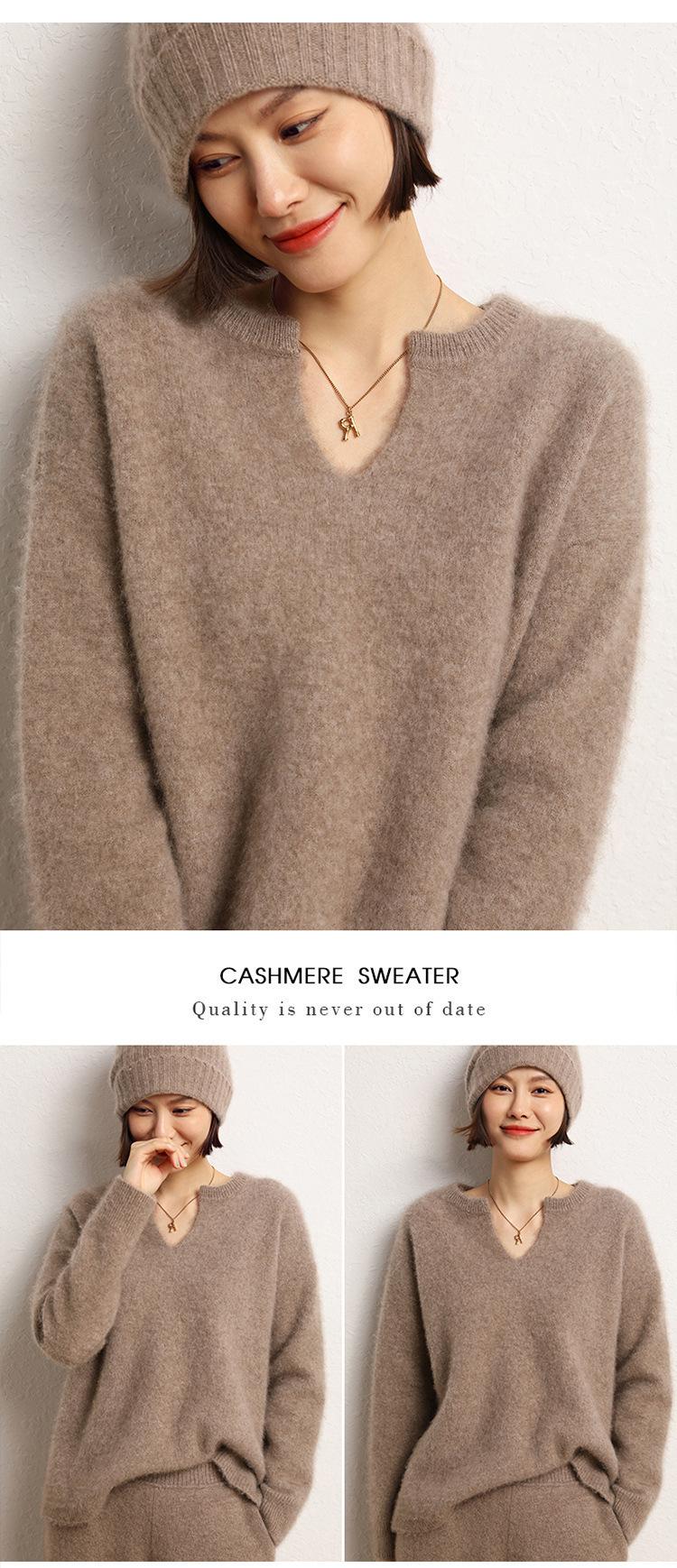 Suéter corto de cachemira para mujer, otoño e invierno, holgado, cepillado, con cuello en V, color liso, 2023