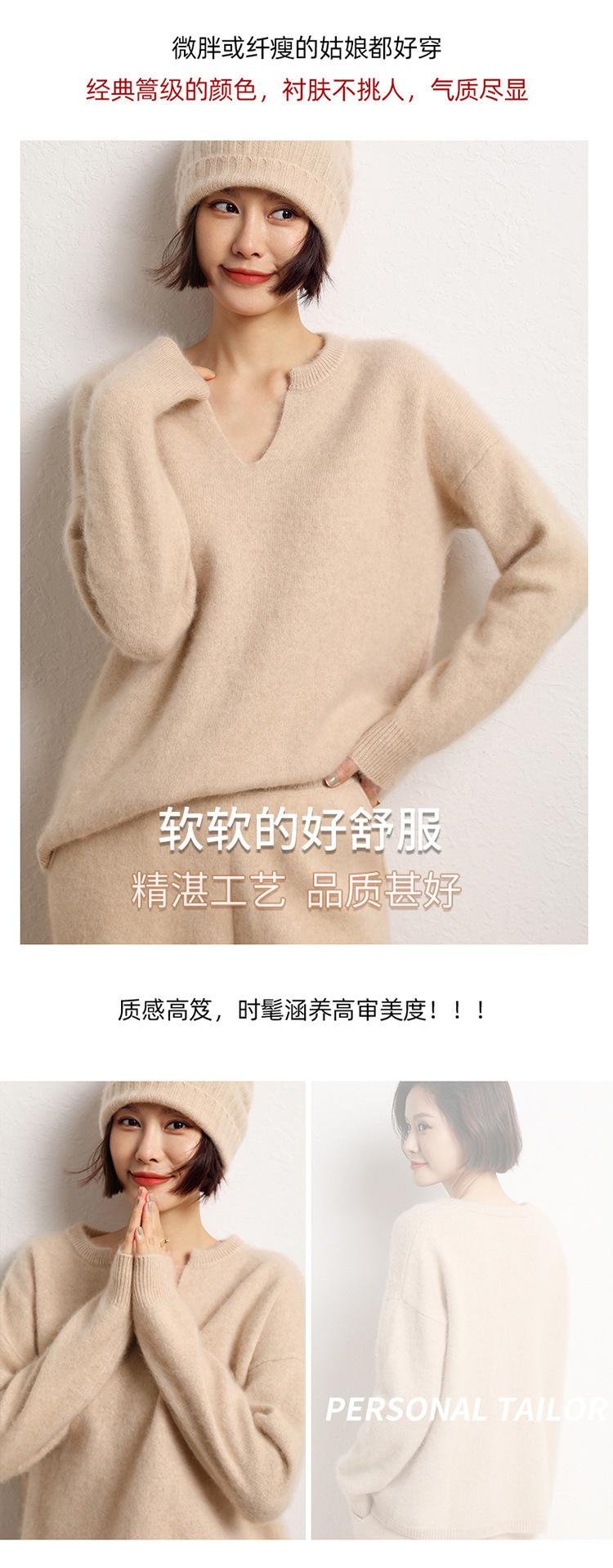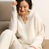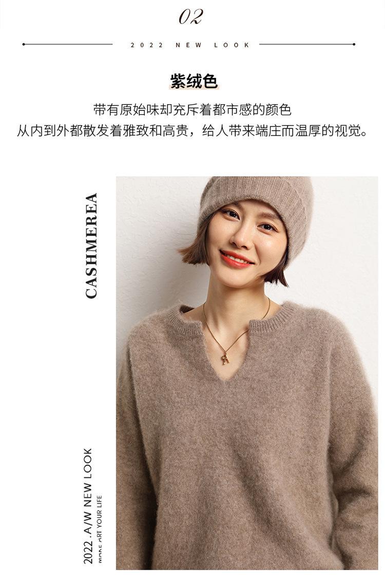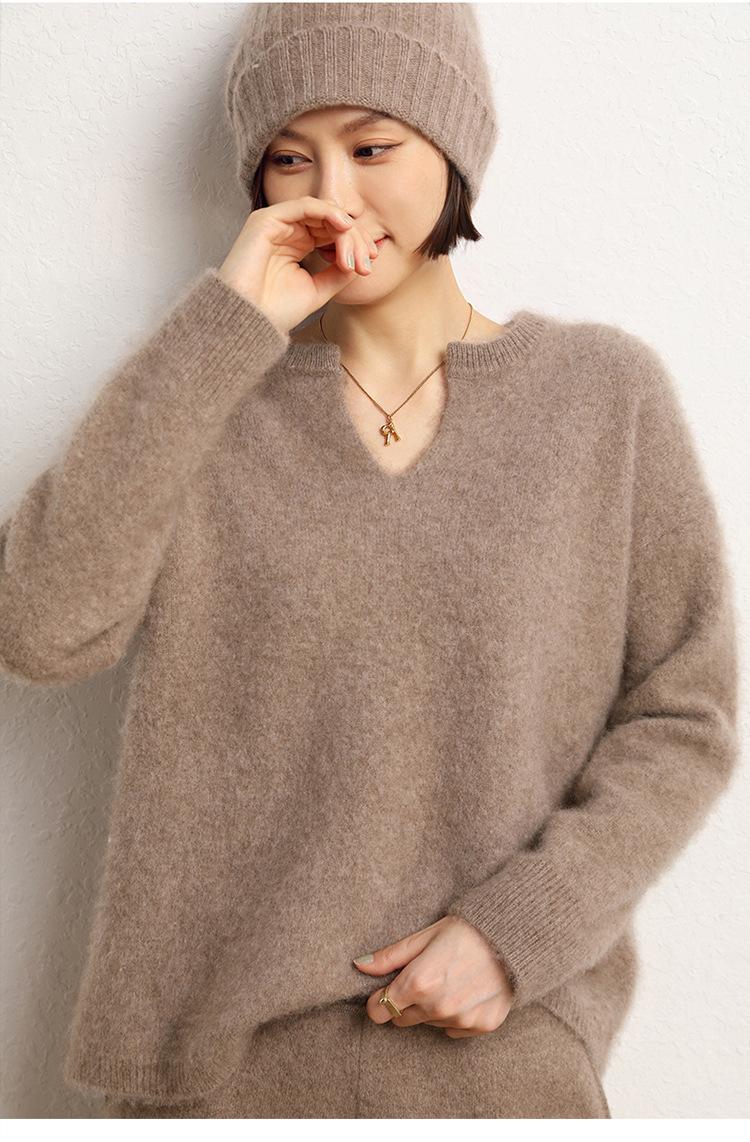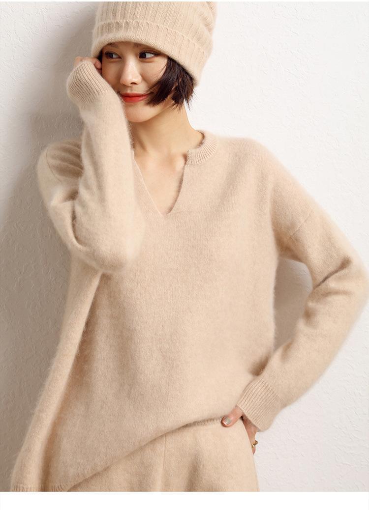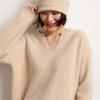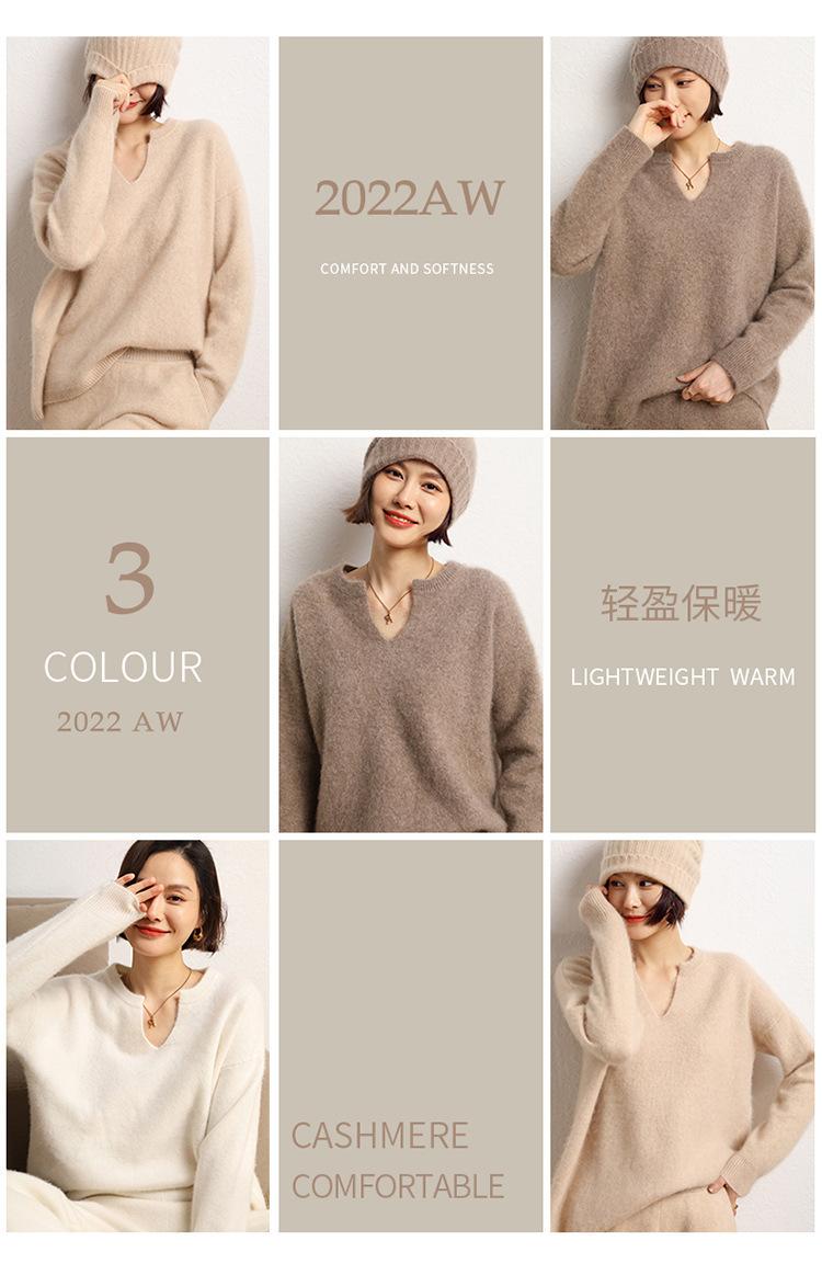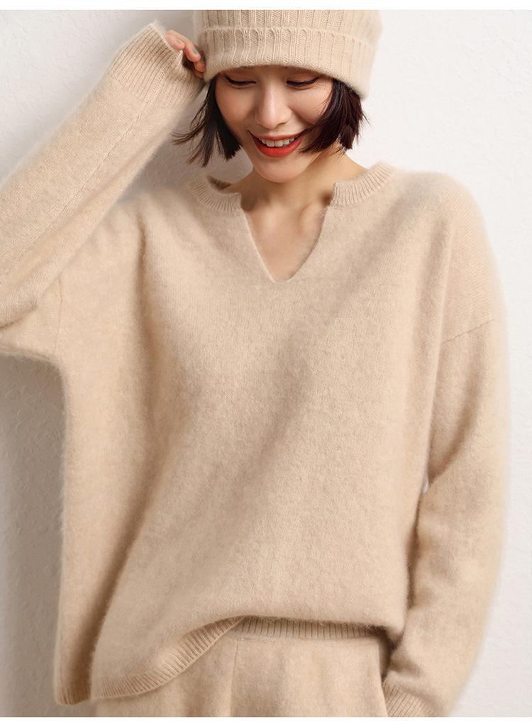 Suéter corto de cachemira para mujer, otoño e invierno, holgado, cepillado, con cuello en V, color liso, 2023