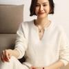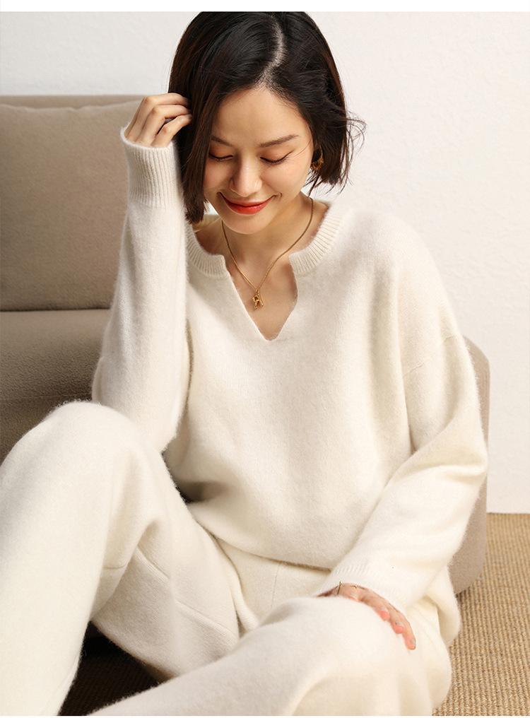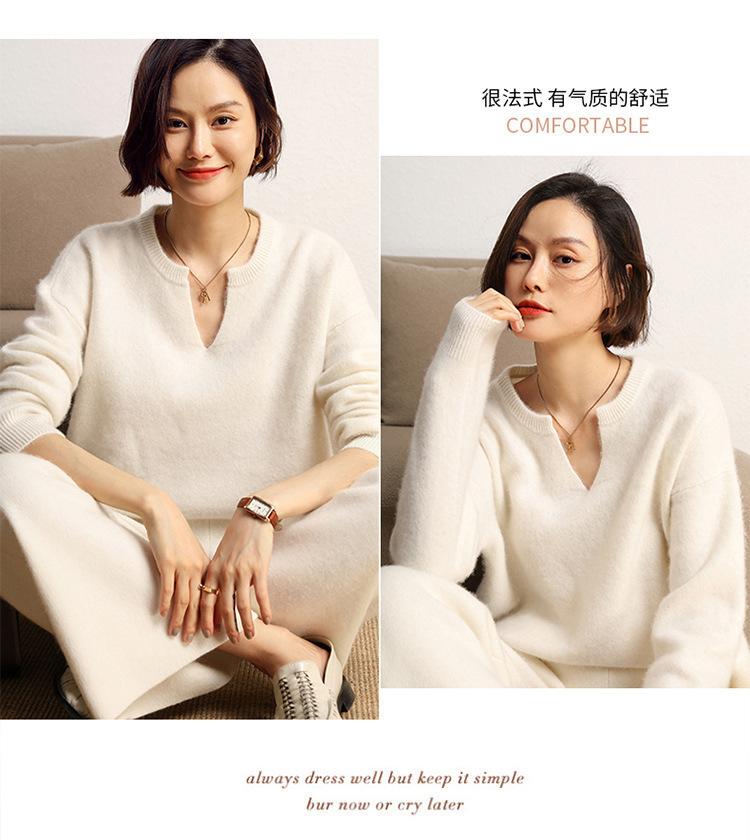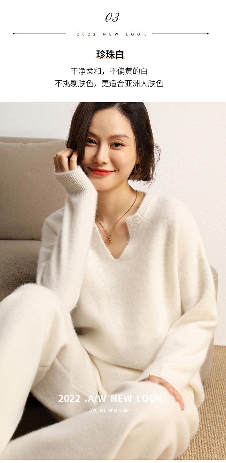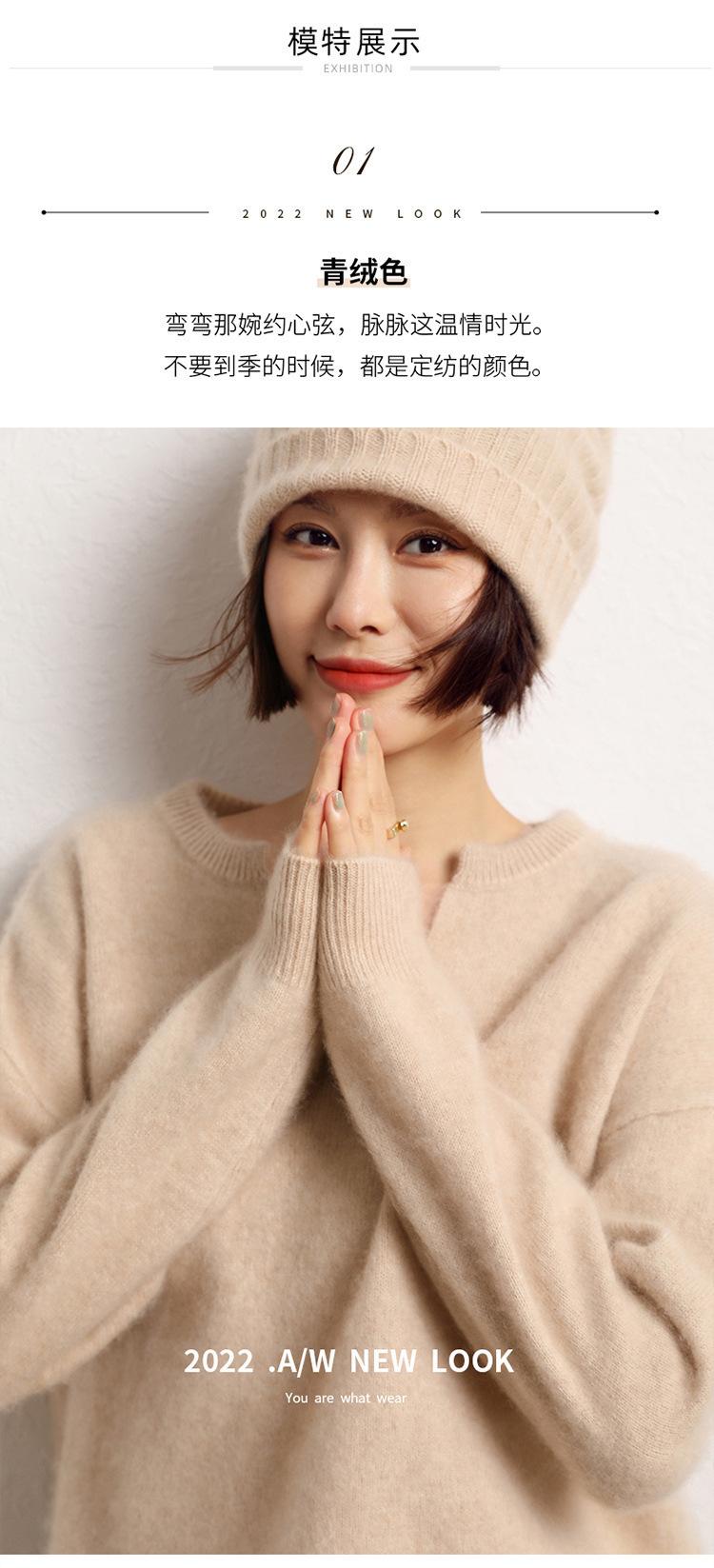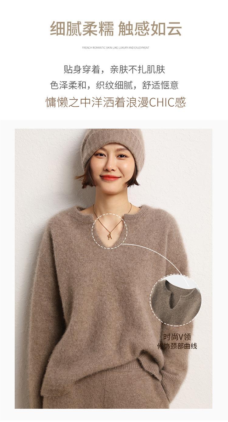 Suéter corto de cachemira para mujer, otoño e invierno, holgado, cepillado, con cuello en V, color liso, 2023