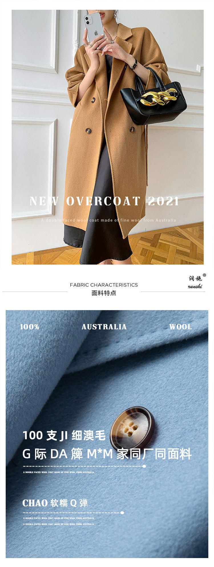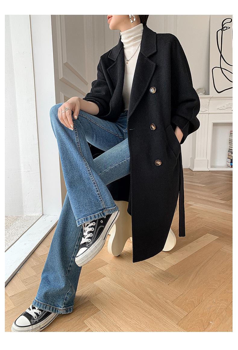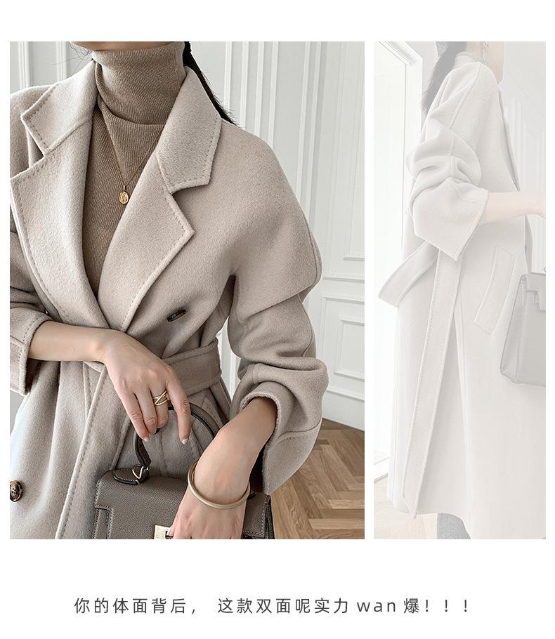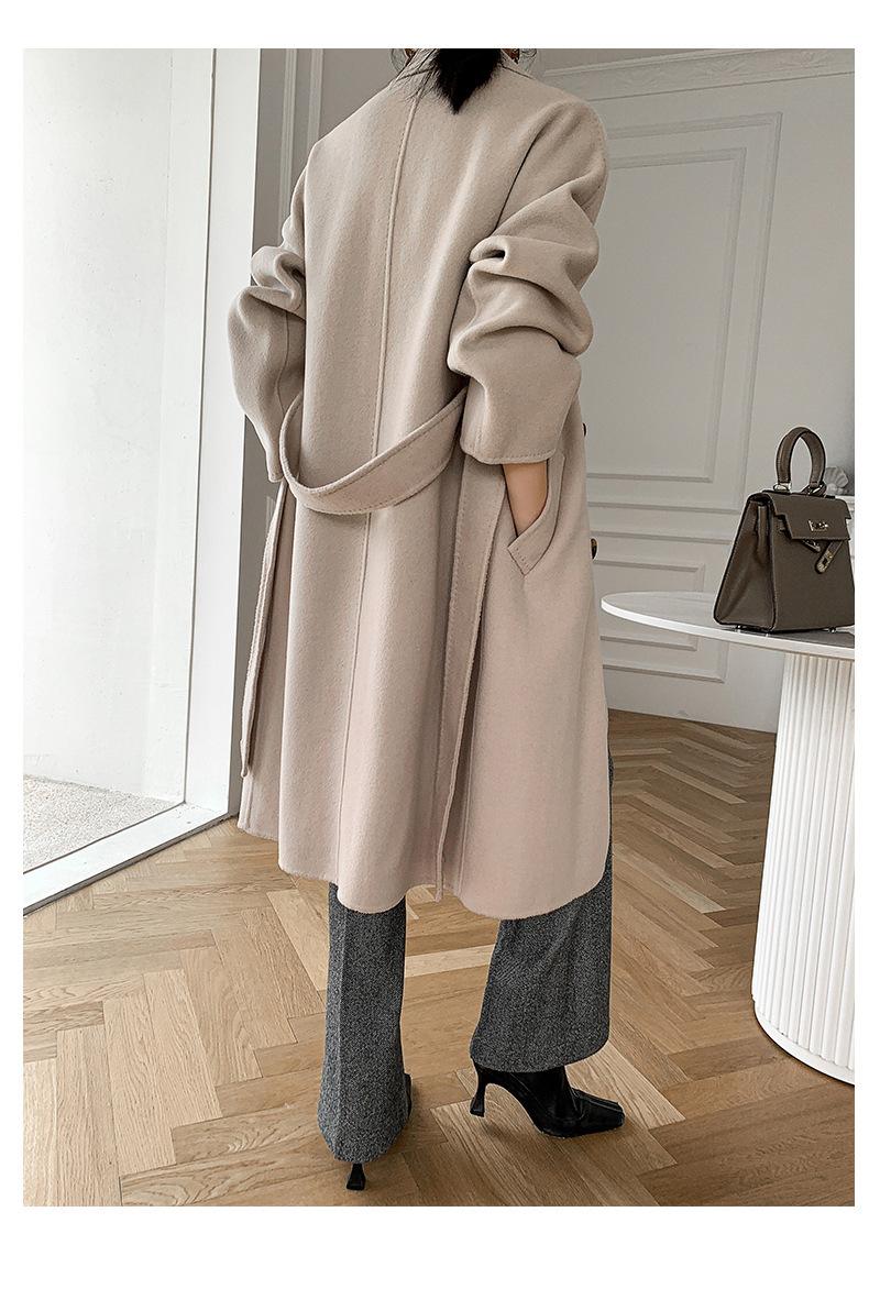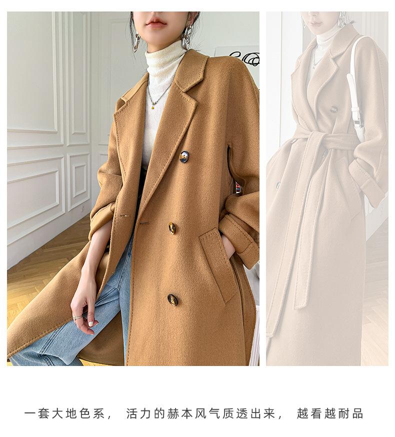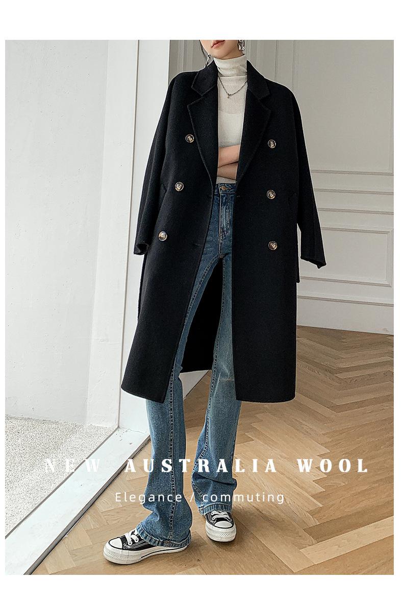 Abrigo para Mujer 2025 Nuevo Lana de Doble Cara Largo Medio Otoño e Invierno Elegante Estilo Hepburn Lana Exterior
