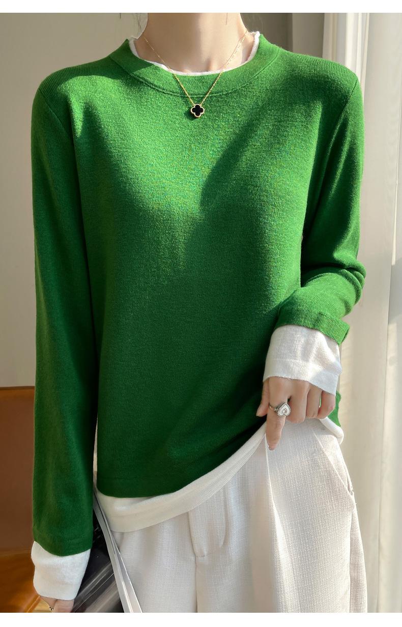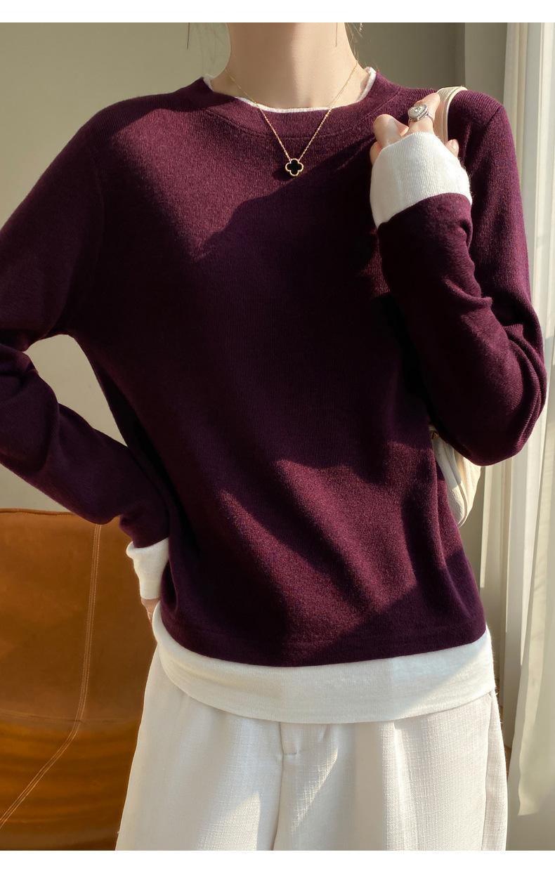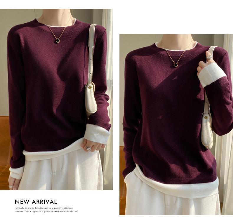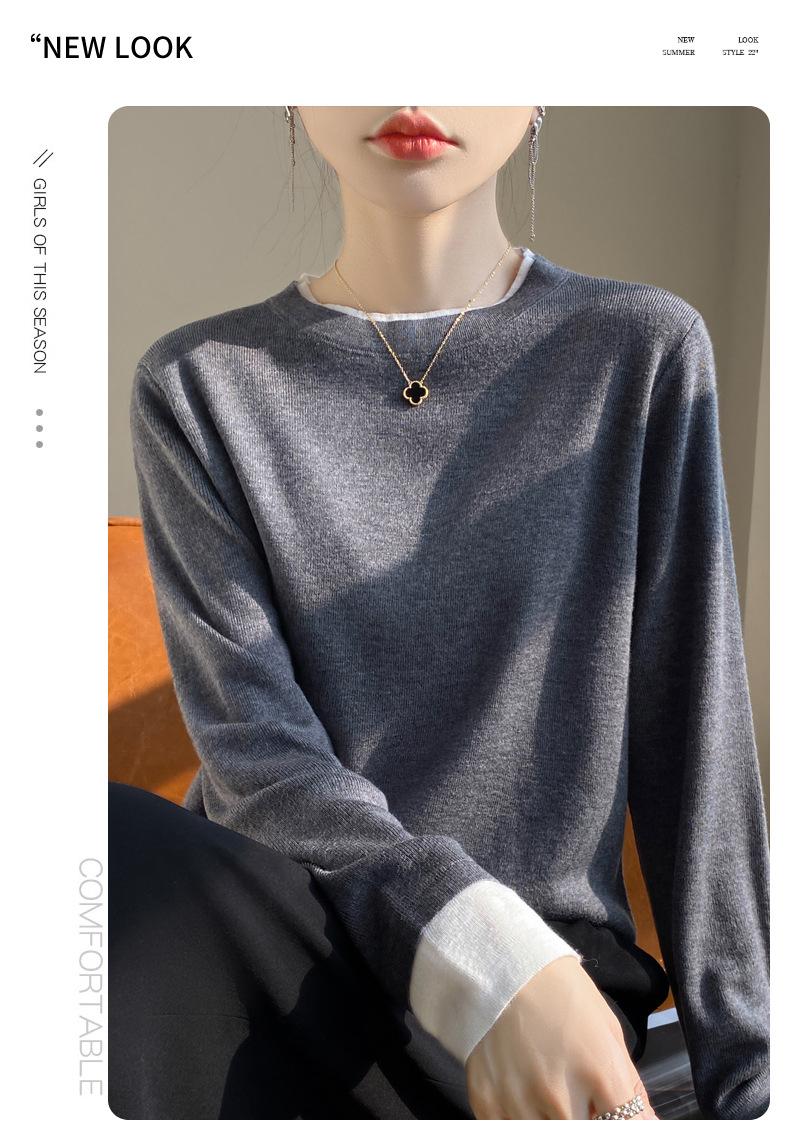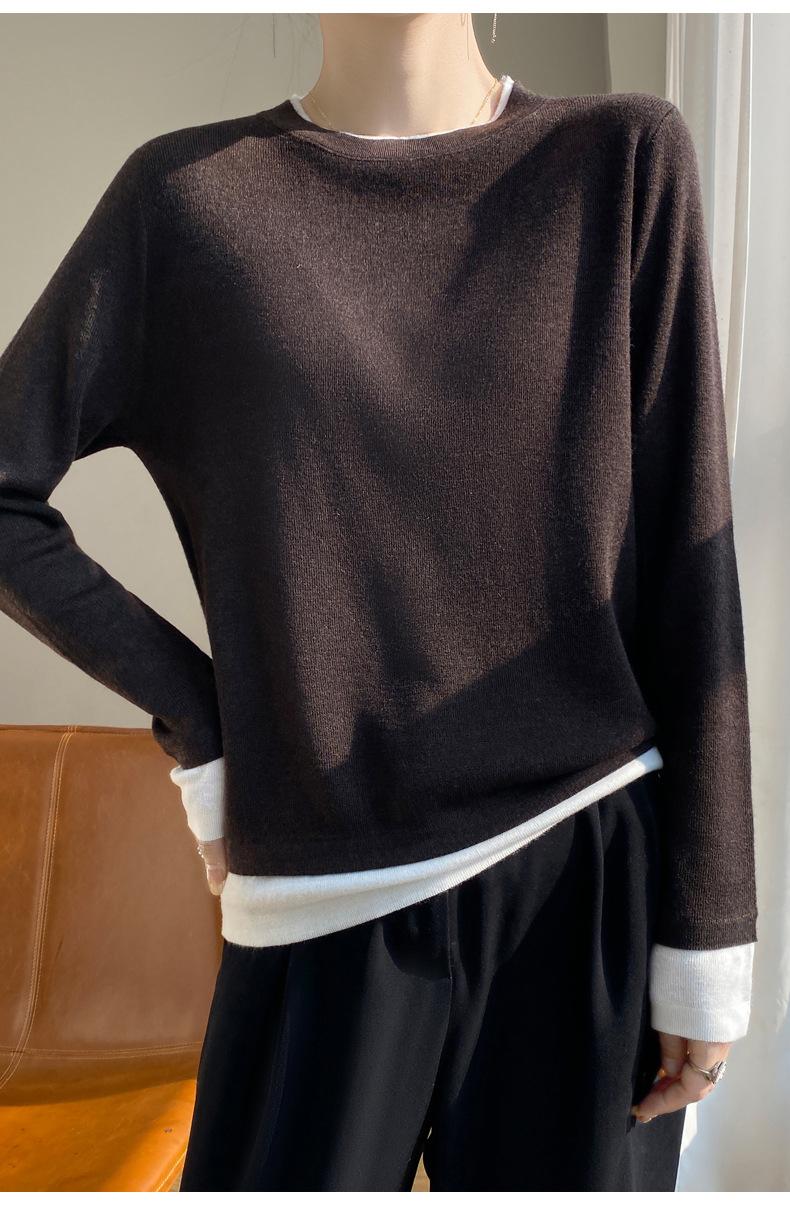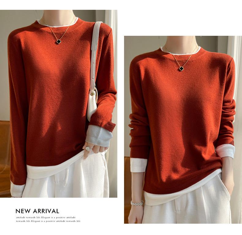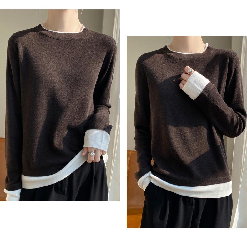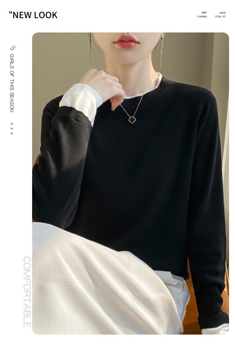 Lana Peinada Primavera 2025 Nuevo para Mujer Suelto Cuello Redondo Combinación de Color Corto Falso Dos Piezas Top de Fondo Tejido