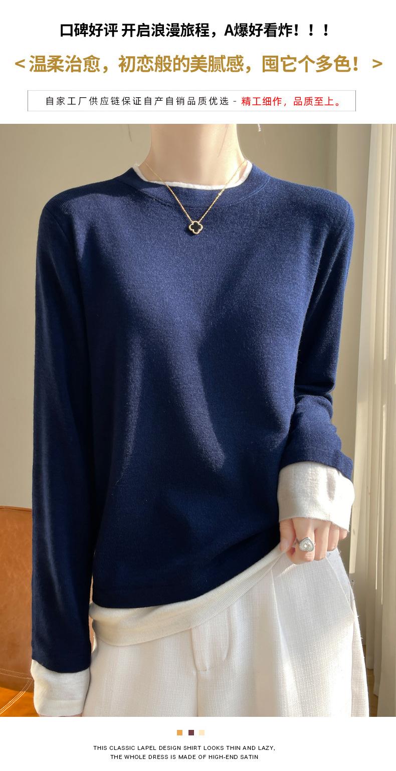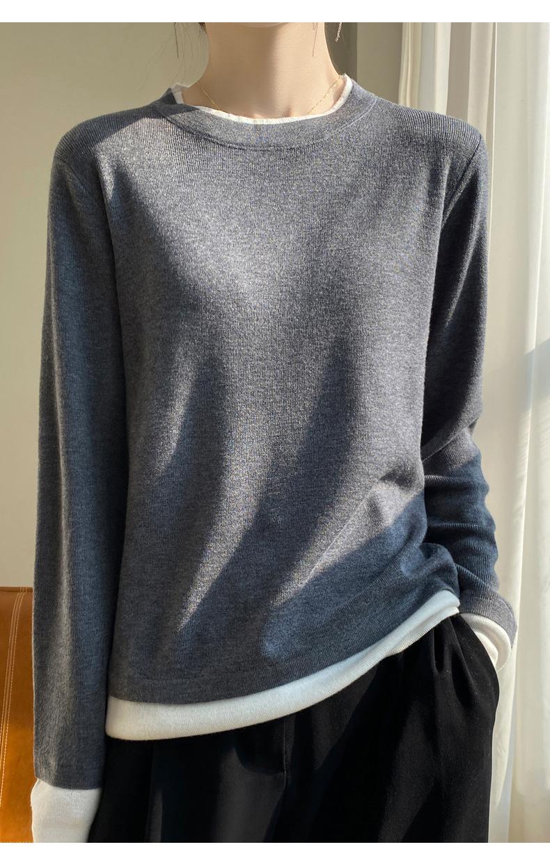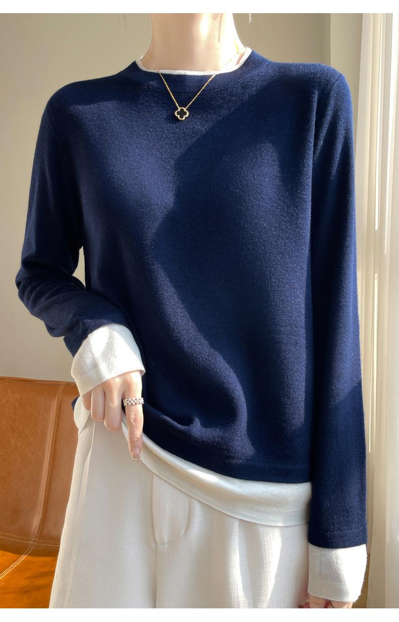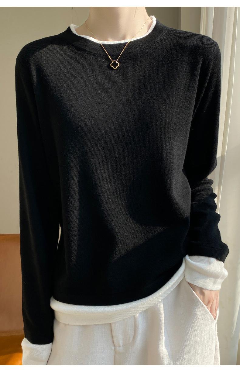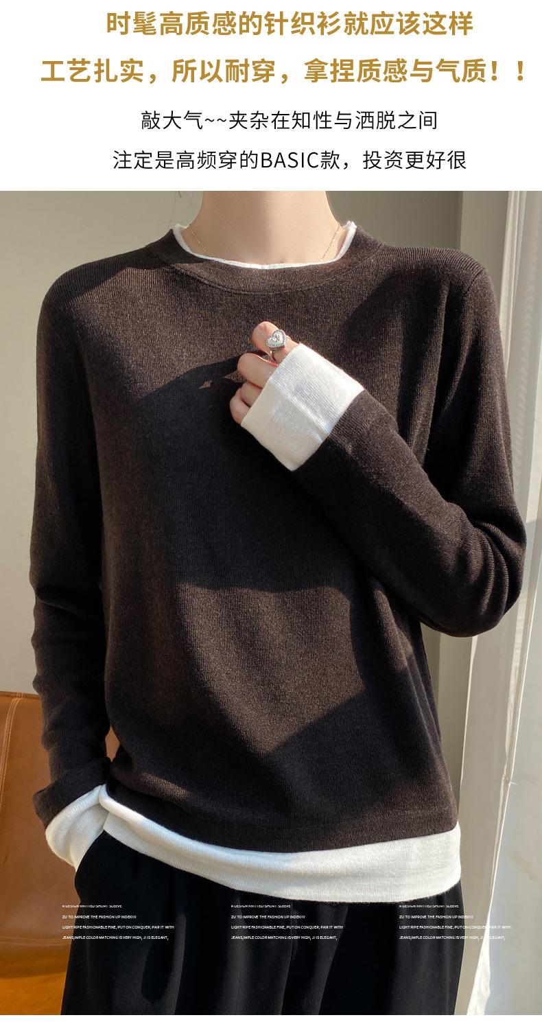 Lana Peinada Primavera 2025 Nuevo para Mujer Suelto Cuello Redondo Combinación de Color Corto Falso Dos Piezas Top de Fondo Tejido