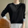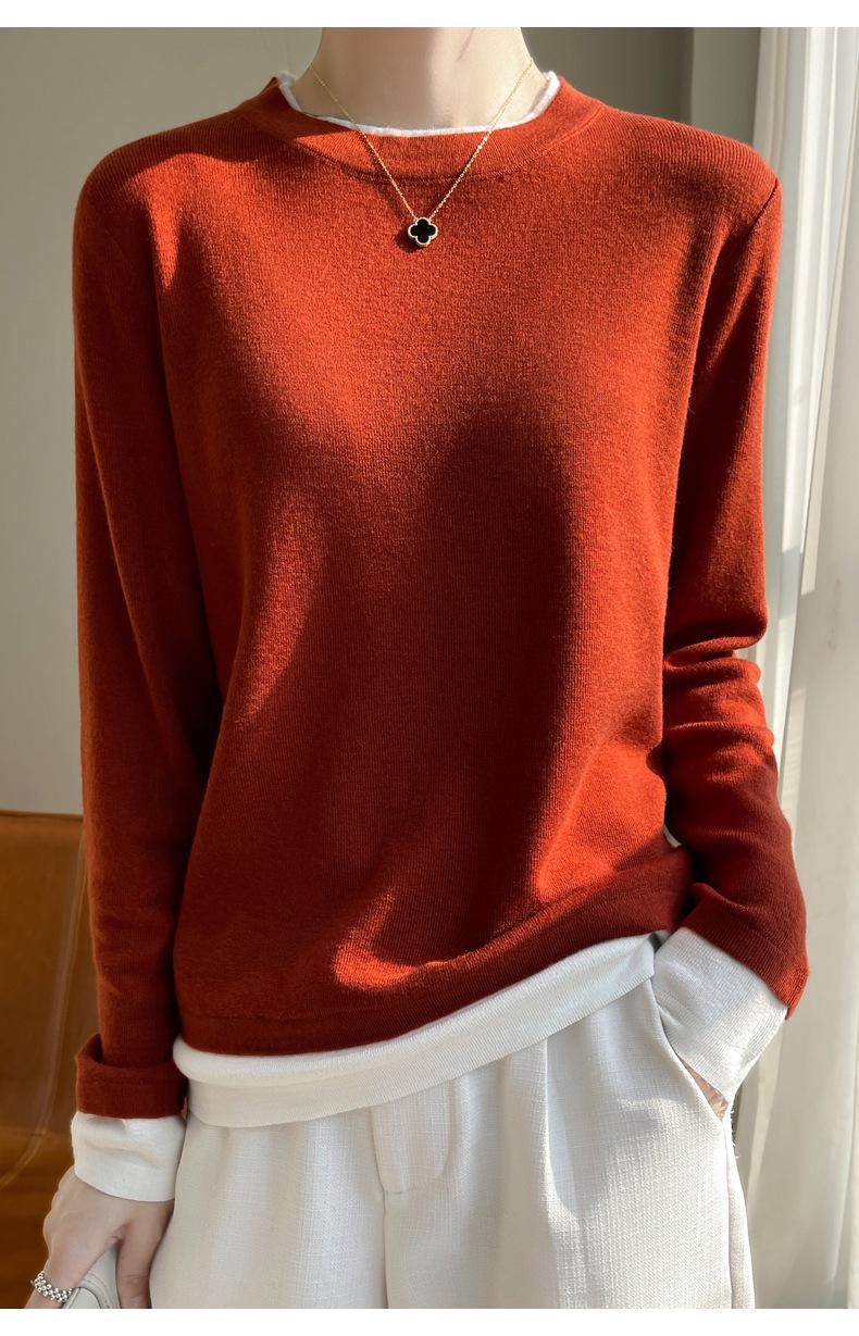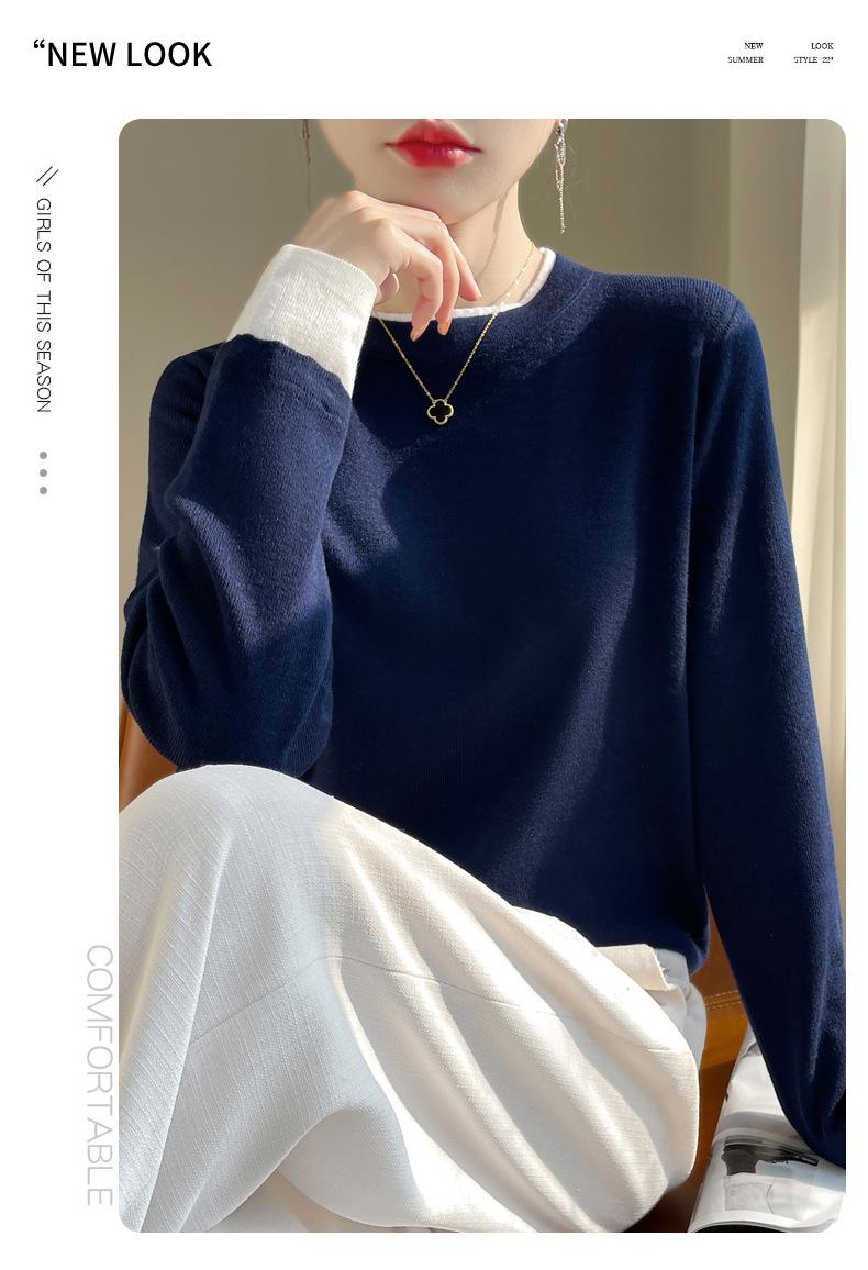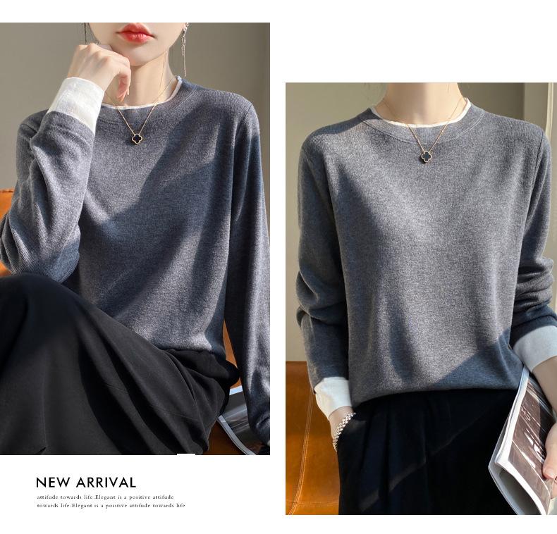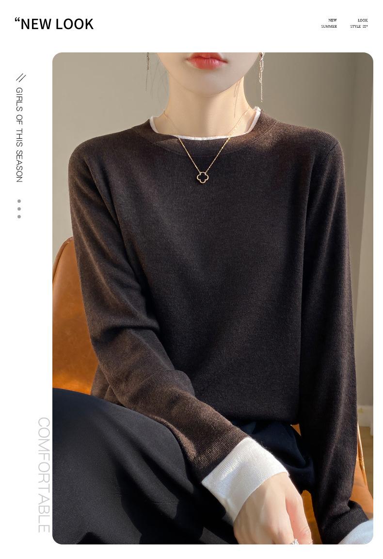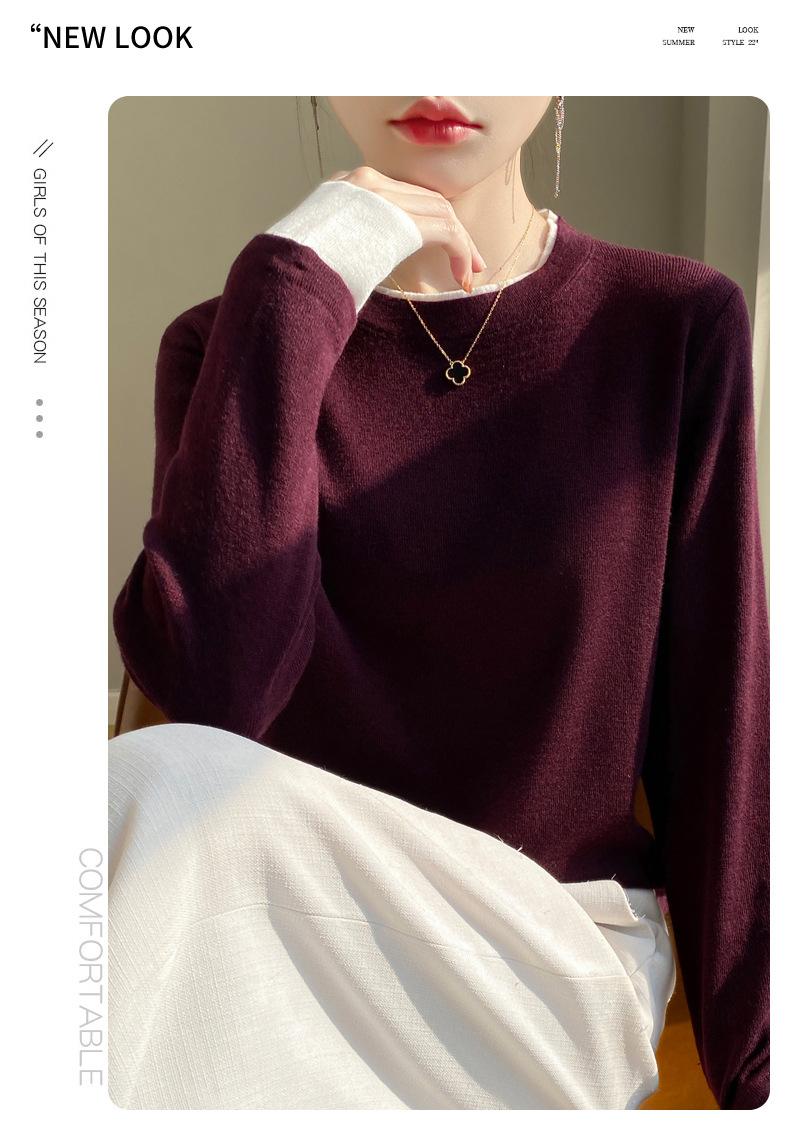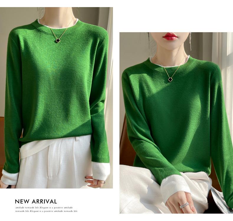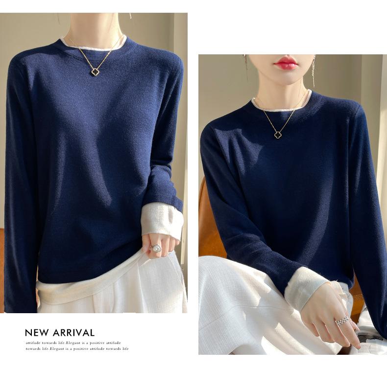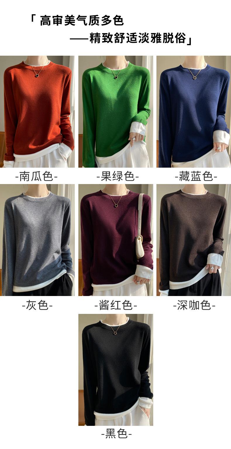 Lana Peinada Primavera 2025 Nuevo para Mujer Suelto Cuello Redondo Combinación de Color Corto Falso Dos Piezas Top de Fondo Tejido