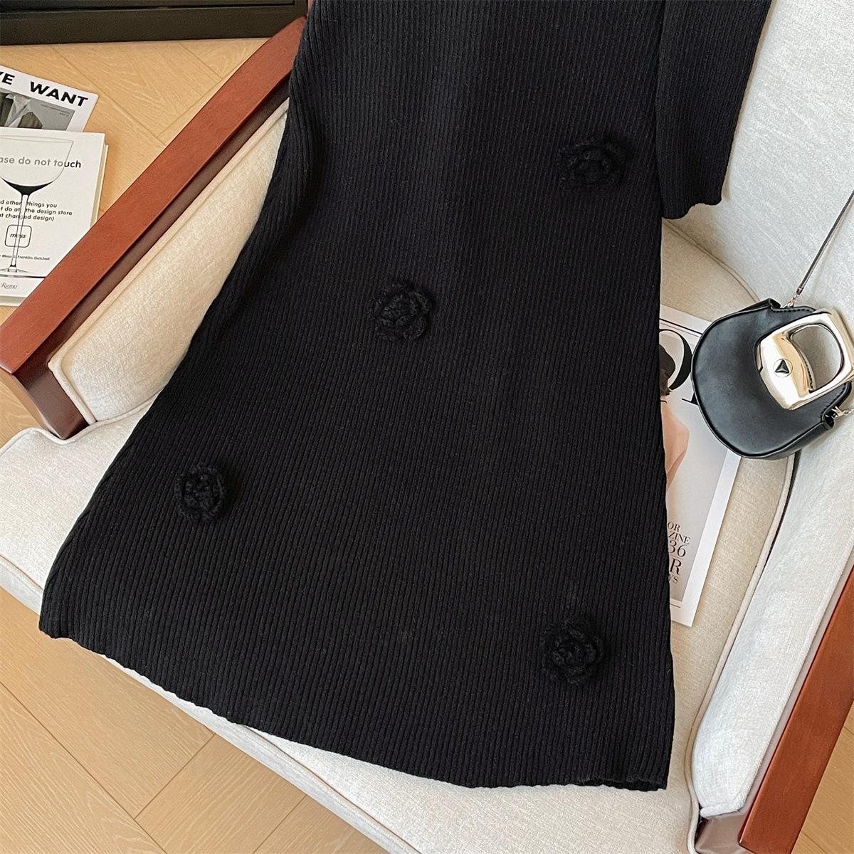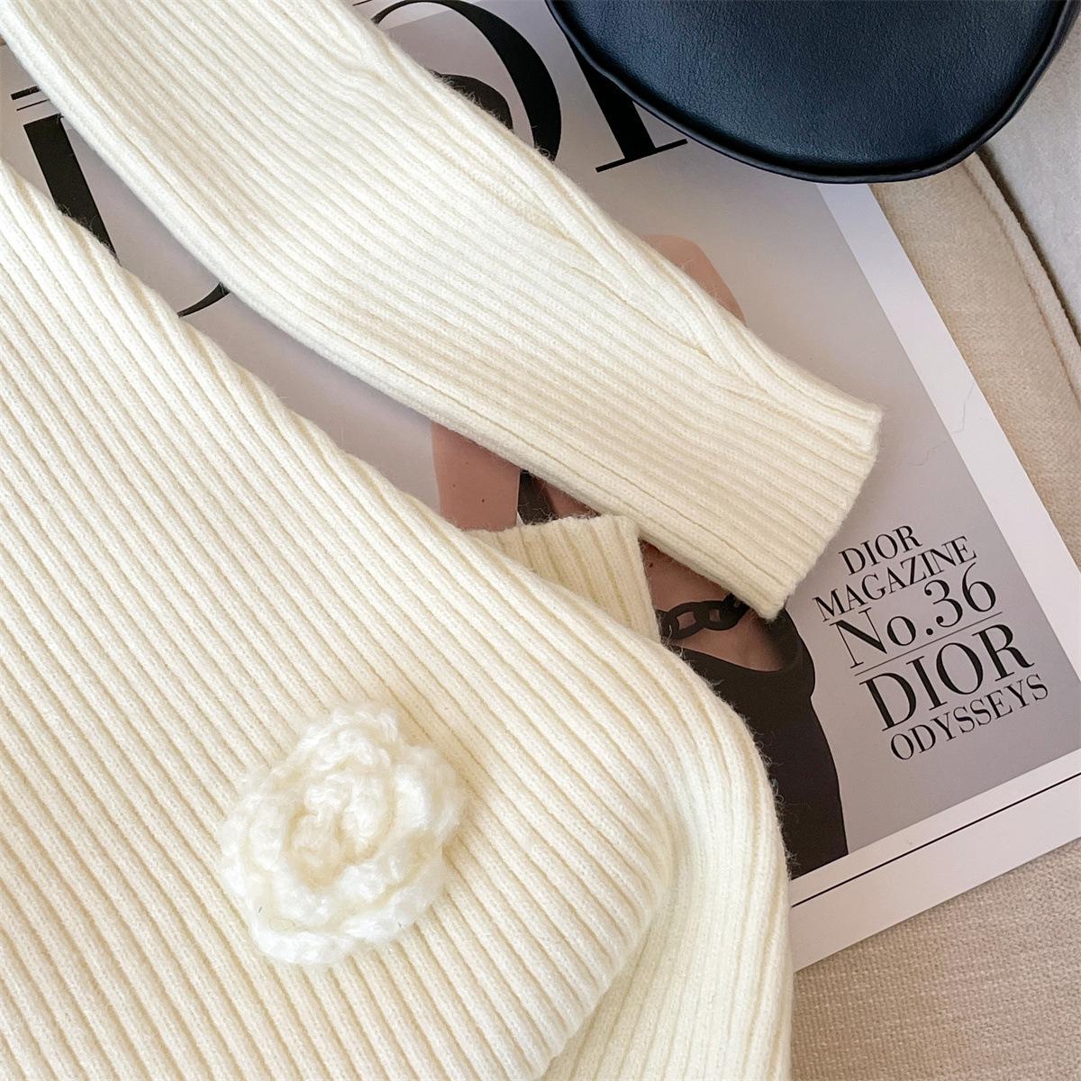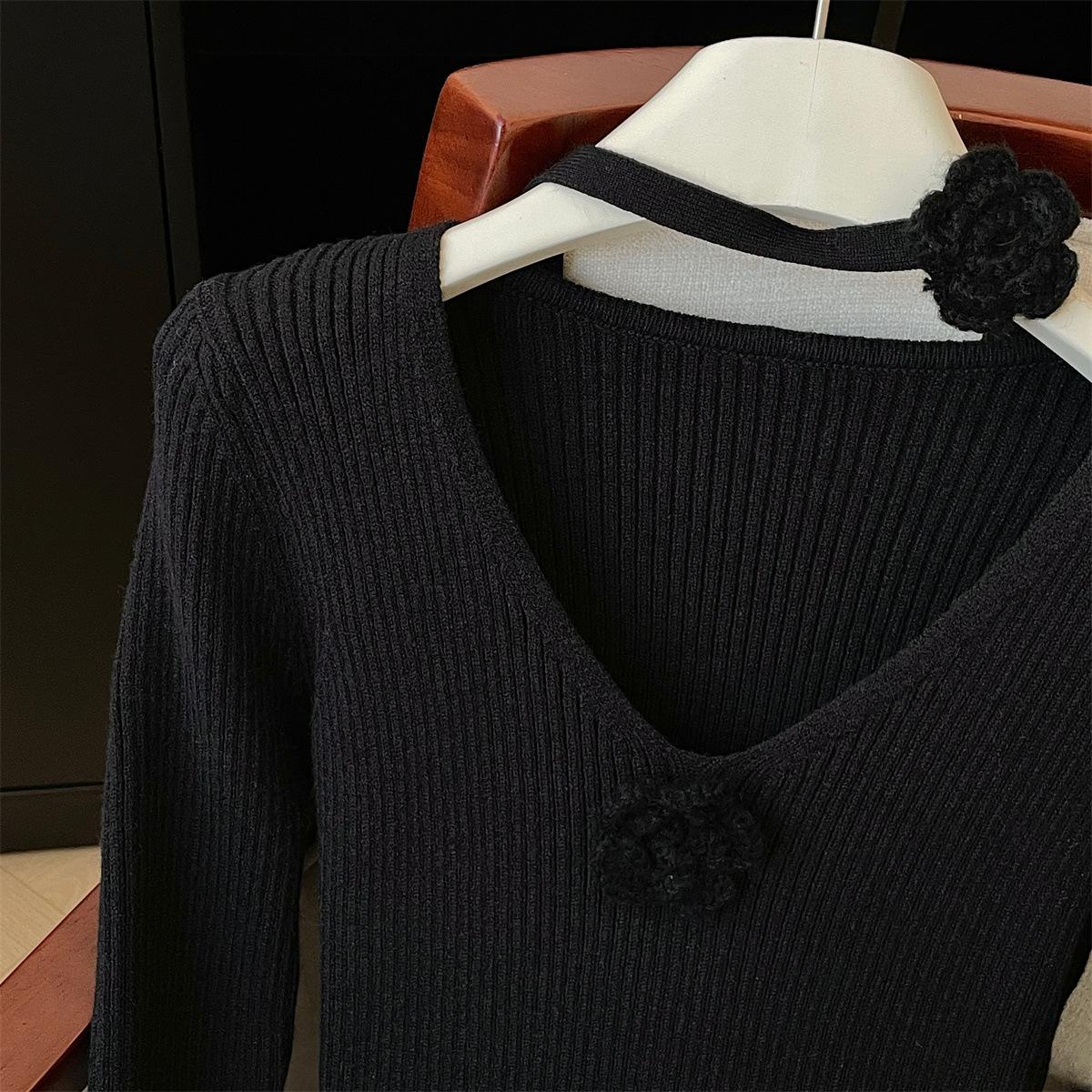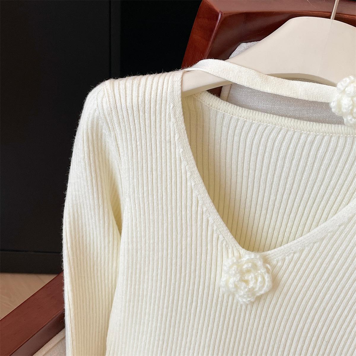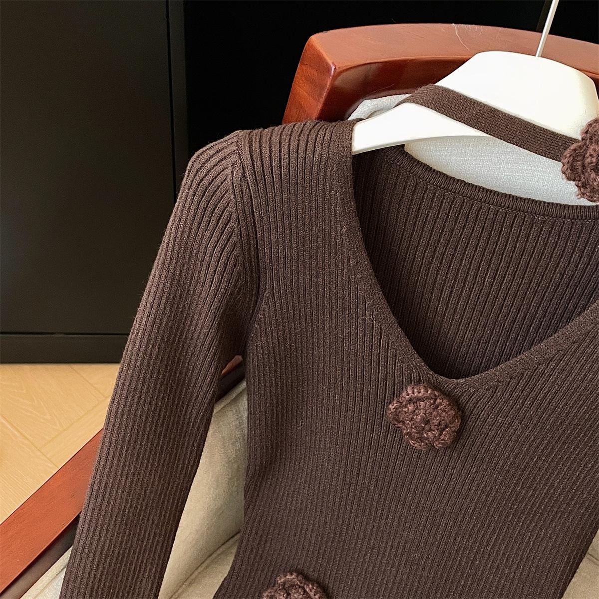 Foto real de dulce vestido de punto con cuello en V para mujer 2023 otoño e invierno nuevo fondo delgado falda de cola de pez larga sobre la rodilla