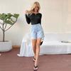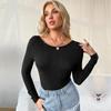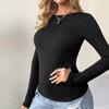 Ropa de Mujer Europea y Americana Transfronteriza 2025 Primavera y Verano Sexy sin Espalda Cuello Redondo Jersey Elegante Ajustado Manga Larga Camiseta Top Base