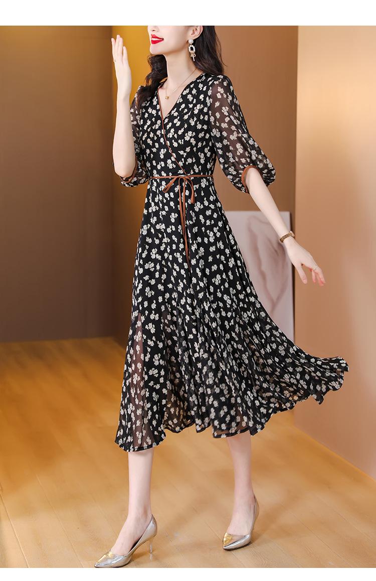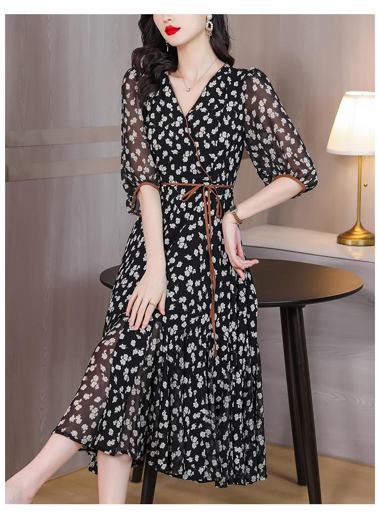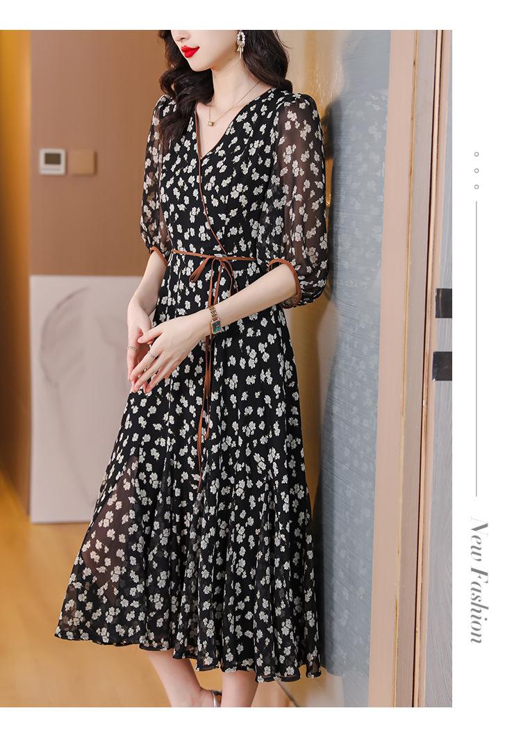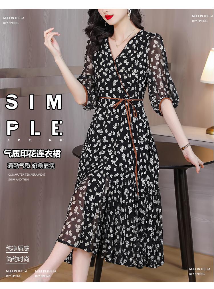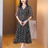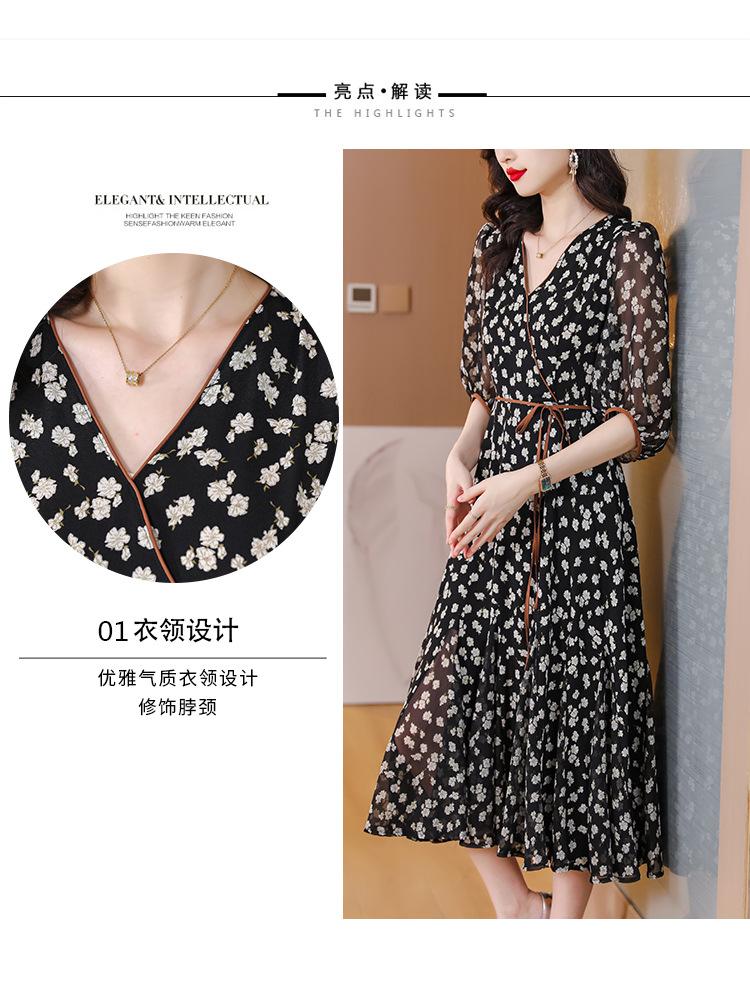 Vestido de seda con estampado francés para mujer, novedad de verano 2023, elegante, de alta gama, con escote en V y cintura por encima de la rodilla.