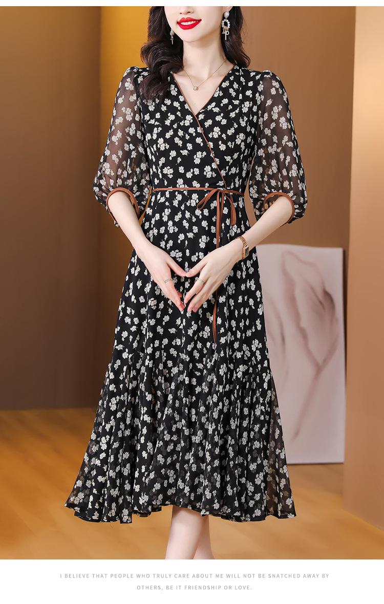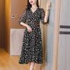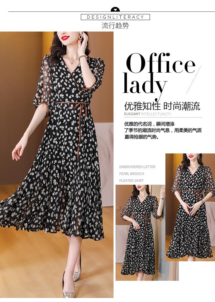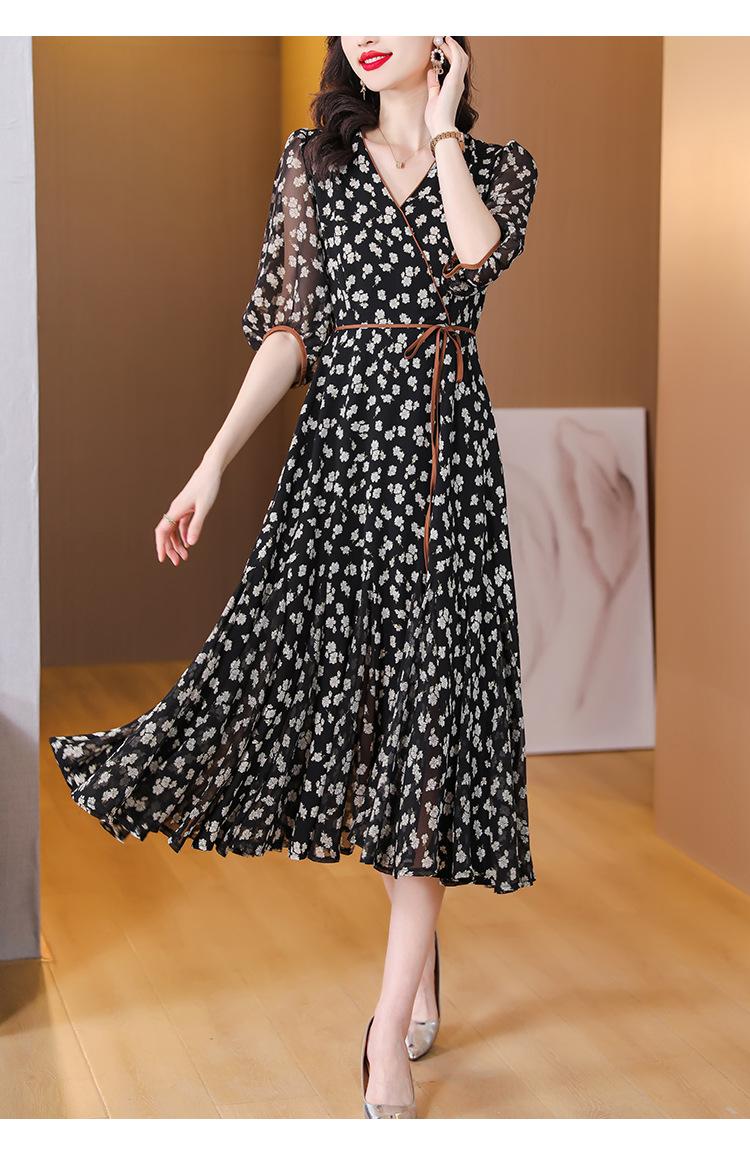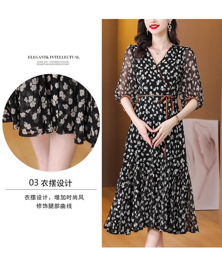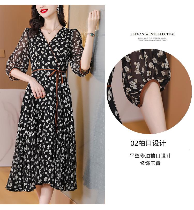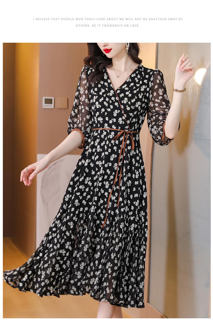 Vestido de seda con estampado francés para mujer, novedad de verano 2023, elegante, de alta gama, con escote en V y cintura por encima de la rodilla.