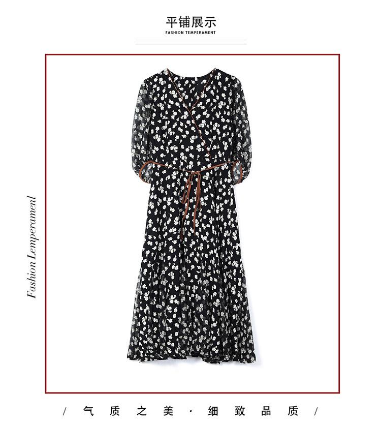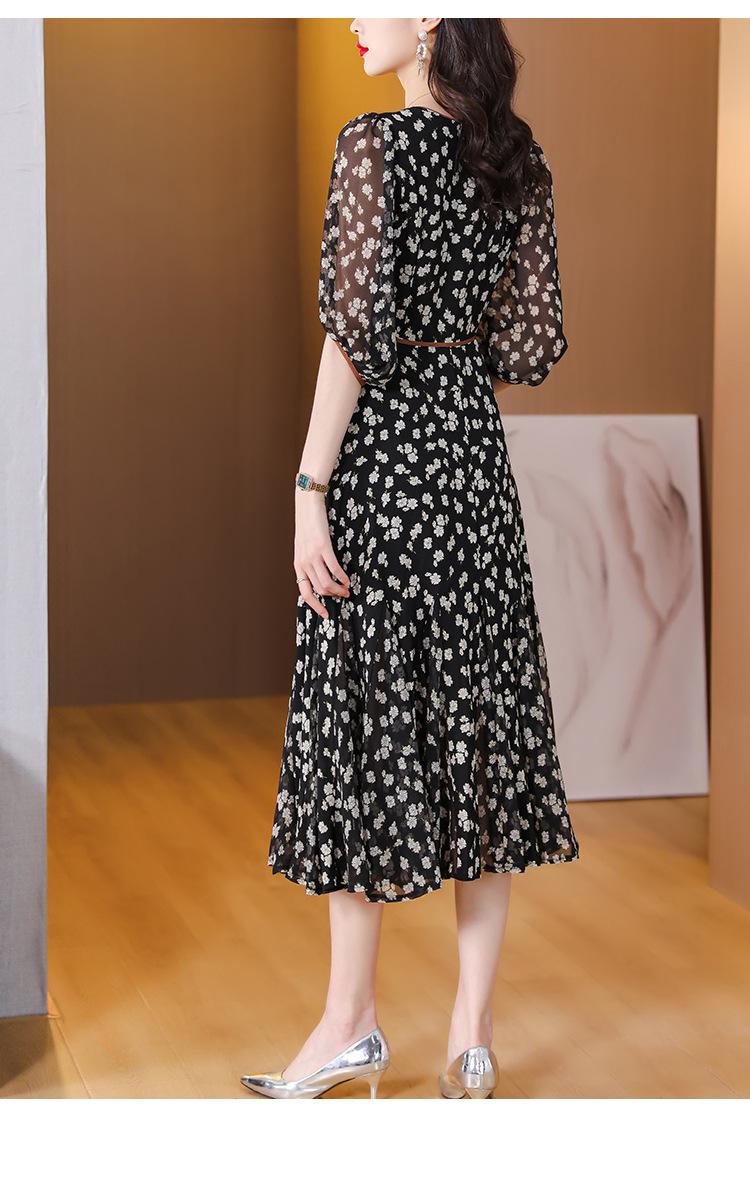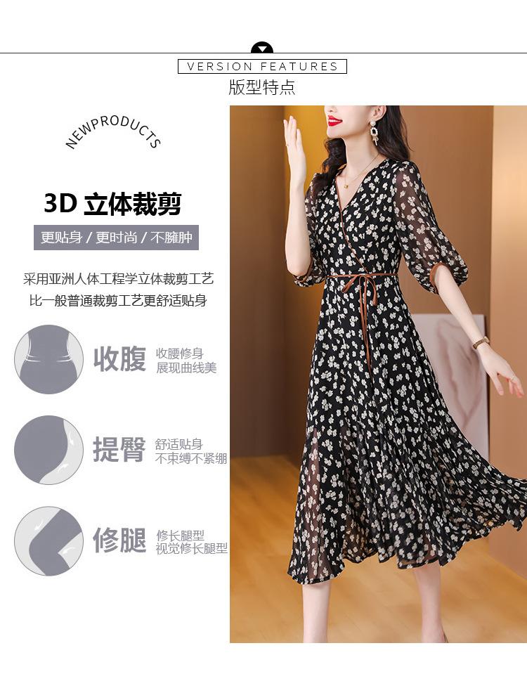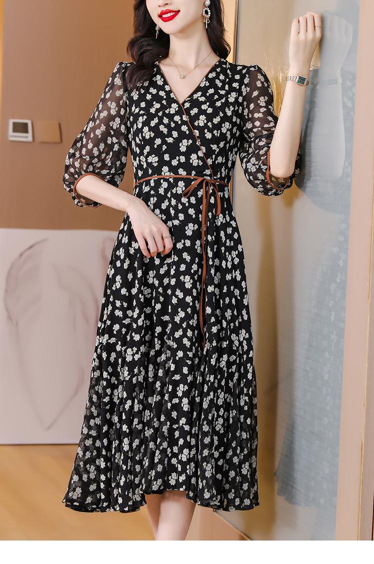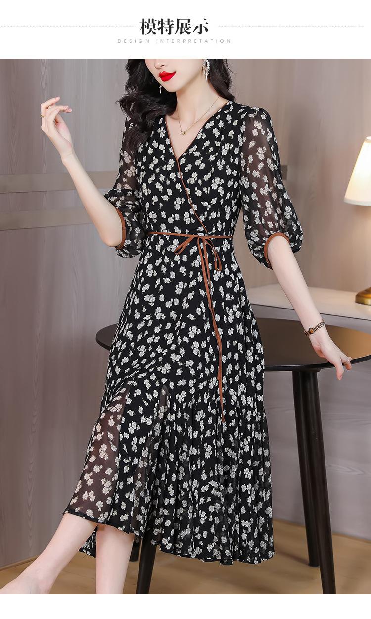 Vestido de seda con estampado francés para mujer, novedad de verano 2023, elegante, de alta gama, con escote en V y cintura por encima de la rodilla.