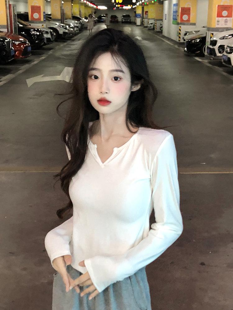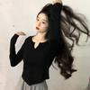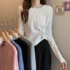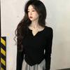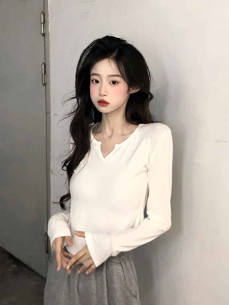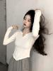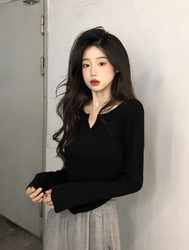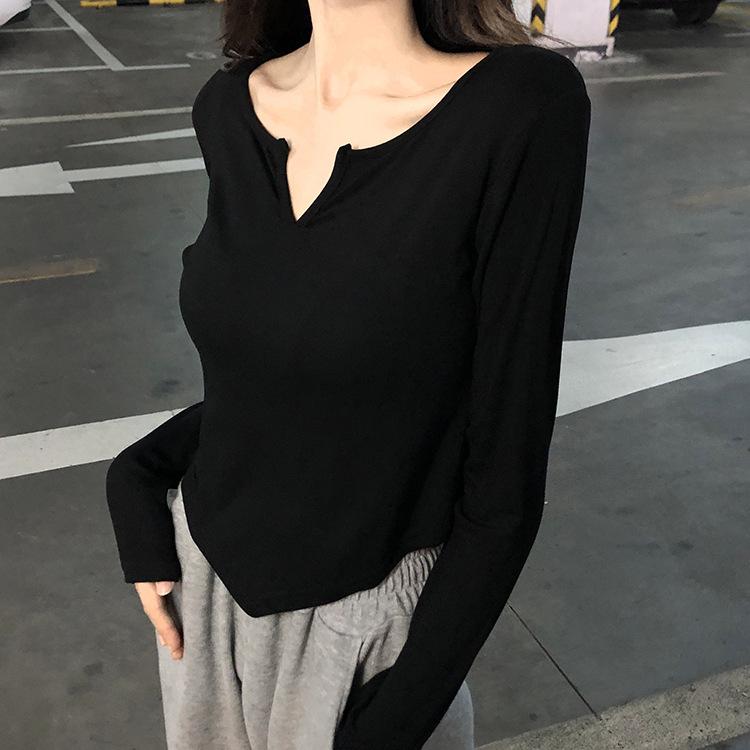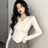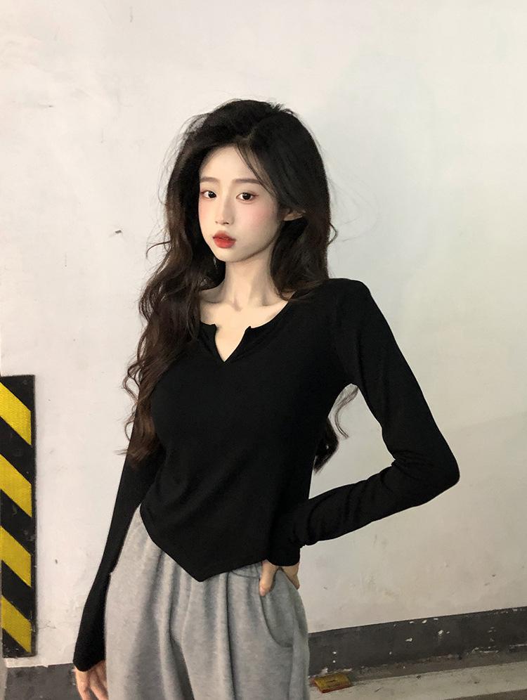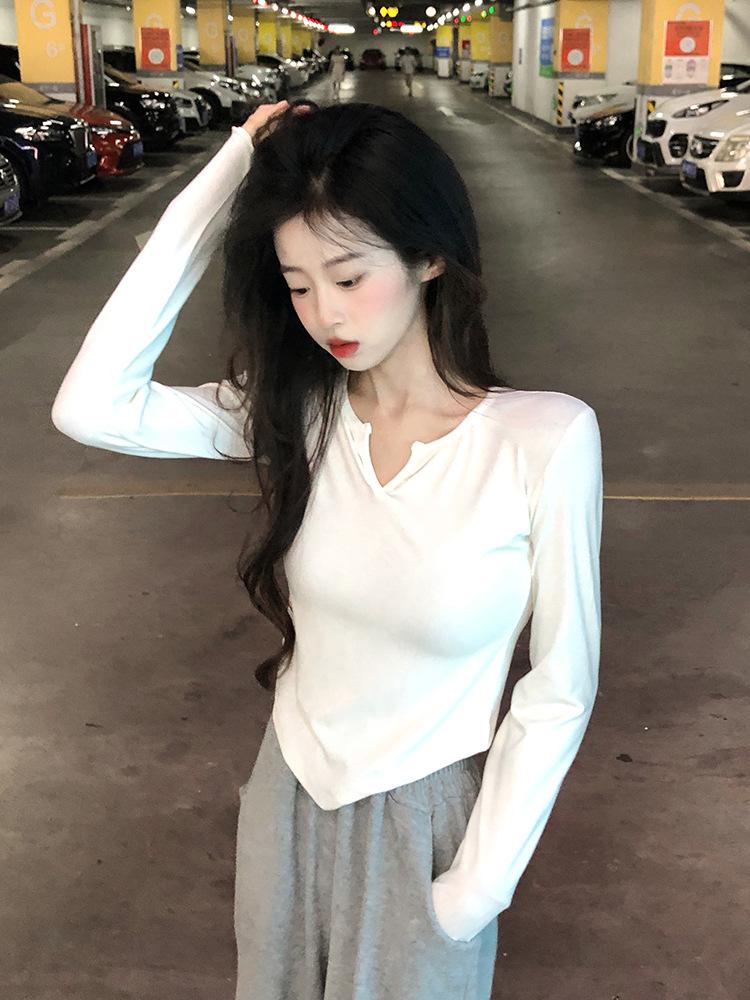 Playera Irregular de Manga Larga para Mujer Primavera 2025 Nuevo Estilo Coreano Estilo Puro Lujuria Nicho Chica Slim Corta Top de Fondo