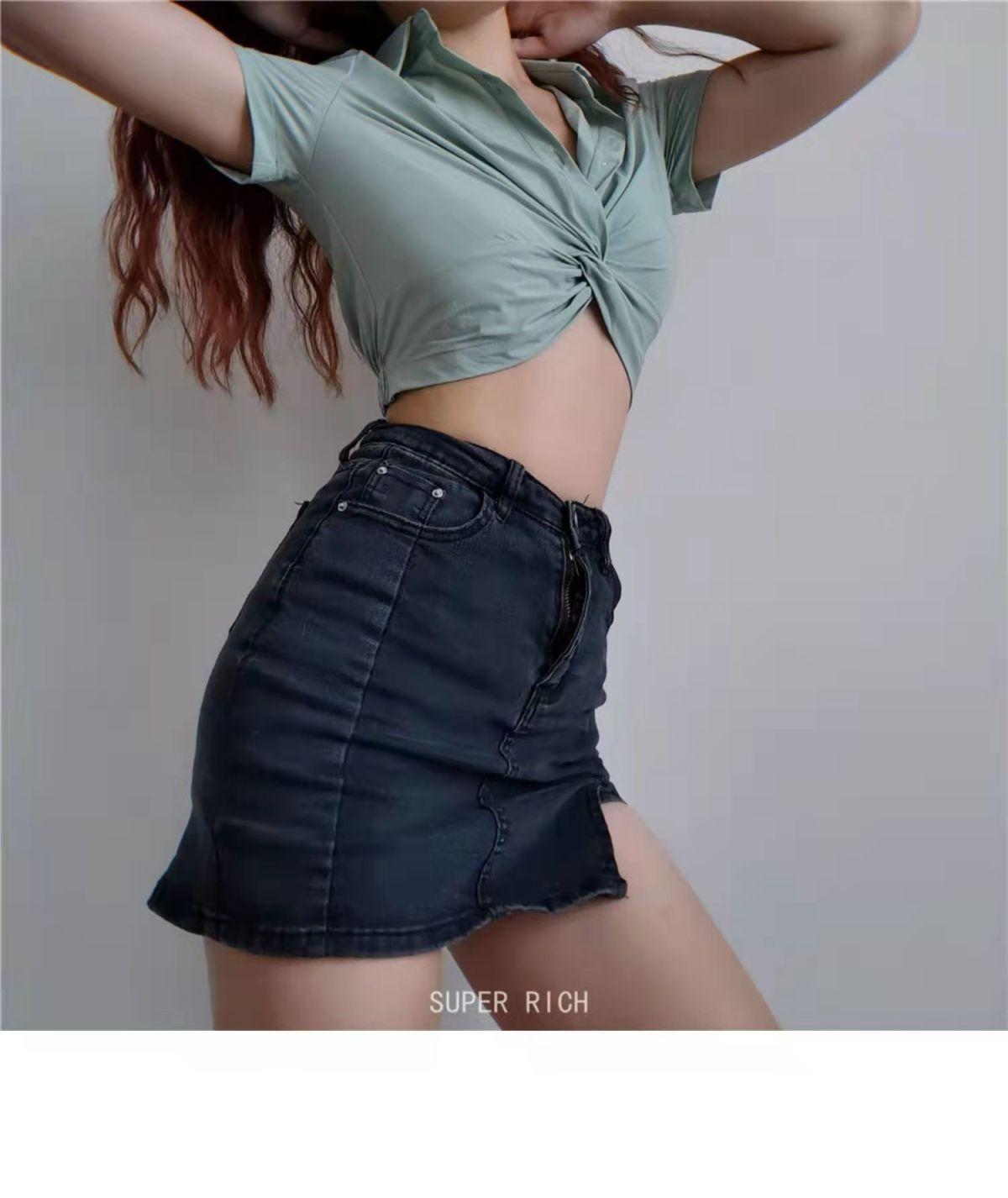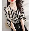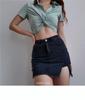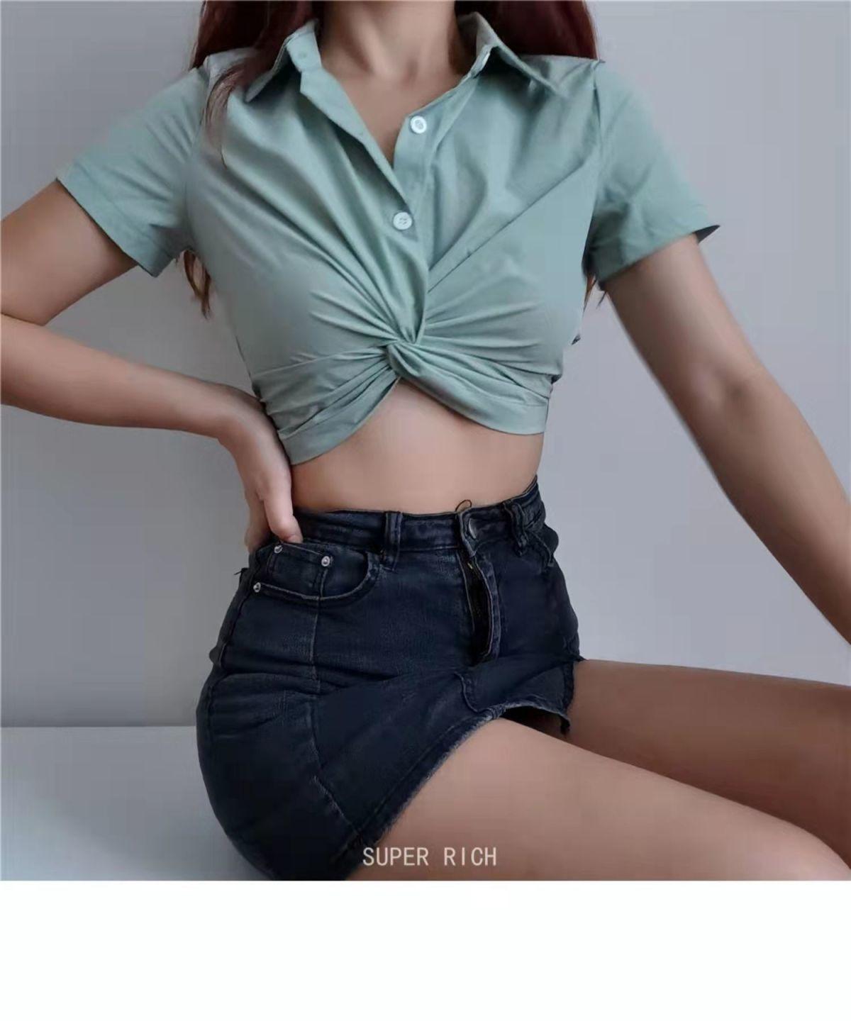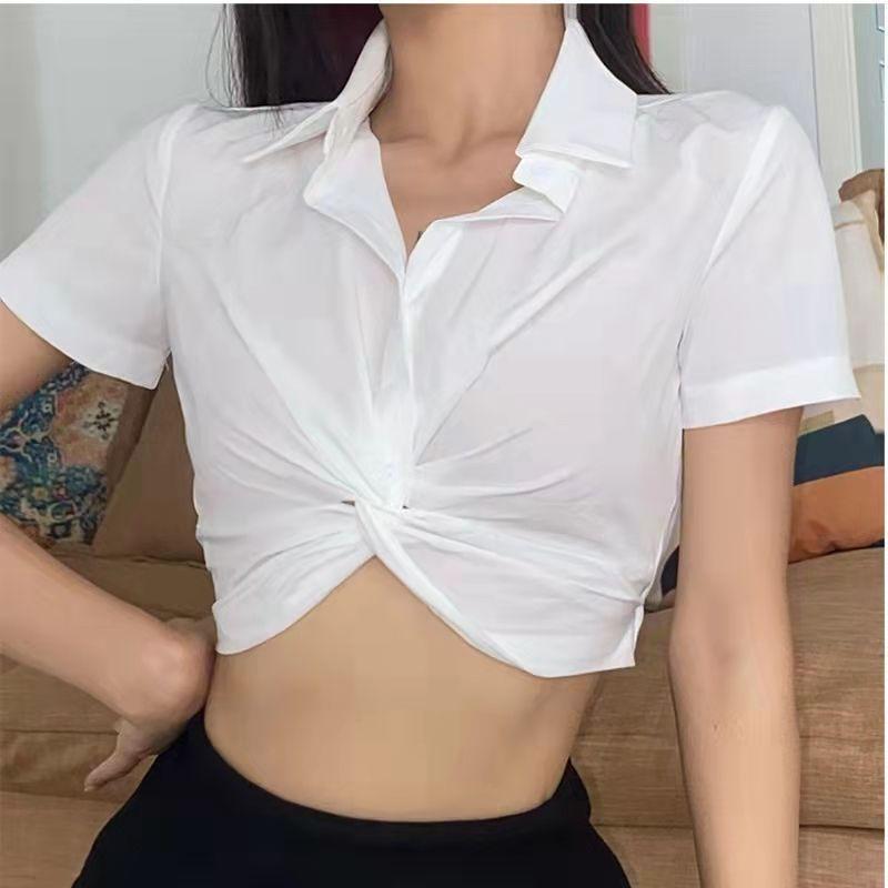Camisa de cuello polo con giro retro versátil de estilo coreano de primavera y verano, camiseta corta ajustada con botones y cuello en V, camiseta Bm de moda.