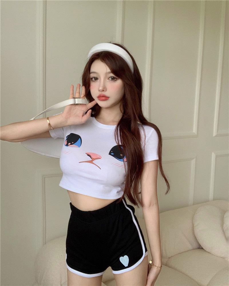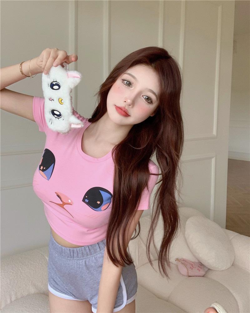 Camiseta Ropa de Mujer 2025 Verano Estilo Corto Estilo Deseo Puro Capa Interior Lindo Sexy Slim Manga Corta Top de Estudiante