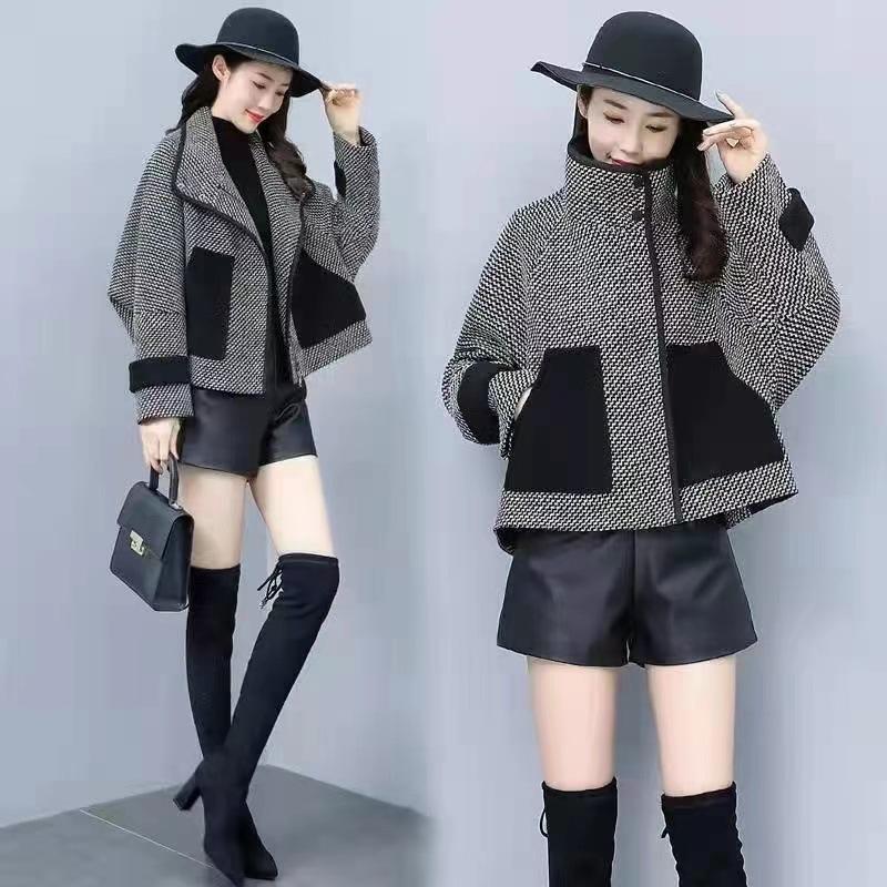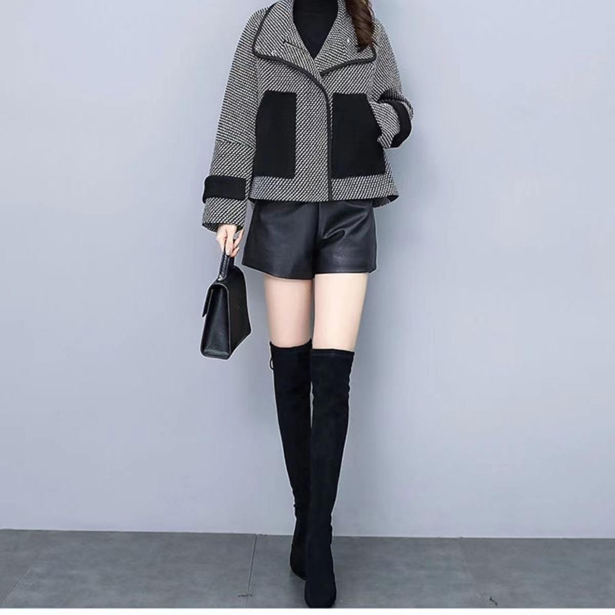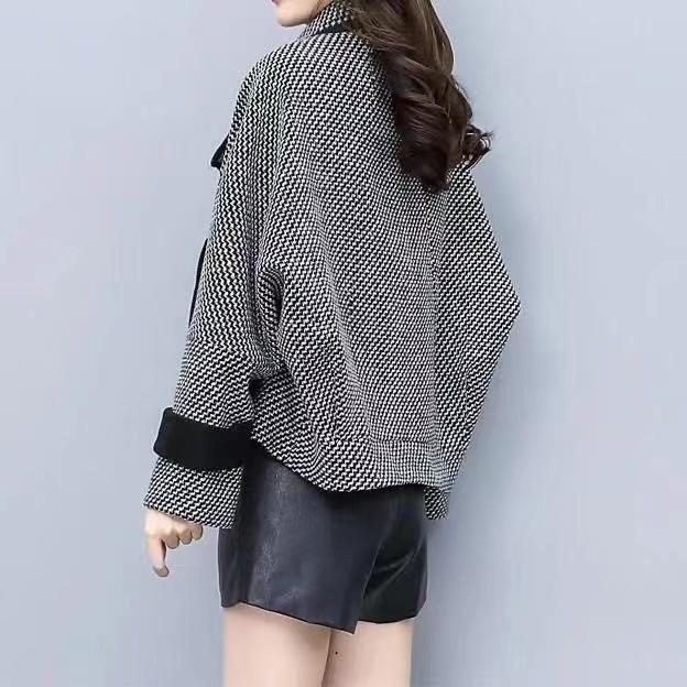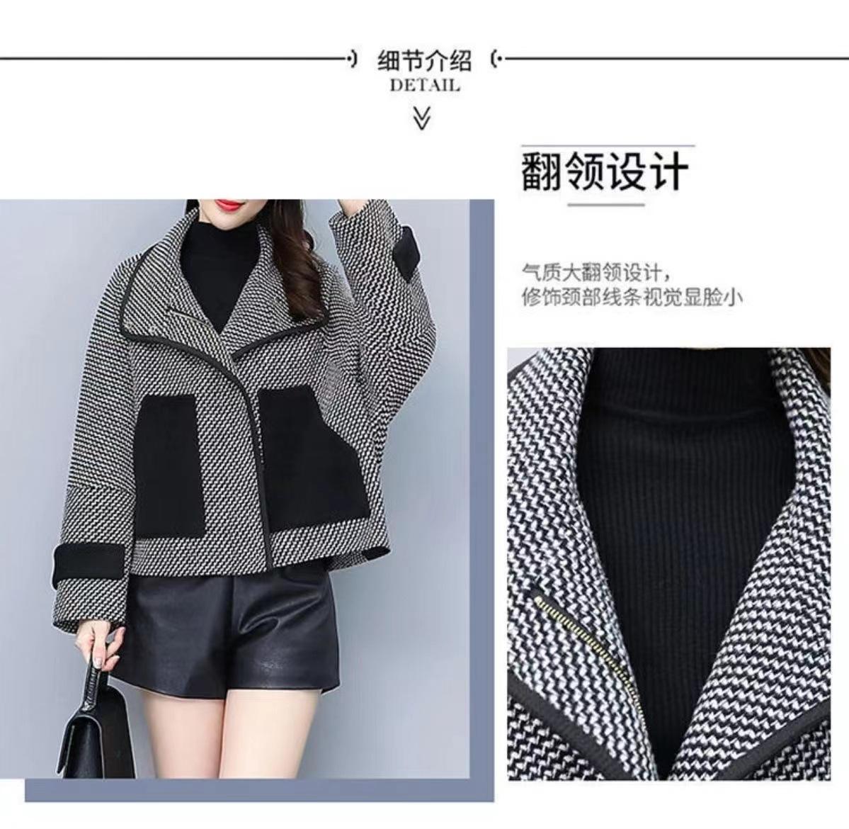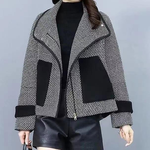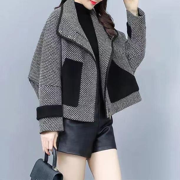 Abrigo corto de lana, elegante y petite, popular pata de gallo, que reduce la edad, moderno y versátil, abrigo de moda estilo Chanel