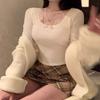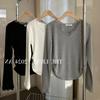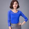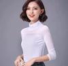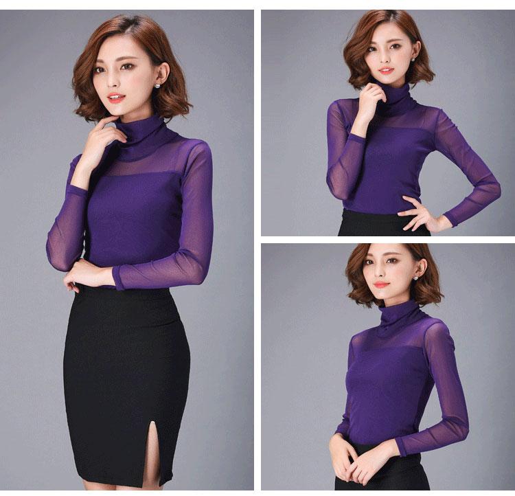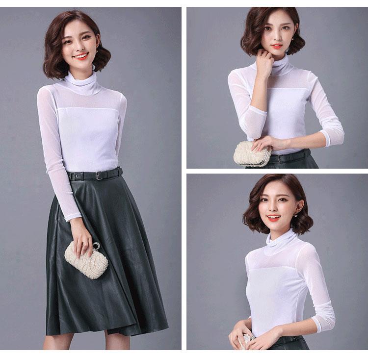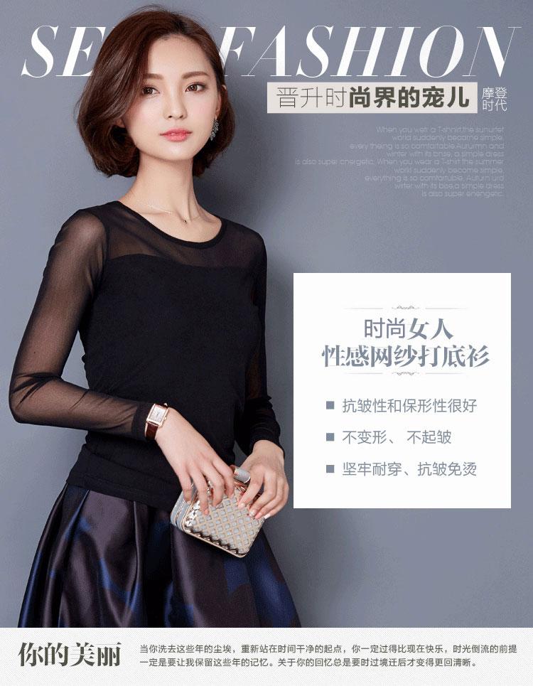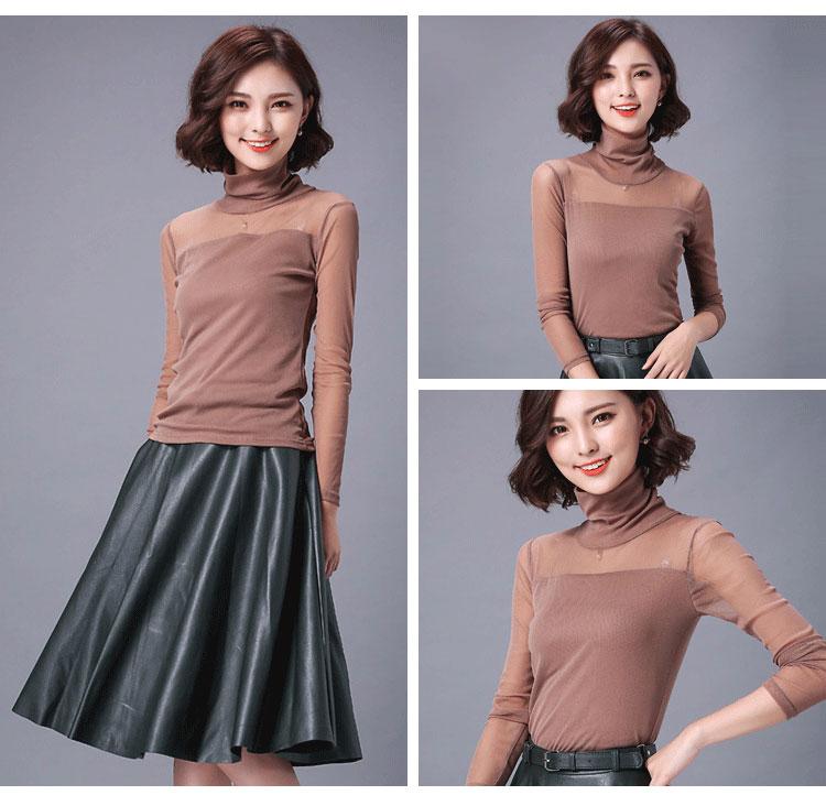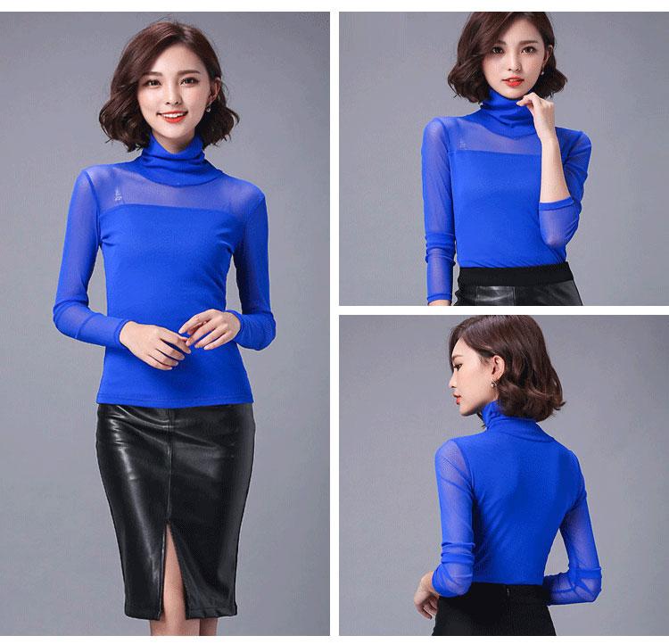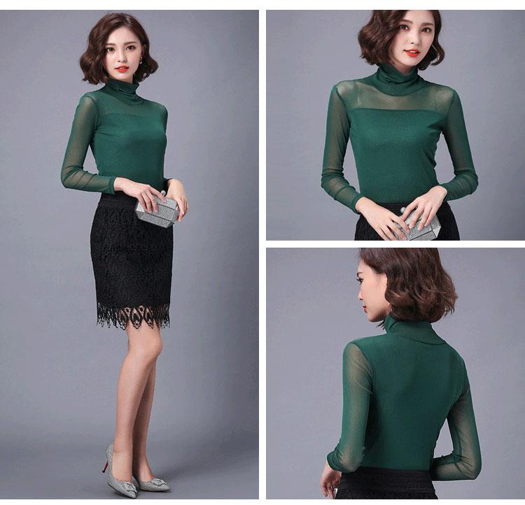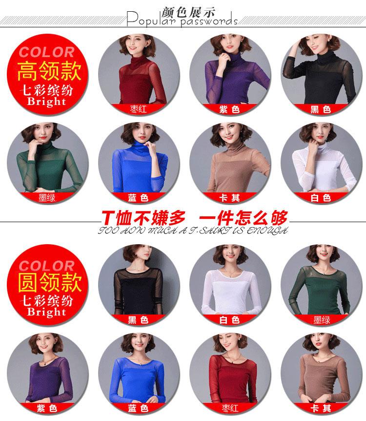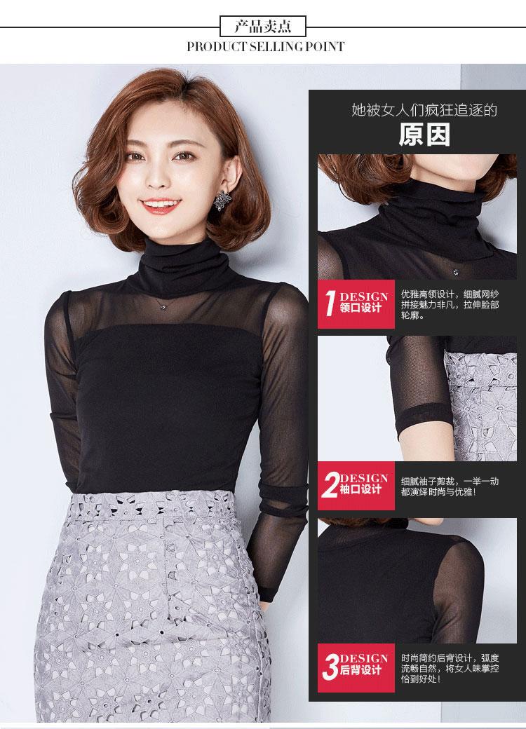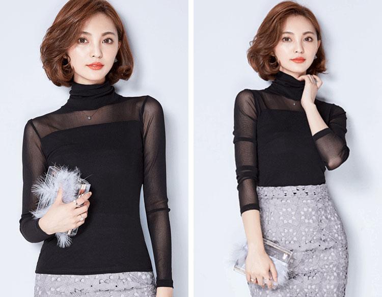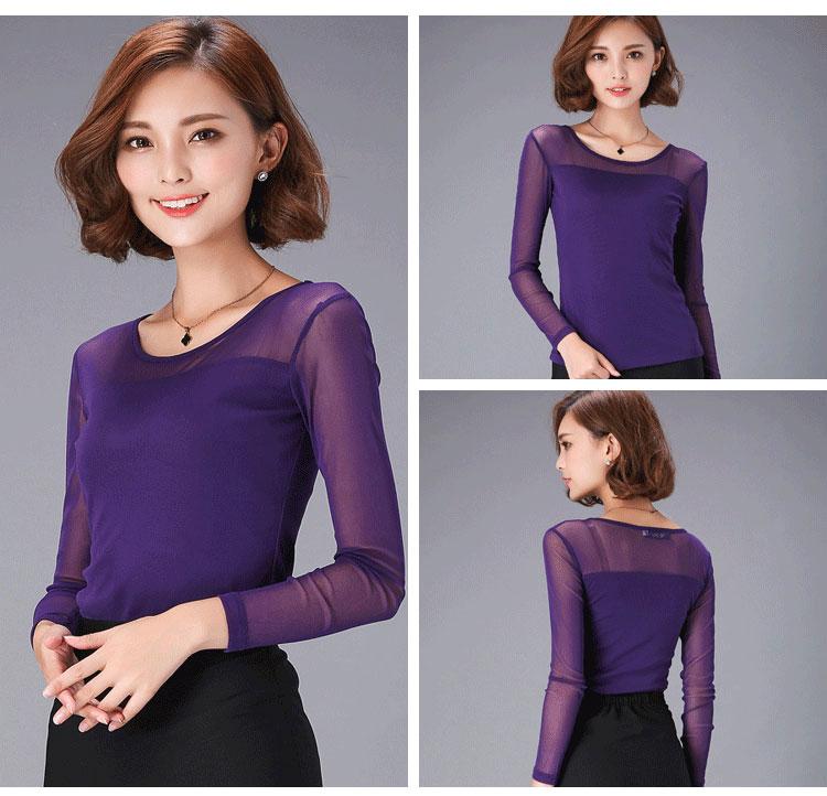 Camisa de encaje con cuello redondo de talla grande y corte entallado para primavera y otoño, camiseta de malla con parte inferior, camiseta de manga larga para mujer, prenda exterior que combina con todo.