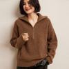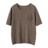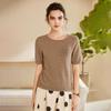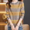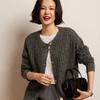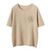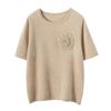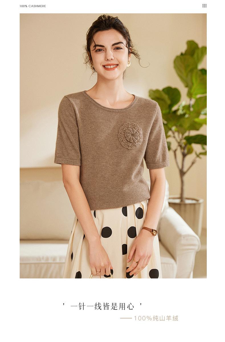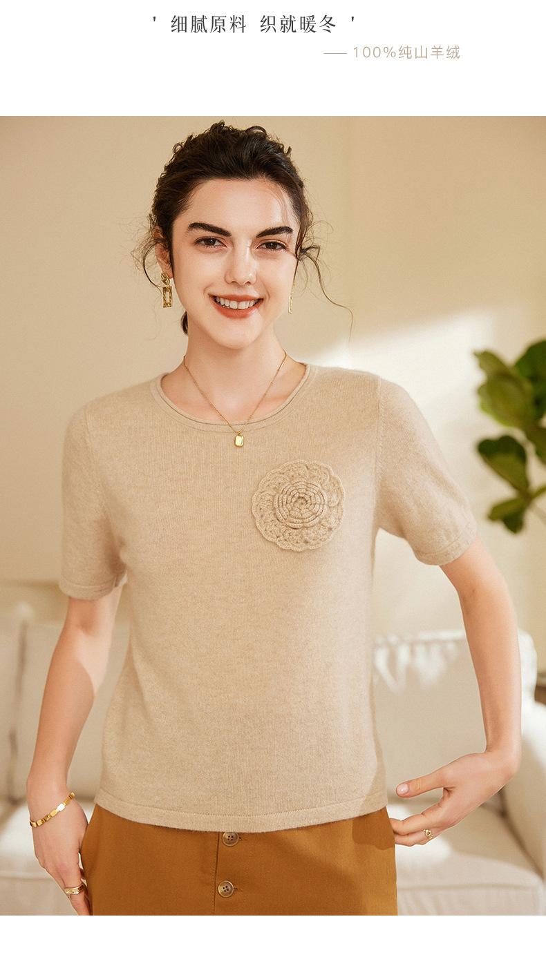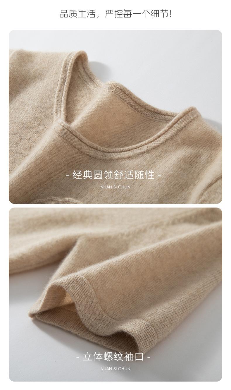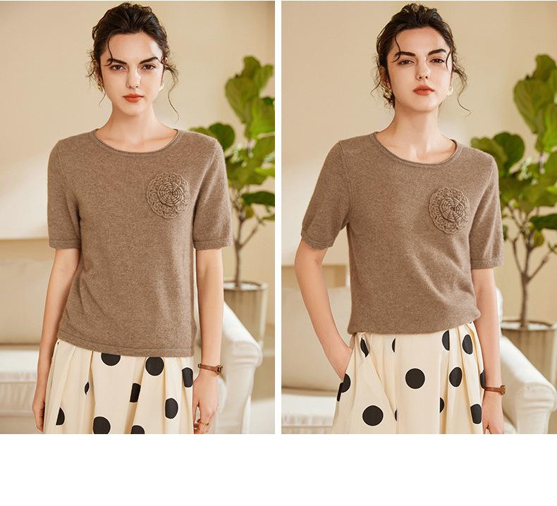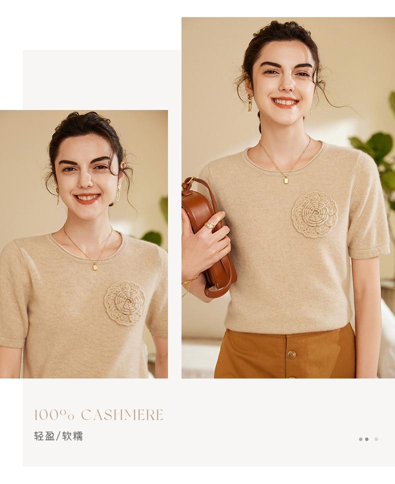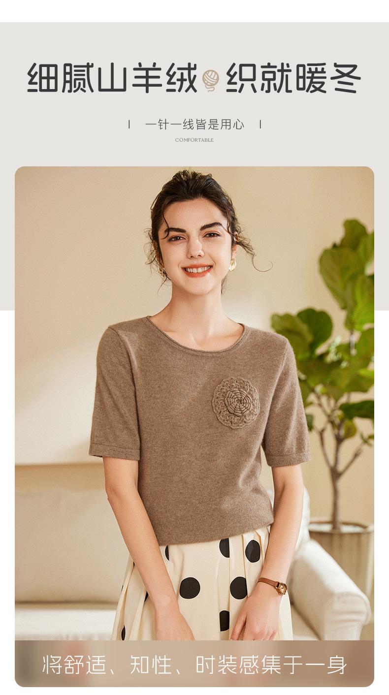 Suéter de Cachemira 100% Pura de Cuello Redondo Tejido a Crochet de Manga Corta para Mujer Otoño e Invierno 2024 Nuevo Color Puro Manga Tres Cuartos Suelto