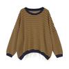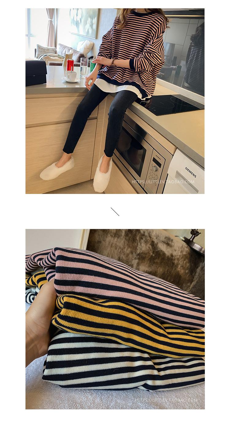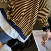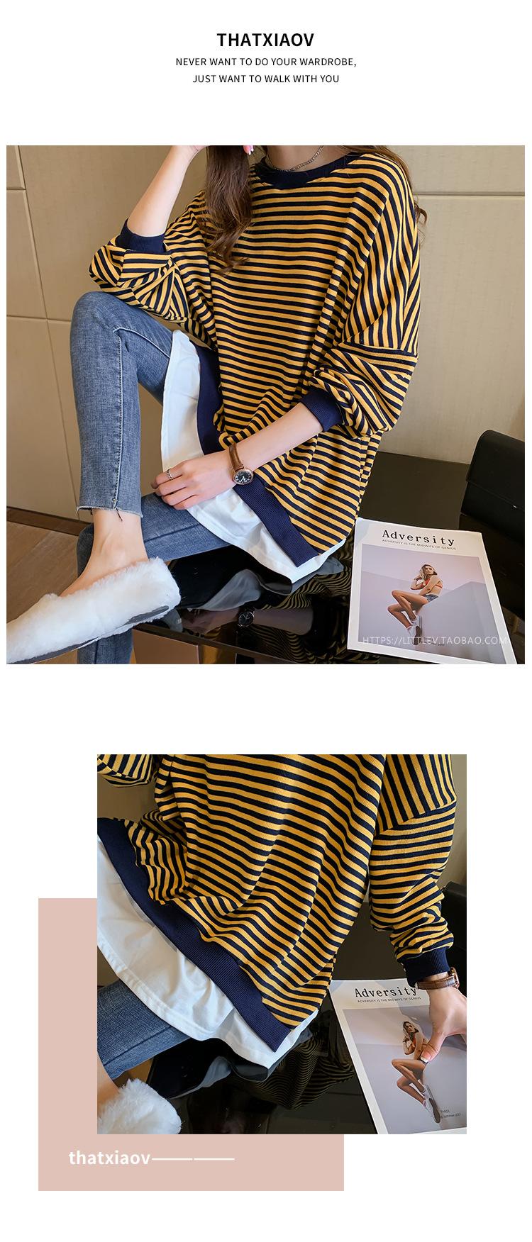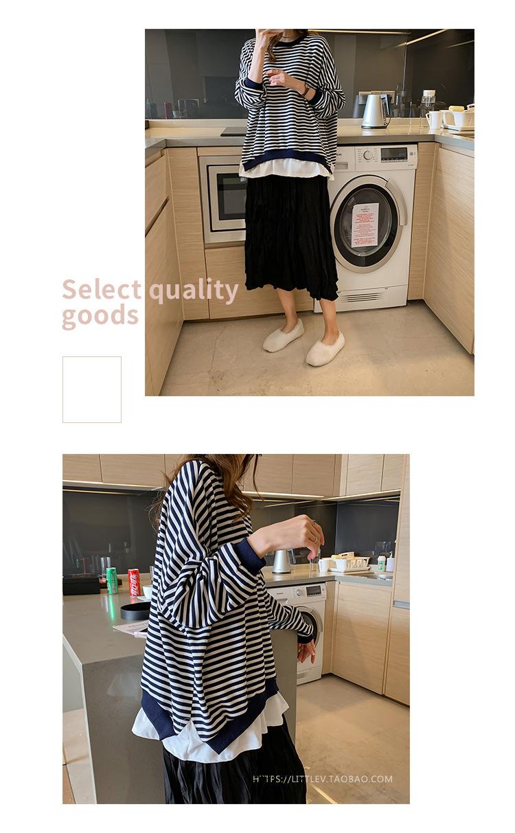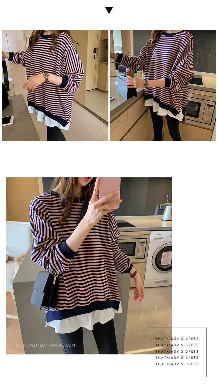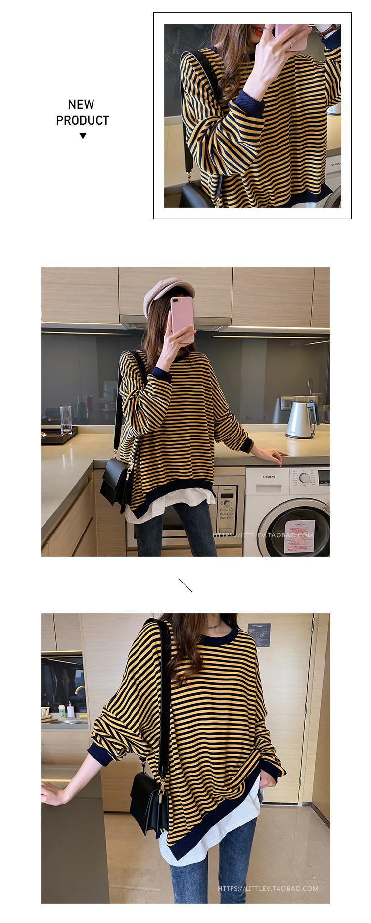 2024 Nuevo Estilo Hong Kong Retro Chic Sudadera Rayada Falsa de Dos Piezas para Mujer Manga Larga Cuello Redondo Top Chaqueta Casual