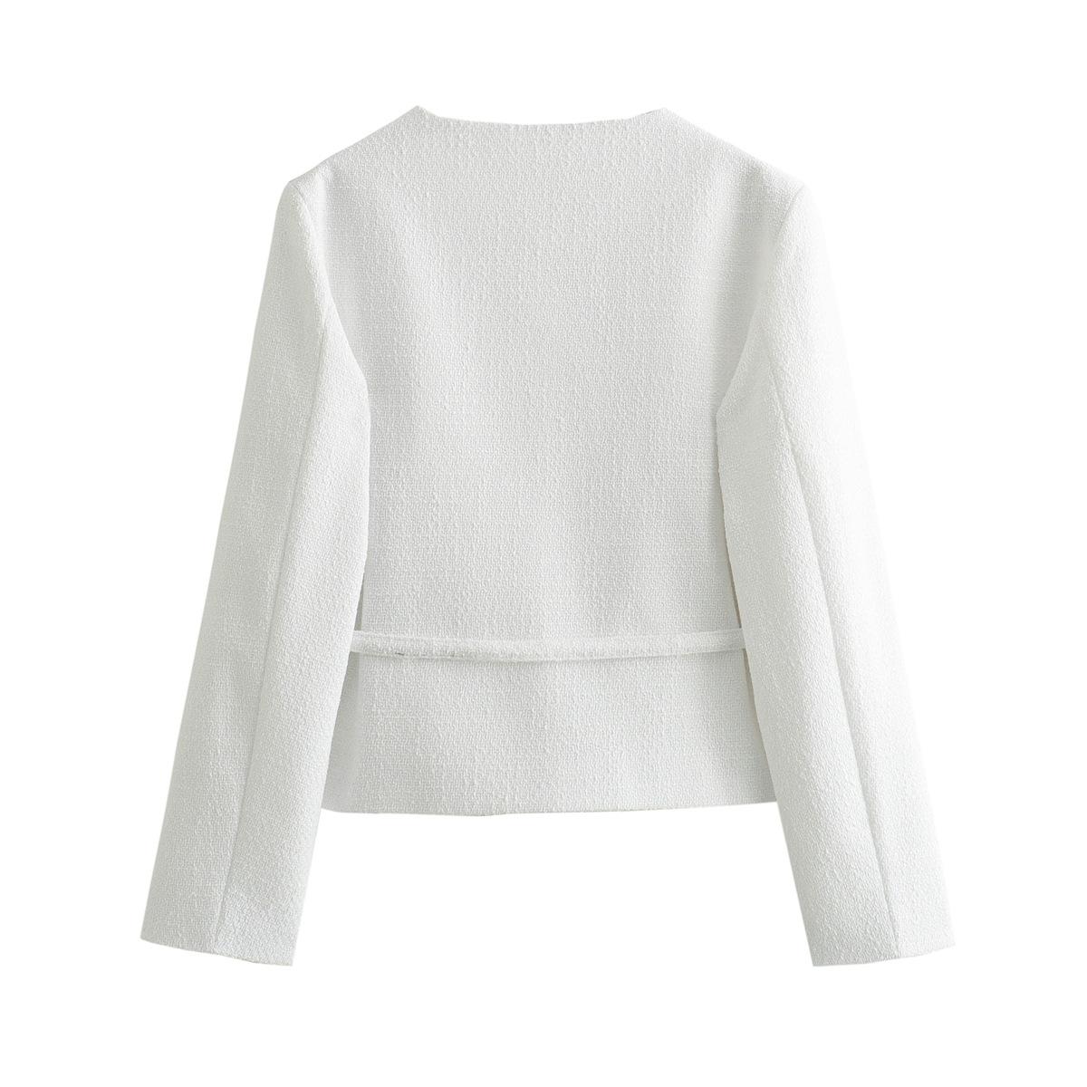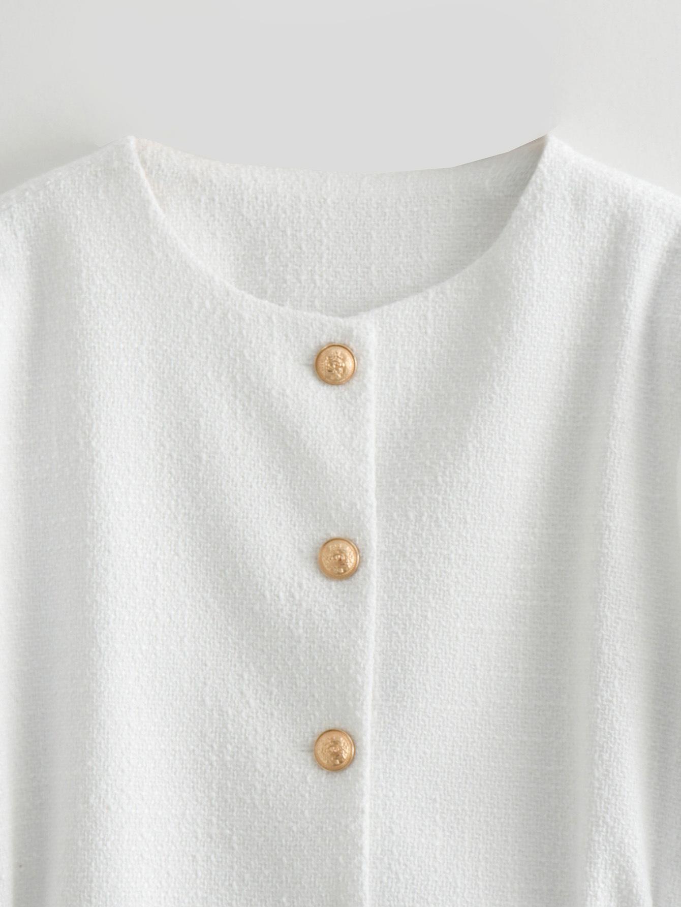 Comercio exterior verano mujer 2024 nuevo europeo y americano cuello redondo botón decorativo textura encaje casual manga larga abrigo A14031