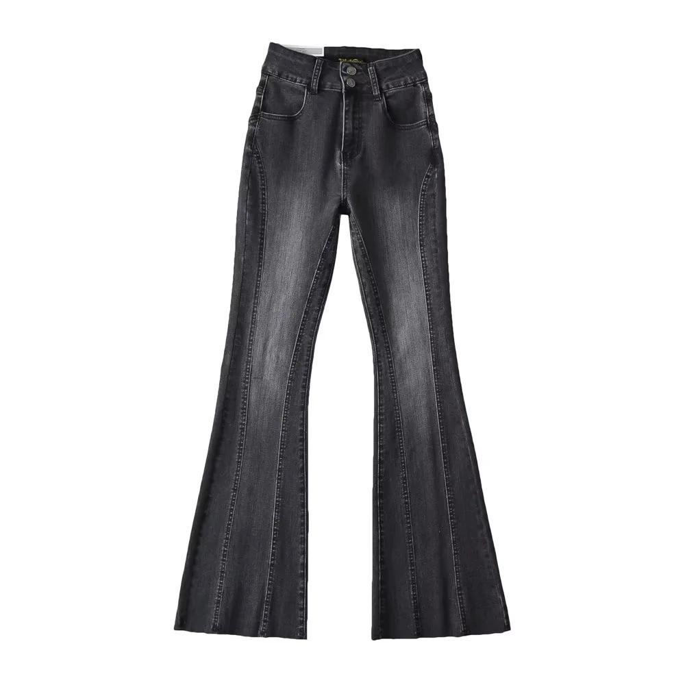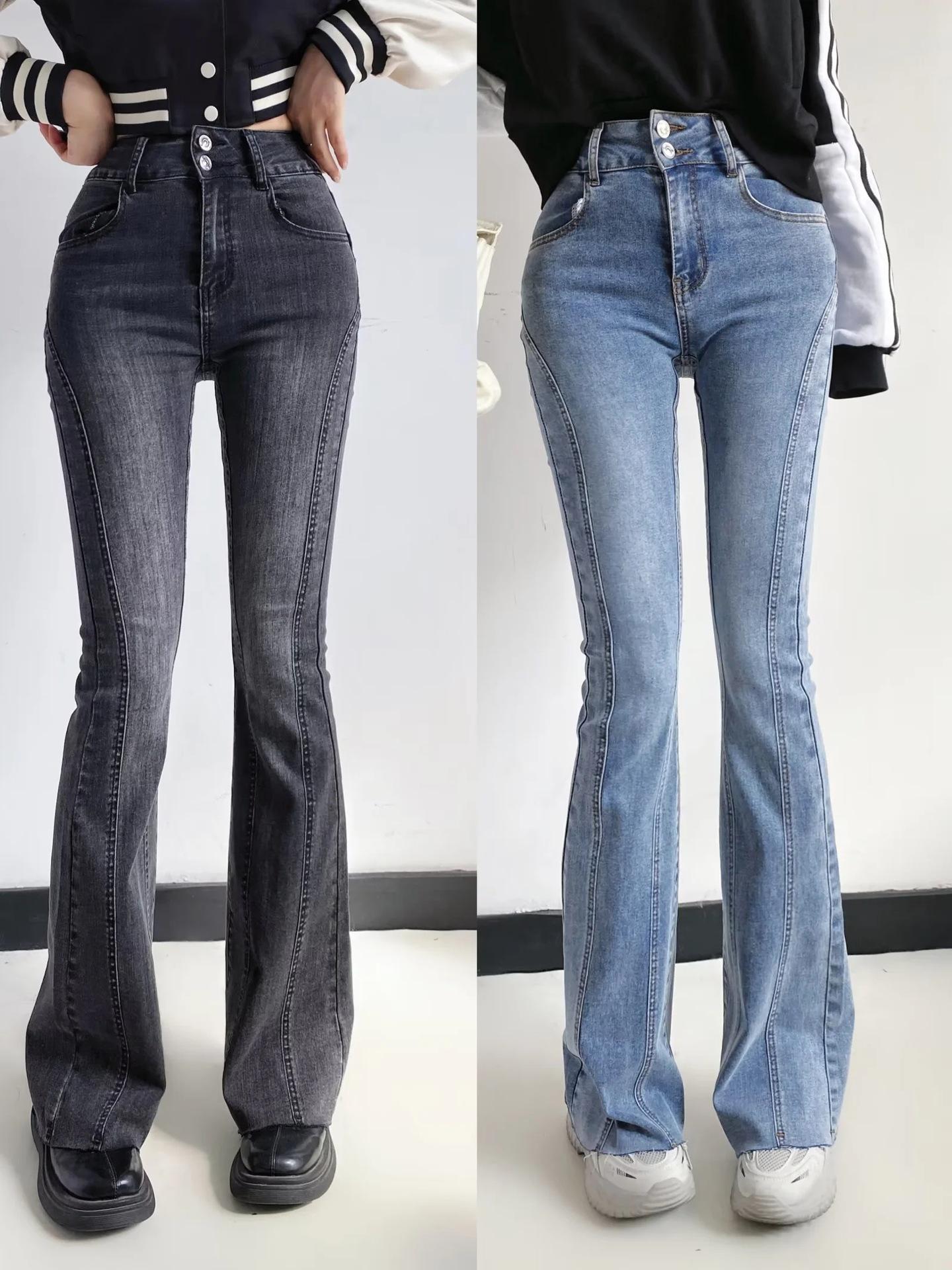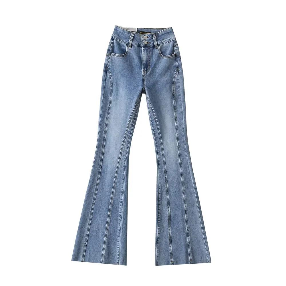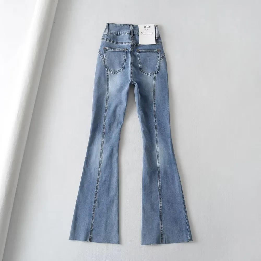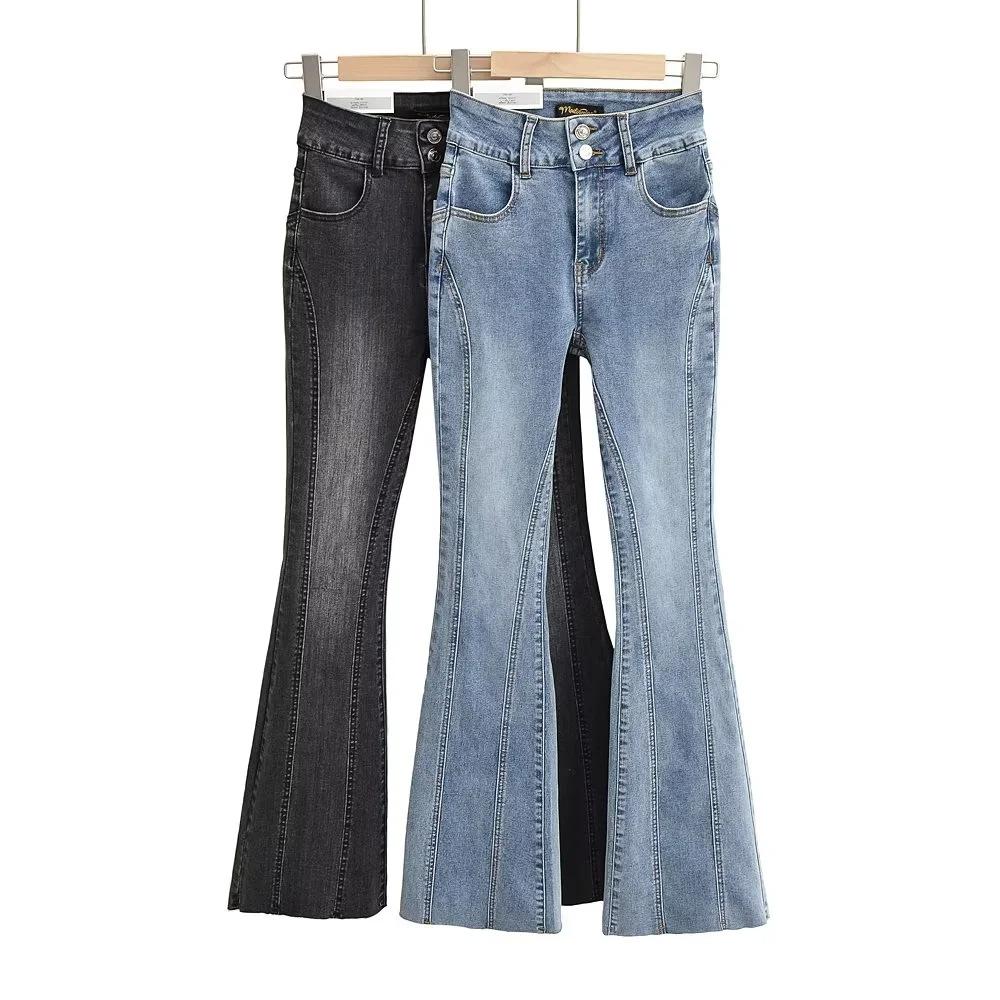 Pantalones acampanados de talle alto y corte ajustado con dos botones, estilo nuevo de otoño 2022 europeo y americano Ins para mujer, con bajo patchwork, pantalones vaqueros modernos