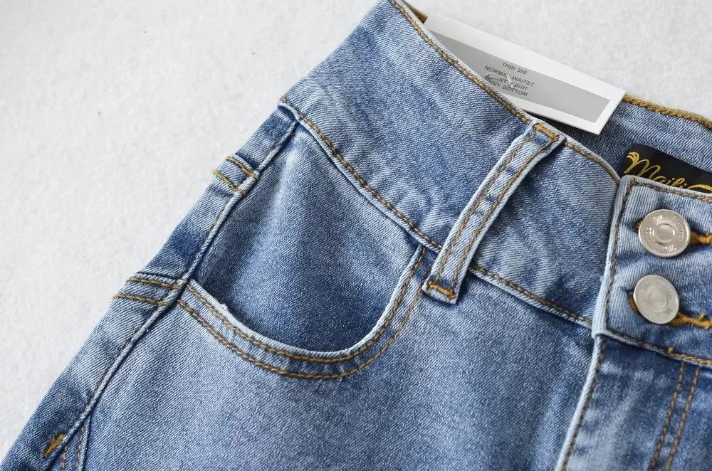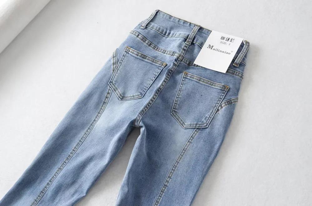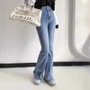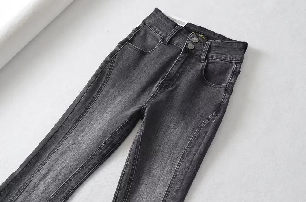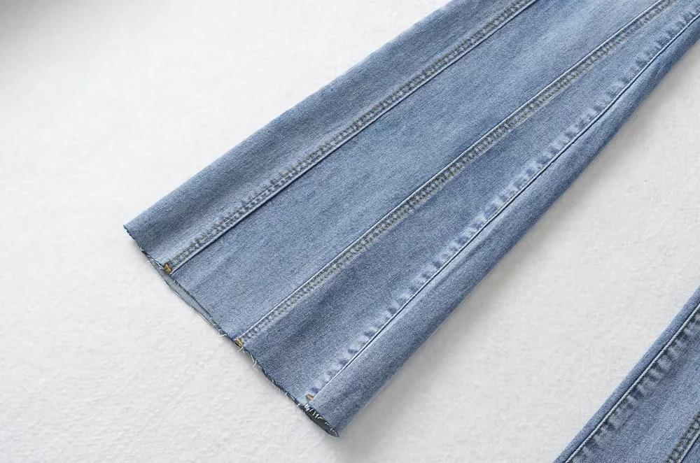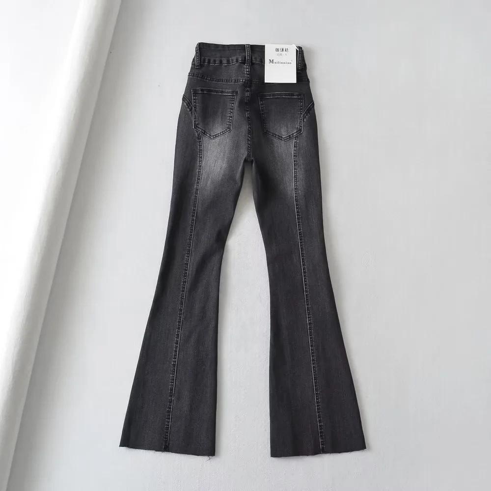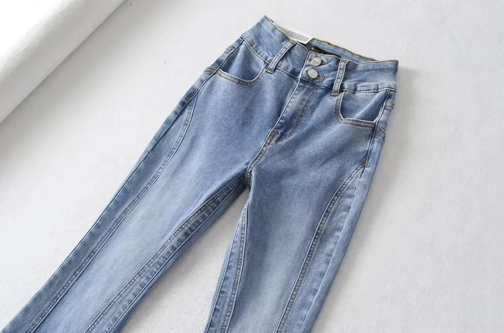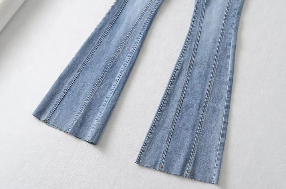 Pantalones acampanados de talle alto y corte ajustado con dos botones, estilo nuevo de otoño 2022 europeo y americano Ins para mujer, con bajo patchwork, pantalones vaqueros modernos