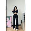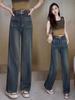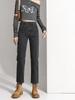Pantalones vaqueros de otoño e invierno para mujer, de cintura alta, pequeños, recortados, de Internet Celebrity, rectos, ajustados, elásticos, sueltos, deshilachados.