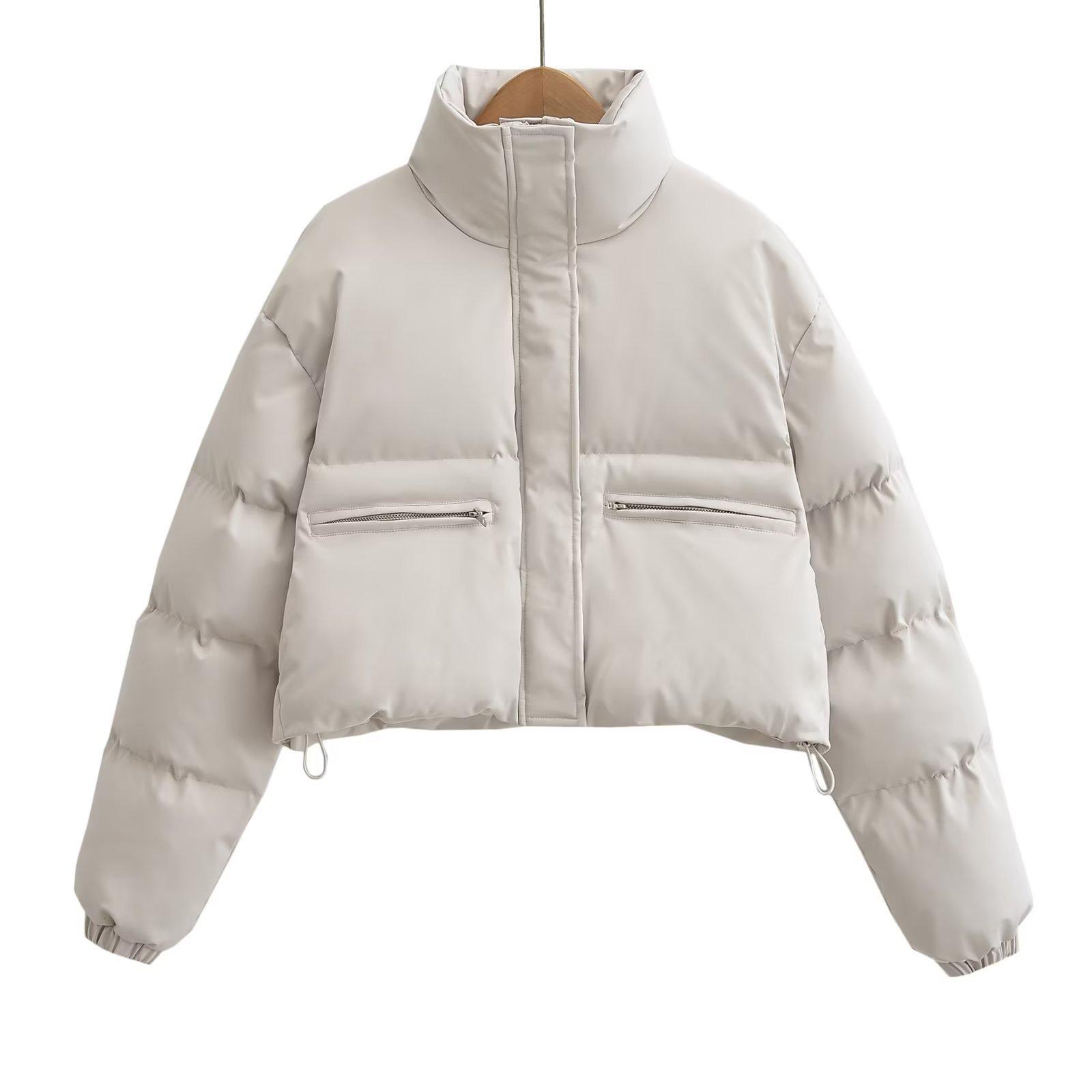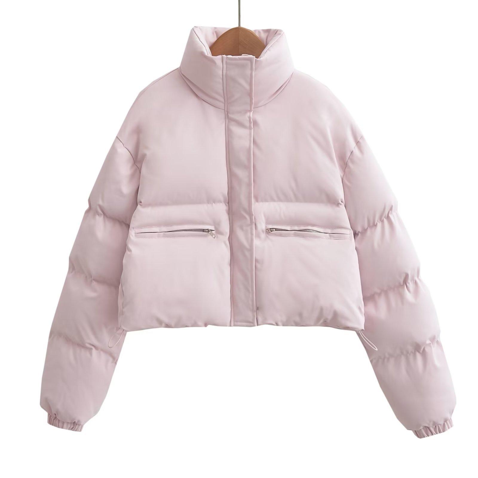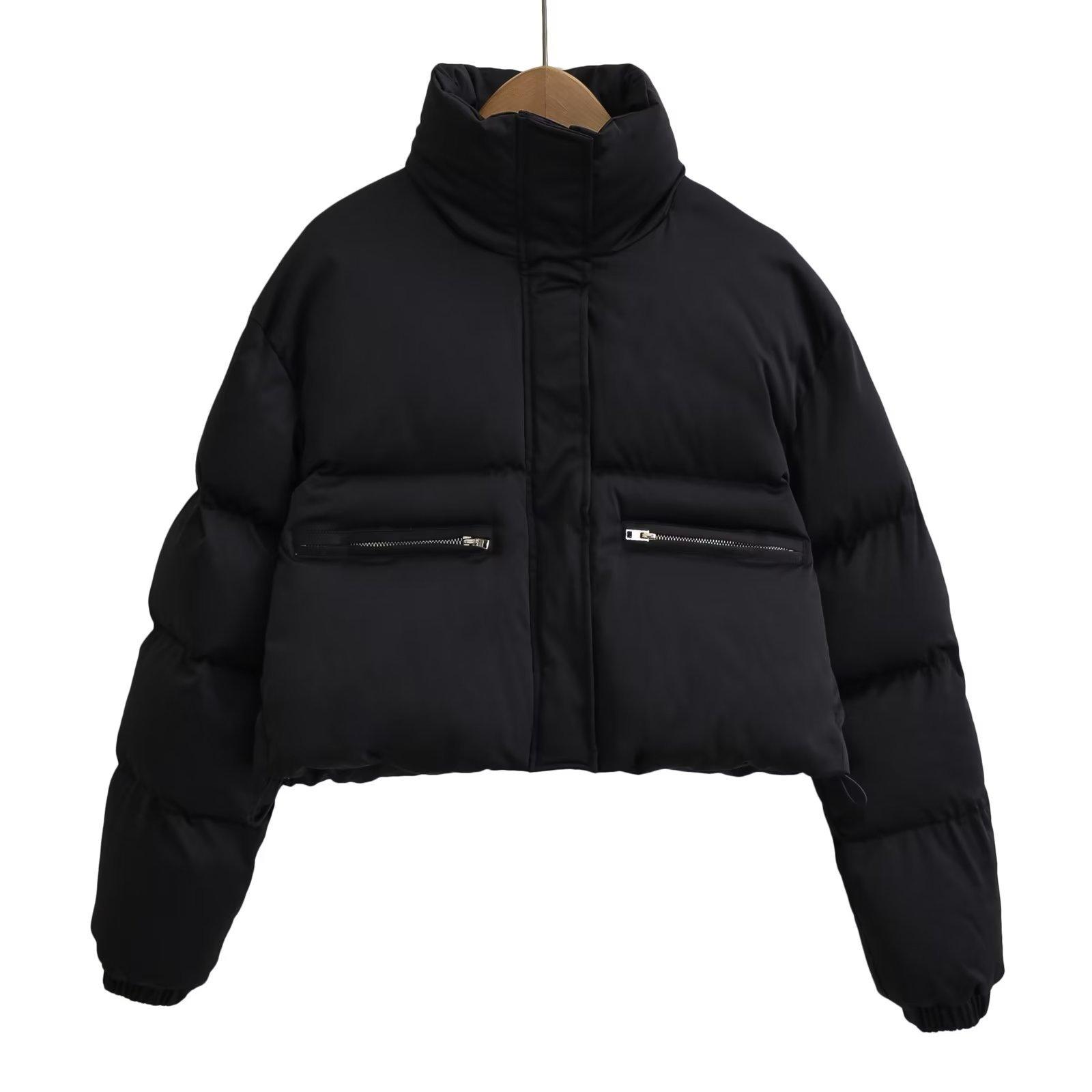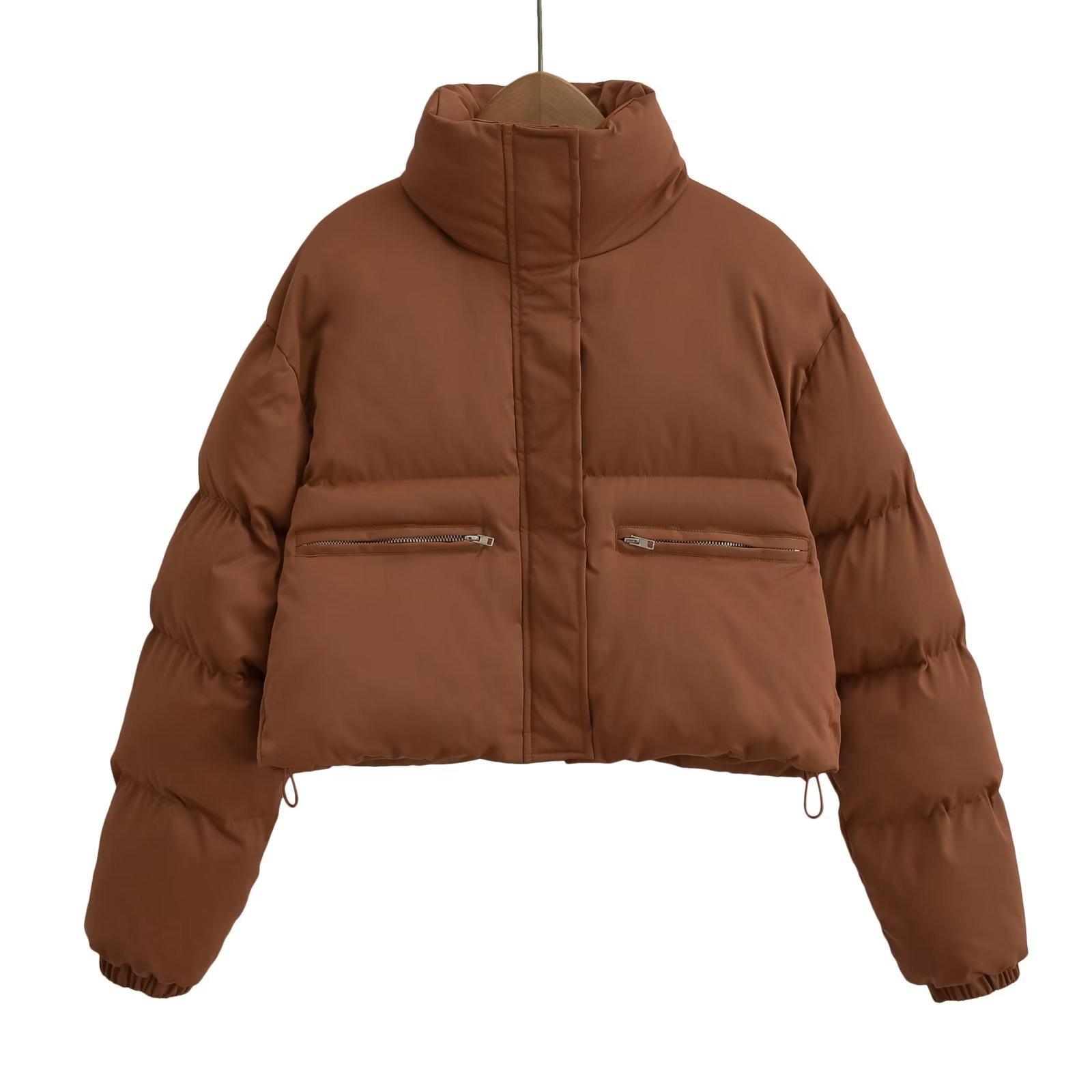 Abrigo de algodón con cuello alto corto de moda urbana para mujer, ropa transfronteriza europea y americana, invierno 2023, w046 8248