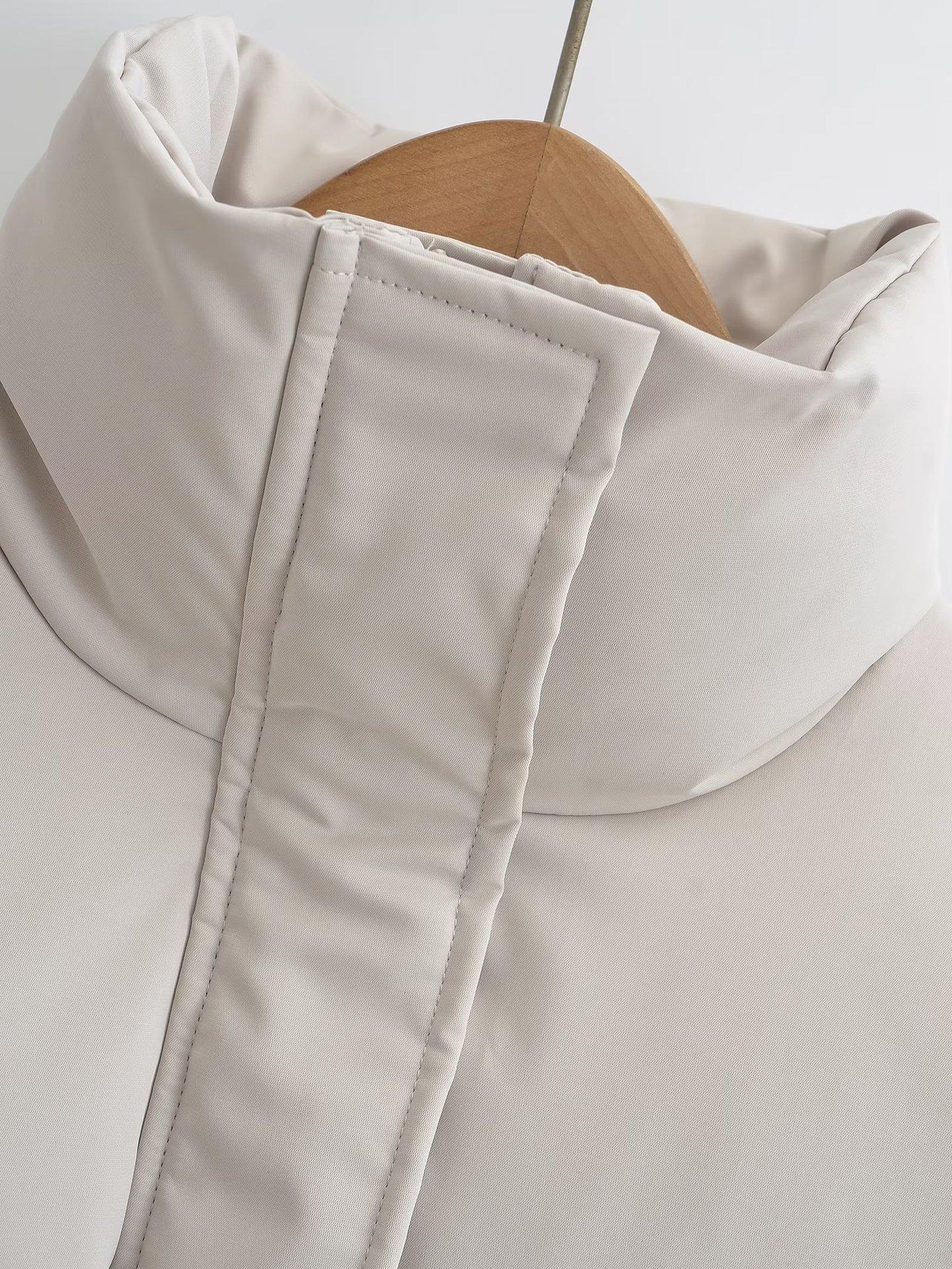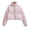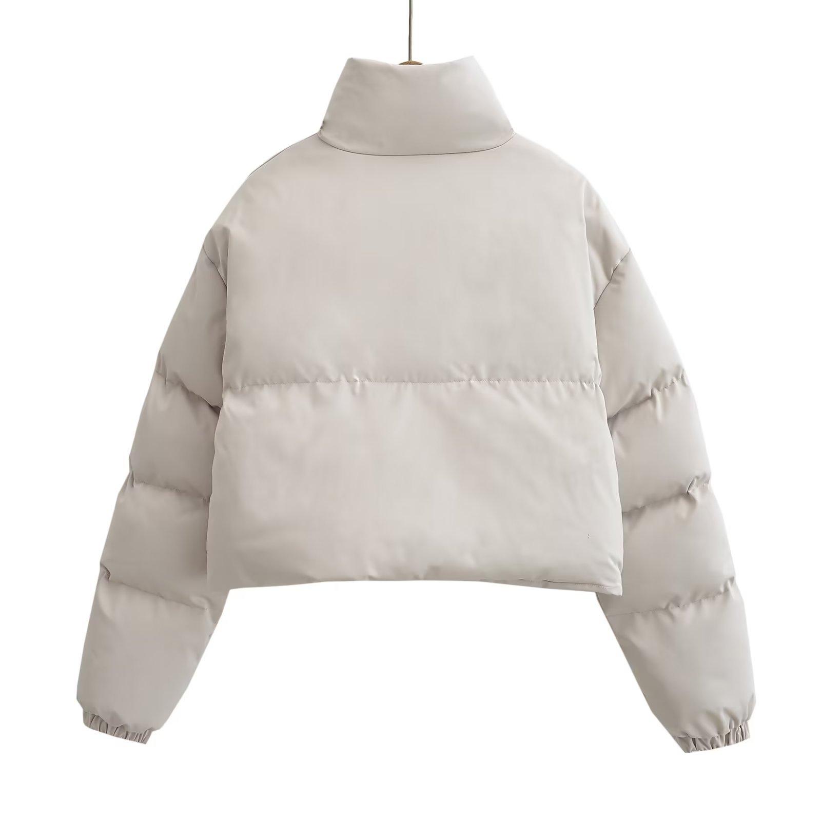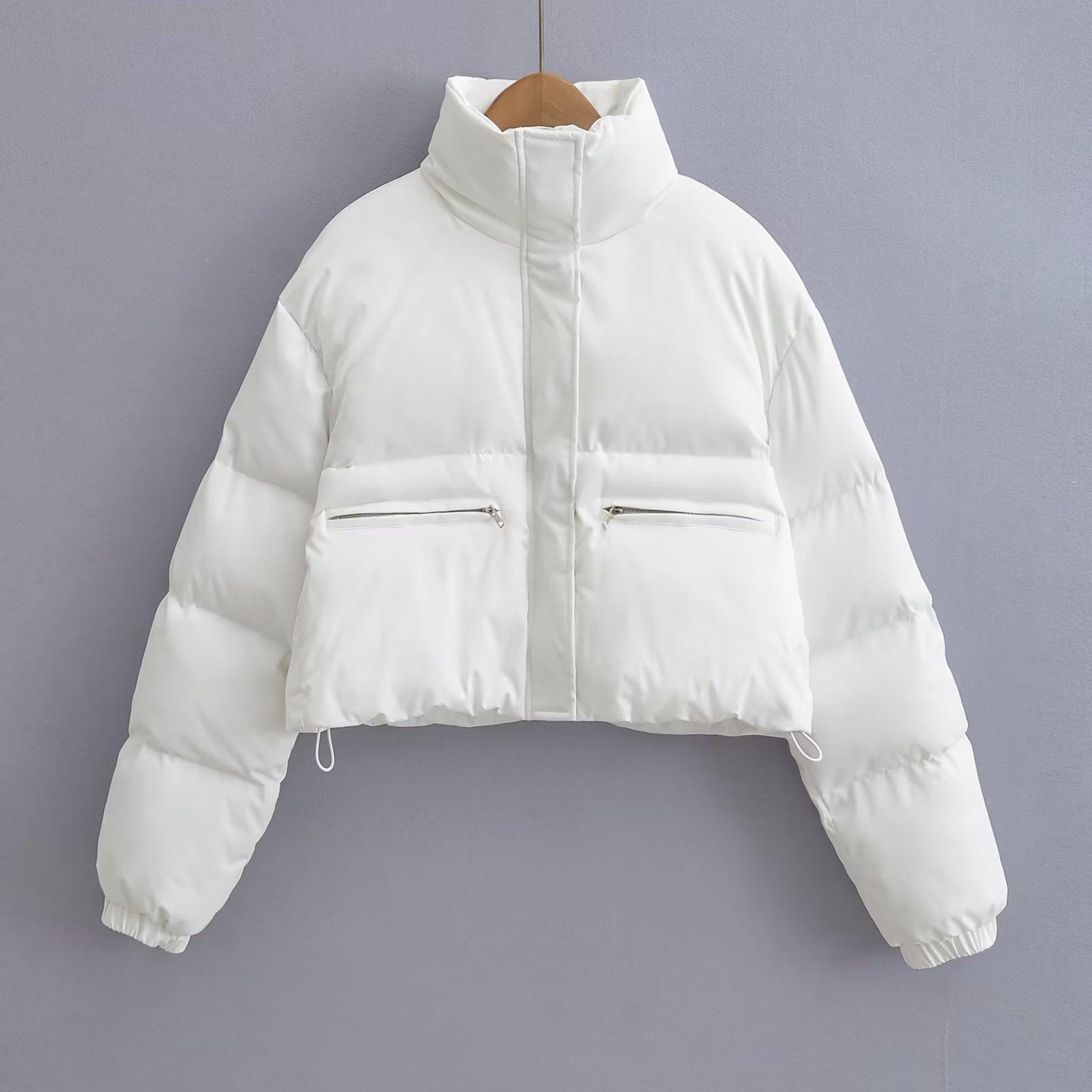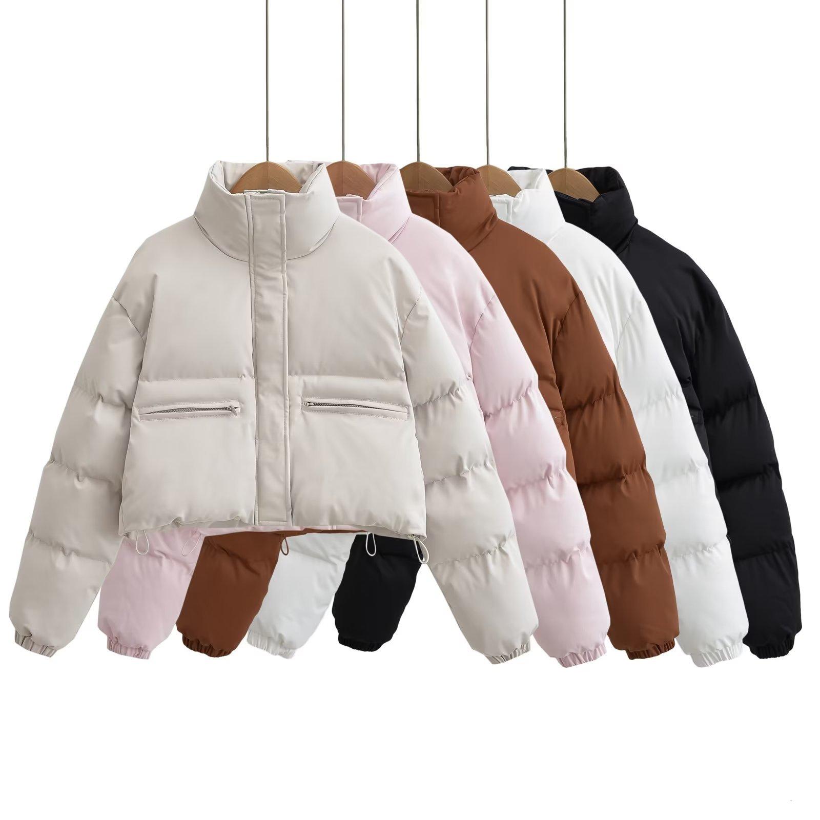 Abrigo de algodón con cuello alto corto de moda urbana para mujer, ropa transfronteriza europea y americana, invierno 2023, w046 8248