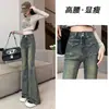 Vaqueros micro acampanados para mujer, estilo retro americano, otoño e invierno 2023, nuevos pantalones elásticos ajustados de cintura alta para chicas calientes de nicho, combinables