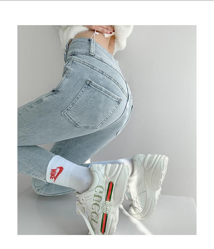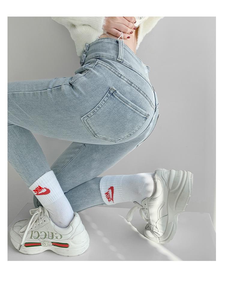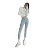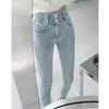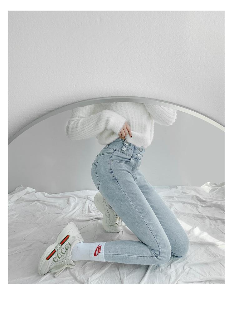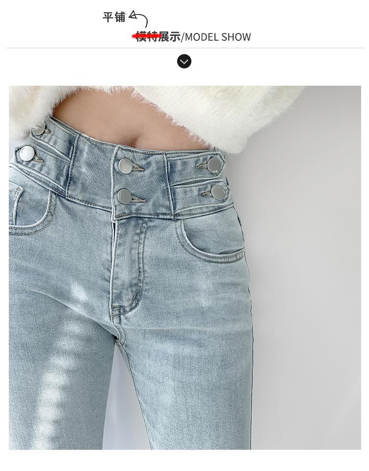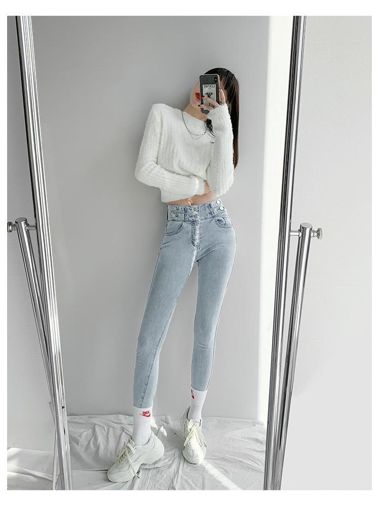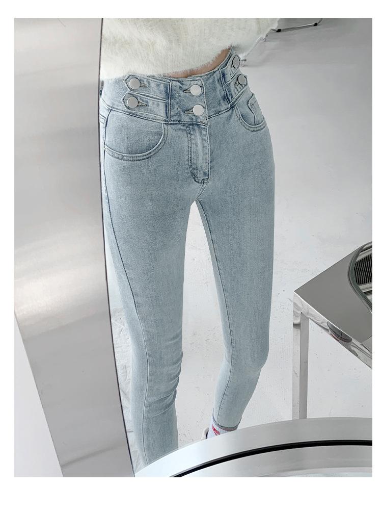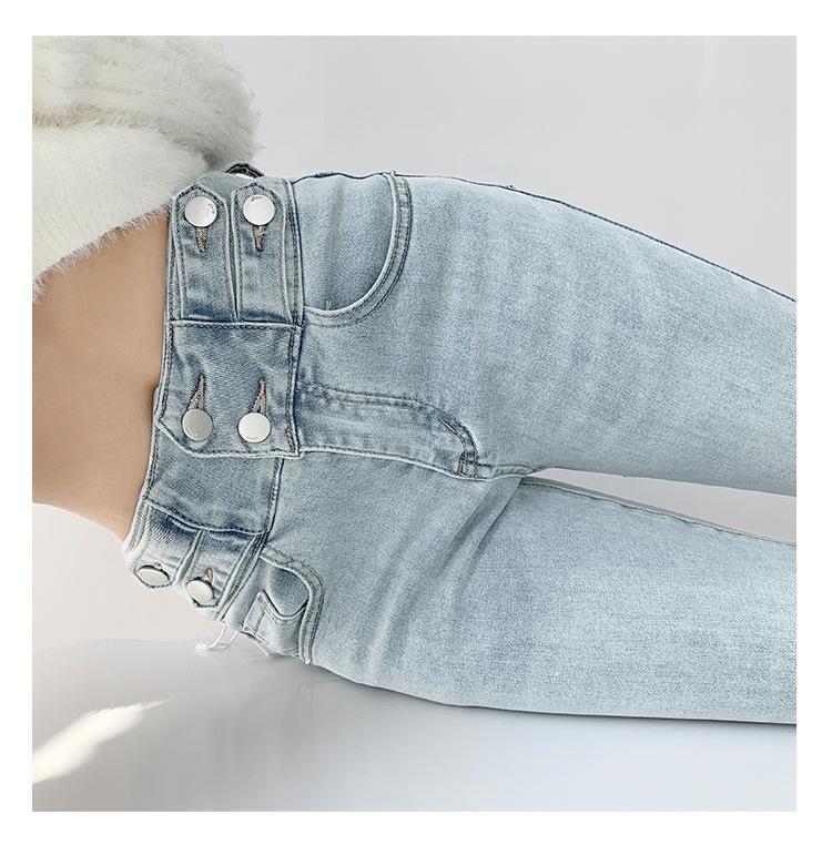 Jeans Simples Adelgazantes de Cintura Alta con Hebilla para Mujer Primavera y Otoño 2023 Ajustados Skinny Vintage Rectos de Lápiz