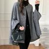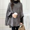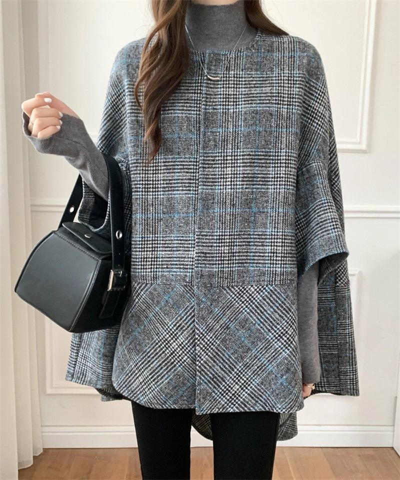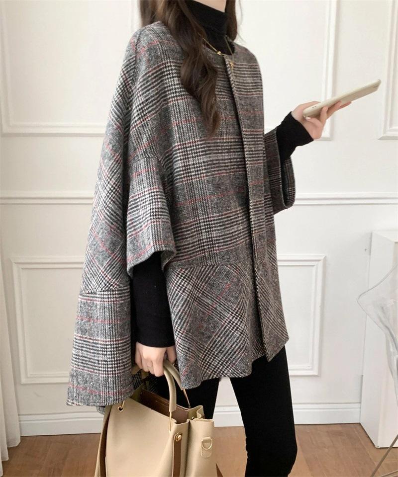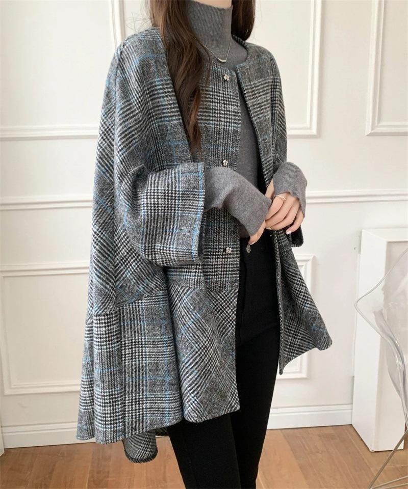 Cárdigan de longitud media con cuello redondo y capa a cuadros para mujer, otoño e invierno 2023, nuevo abrigo de moda de estilo coreano para mujer