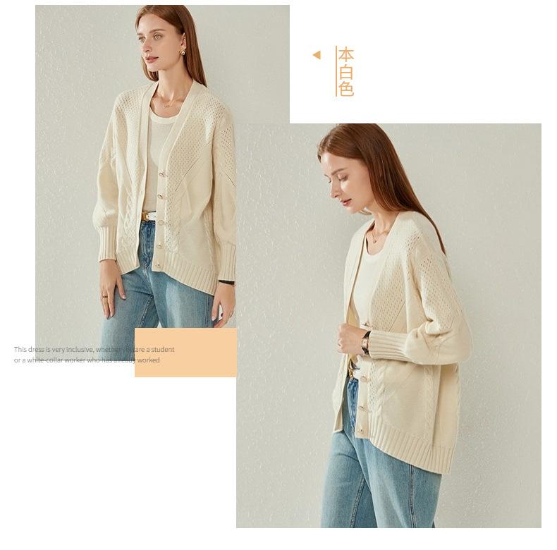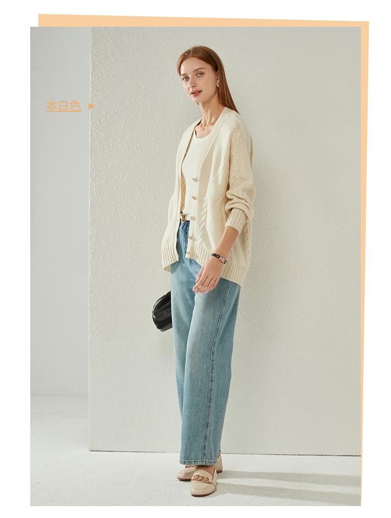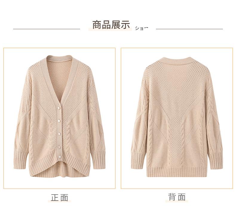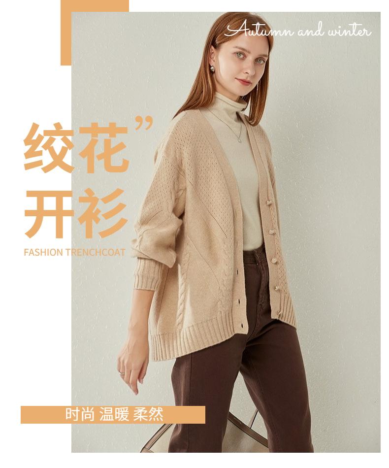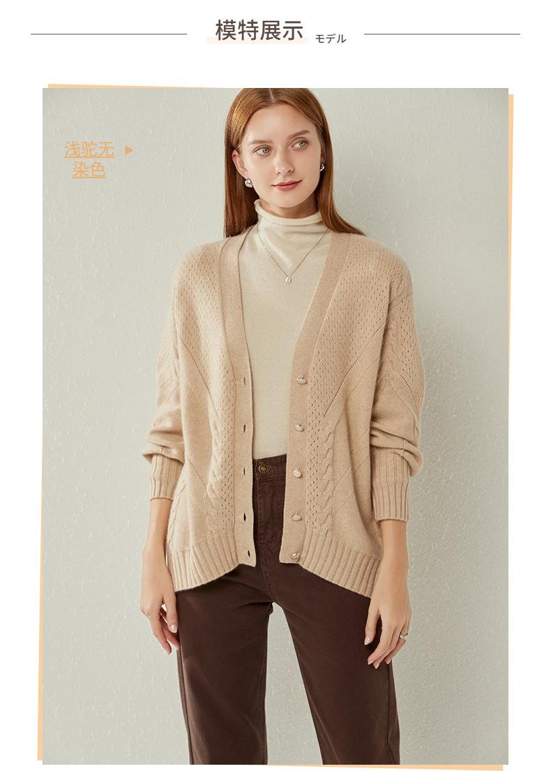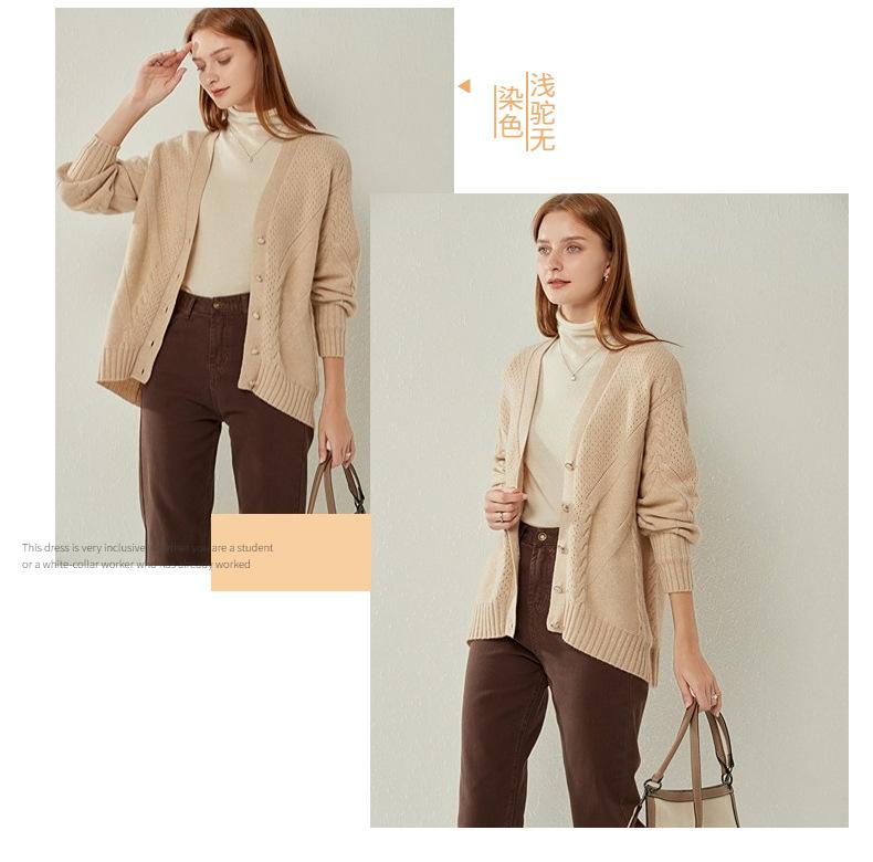 Cárdigan grueso trenzado con cuello en V para mujer, suministro directo de fábrica Erdos, suéter 100% cachemira para mujer, abrigo holgado para mujer