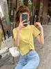 Playera Irregular de Manga Corta para Mujer 2023 Nuevo Diseño de Verano Nicho Manga Corta Cintura Alta Top Corto