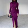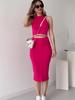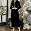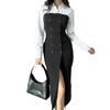 Otoño 2023 nuevo conjunto de dos piezas de blusa de tubo con múltiples botonaduras y falda a la cadera transfronteriza de Amazon transfronteriza europea y americana