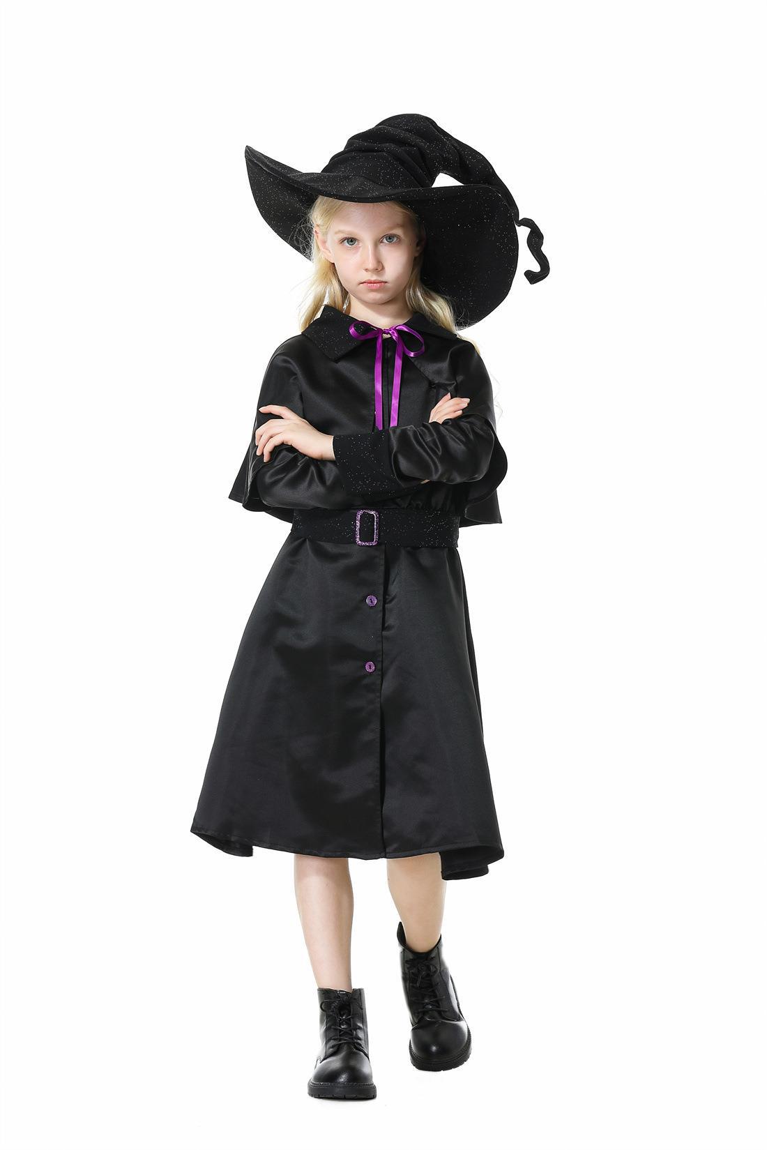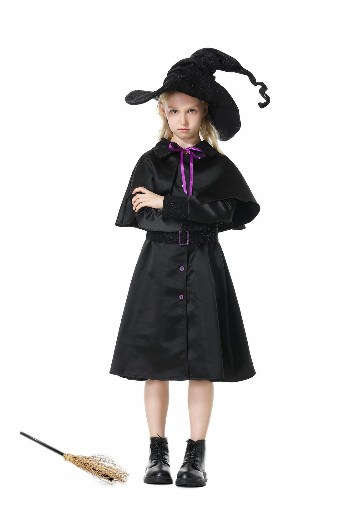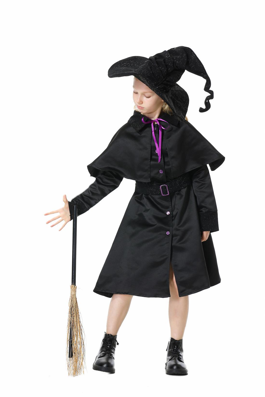Comercio Exterior Amazon Disfraz de Halloween para Niña de Mago Hechicero Cosplay Traje de Vestido Negro