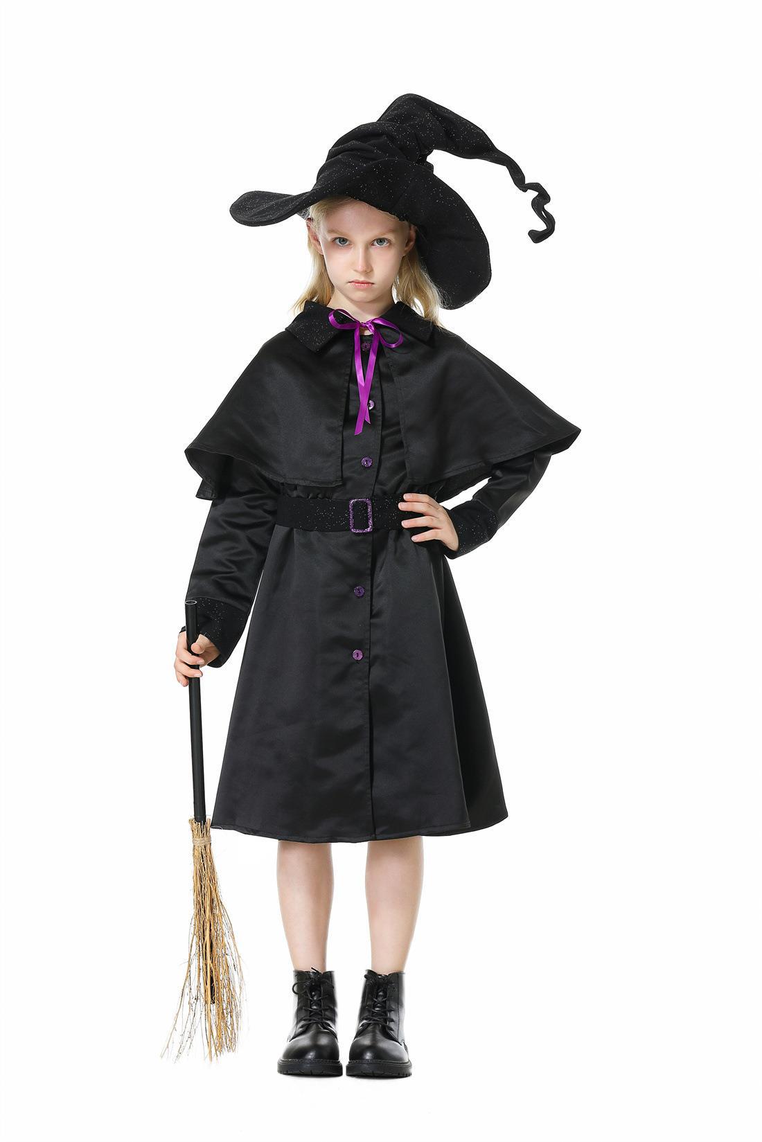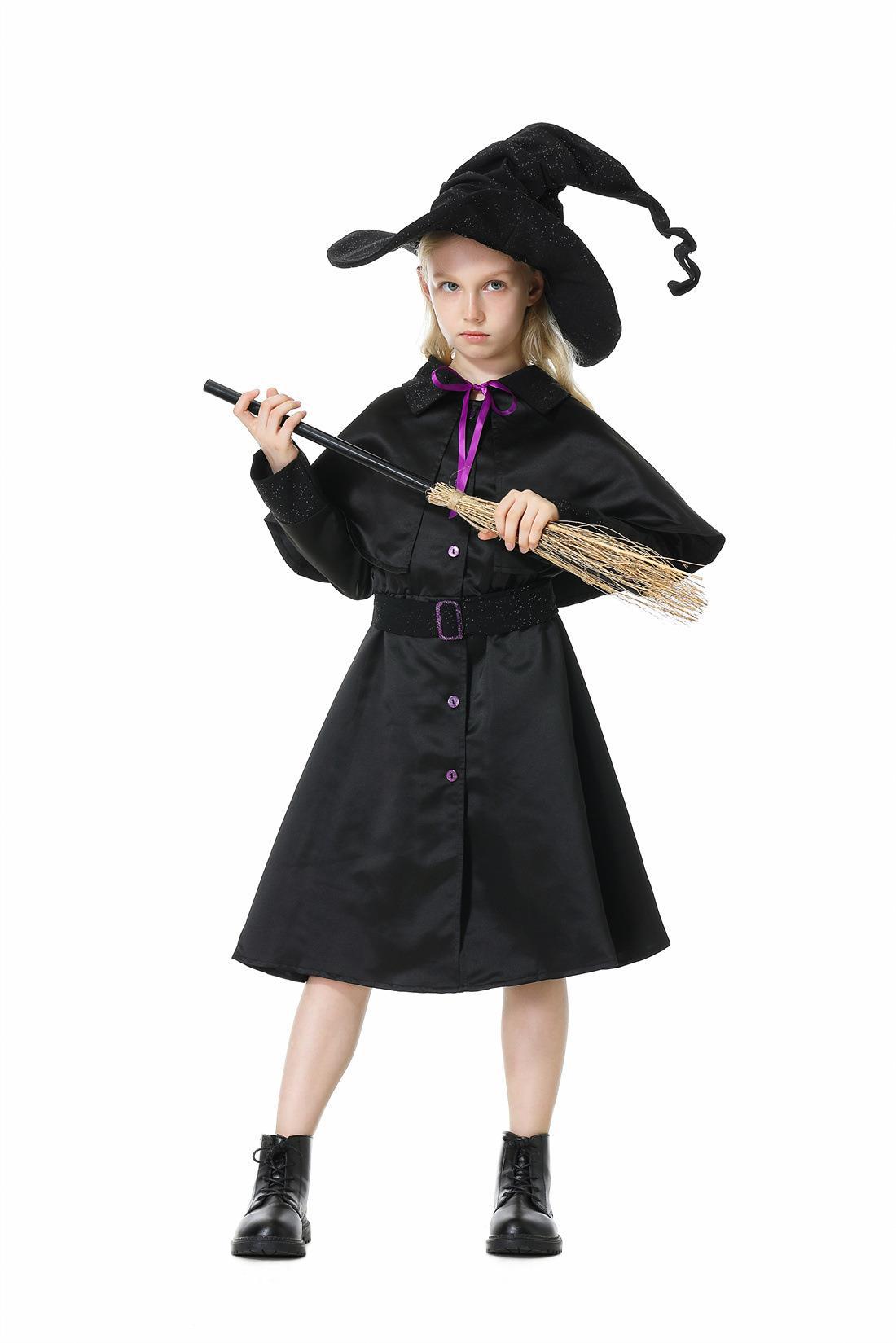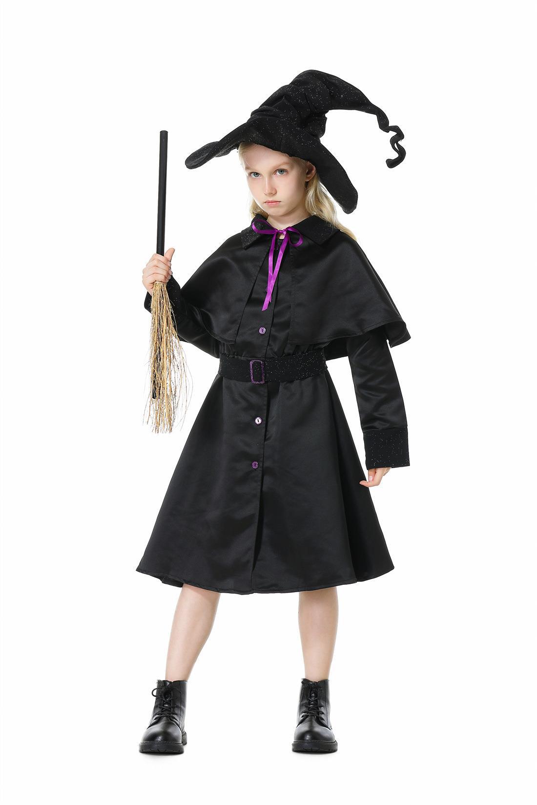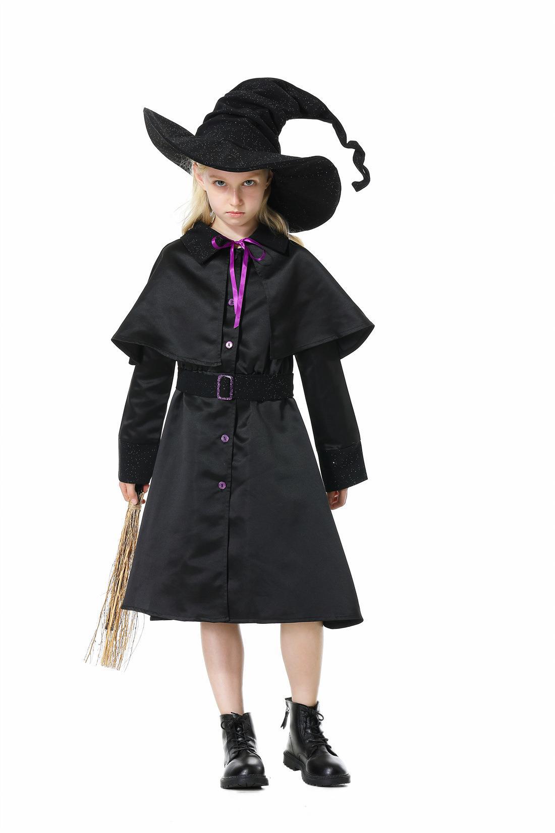 Comercio Exterior Amazon Disfraz de Halloween para Niña de Mago Hechicero Cosplay Traje de Vestido Negro