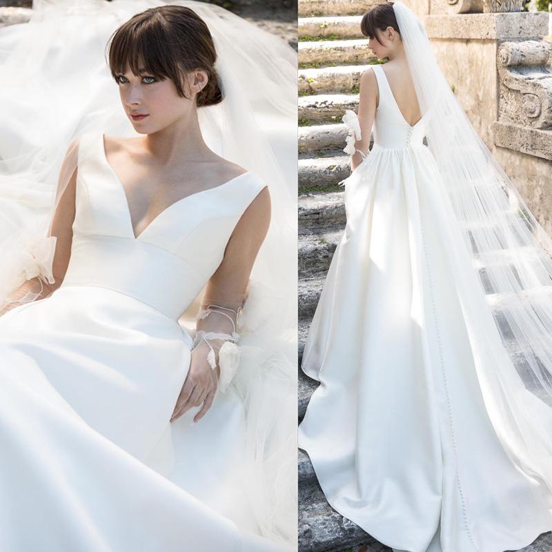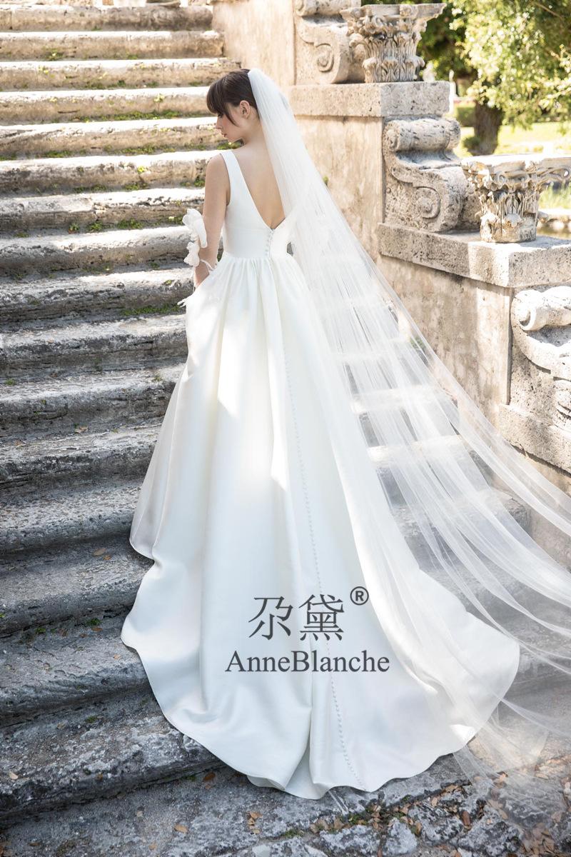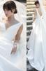 2025 Nuevo Sencillo y Elegante Hombro Descubierto Espalda Elegante Cola Satín Ceremonia Vestido de Novia Salida Velo Fotografía de Viajes