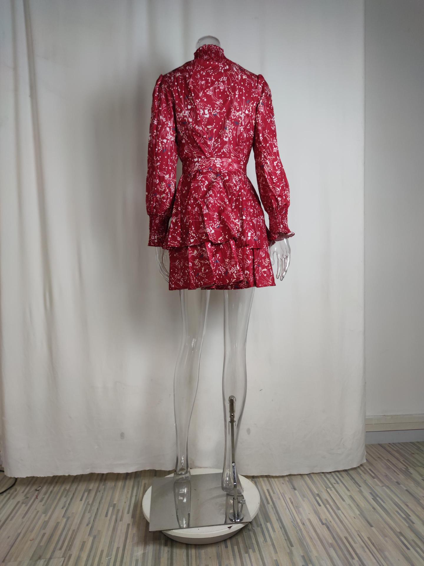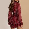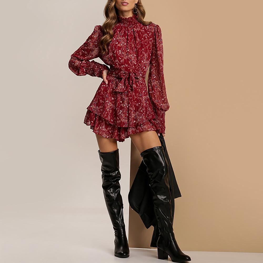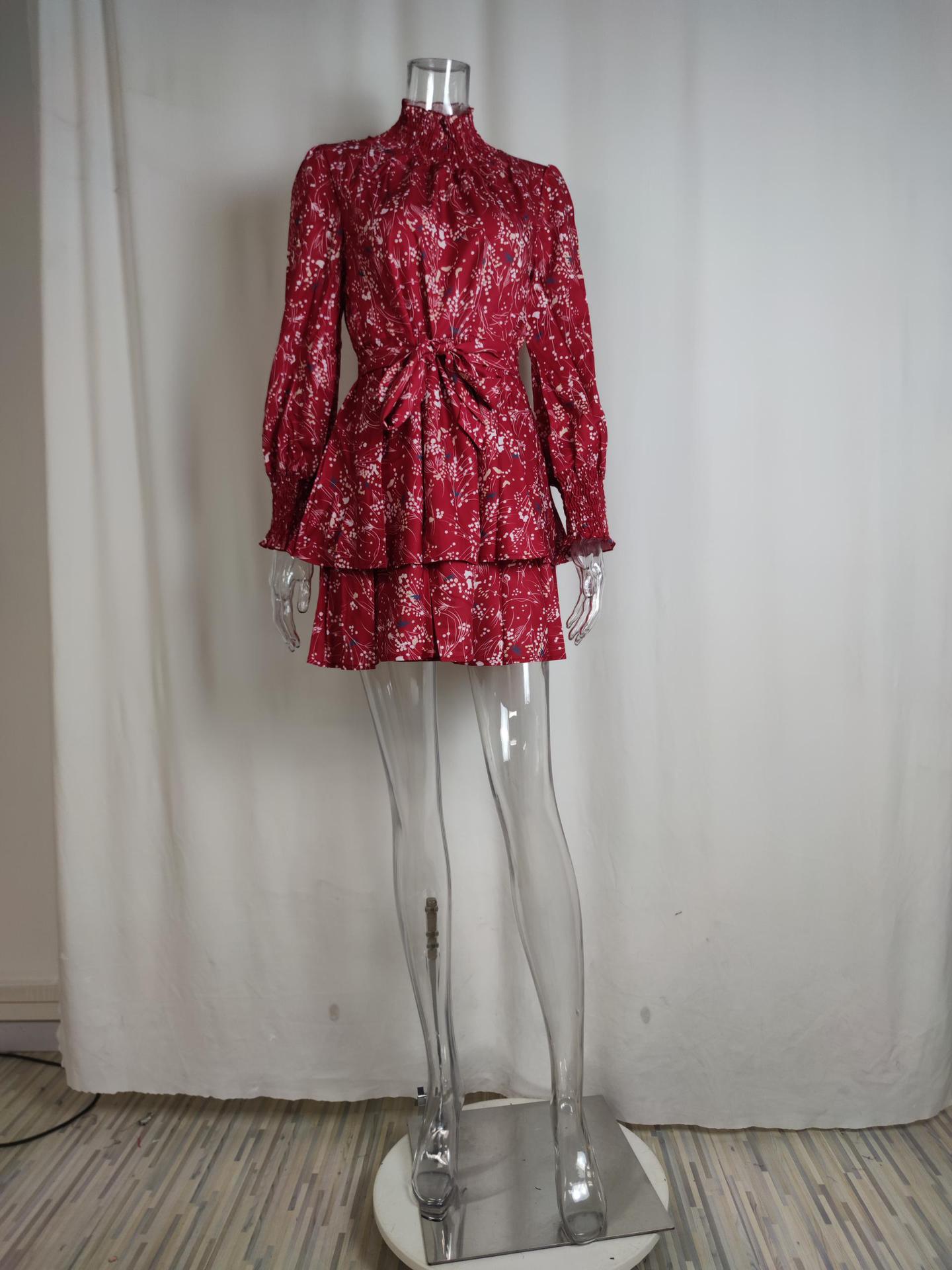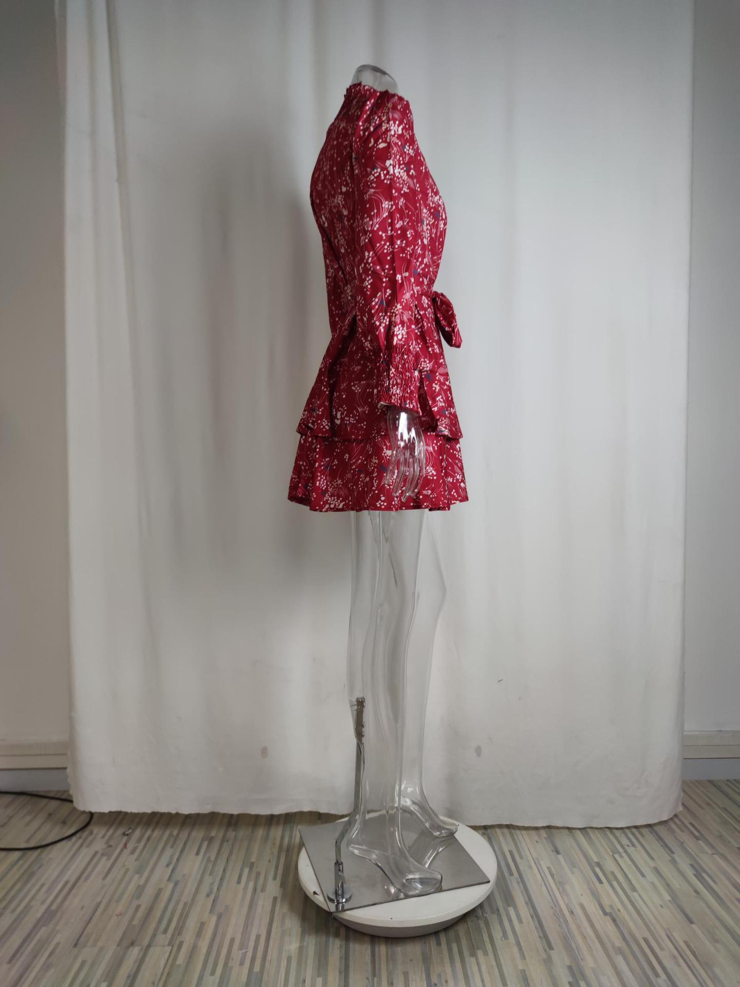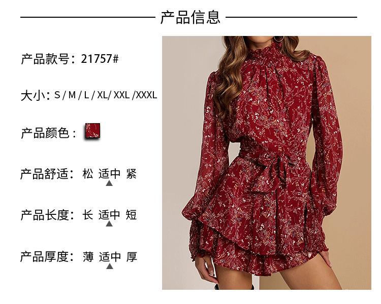 Comercio Exterior Nuevo Amazon Ropa Europea y Americana Elegante Vestido Corto Floral con Volantes de Manga Larga para Mujer 661