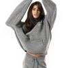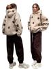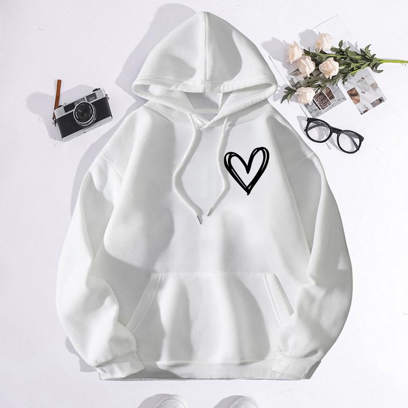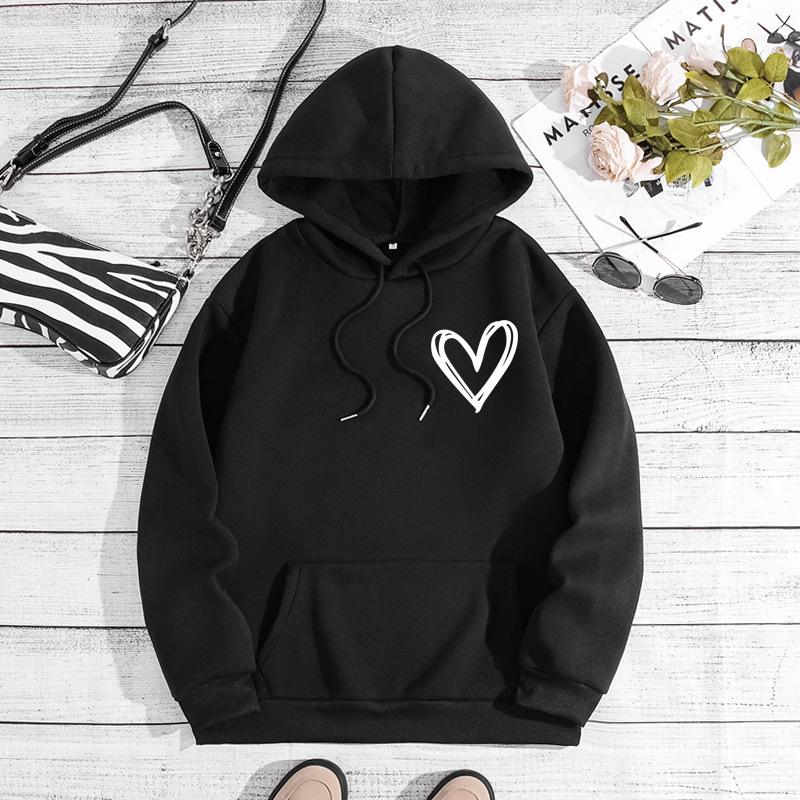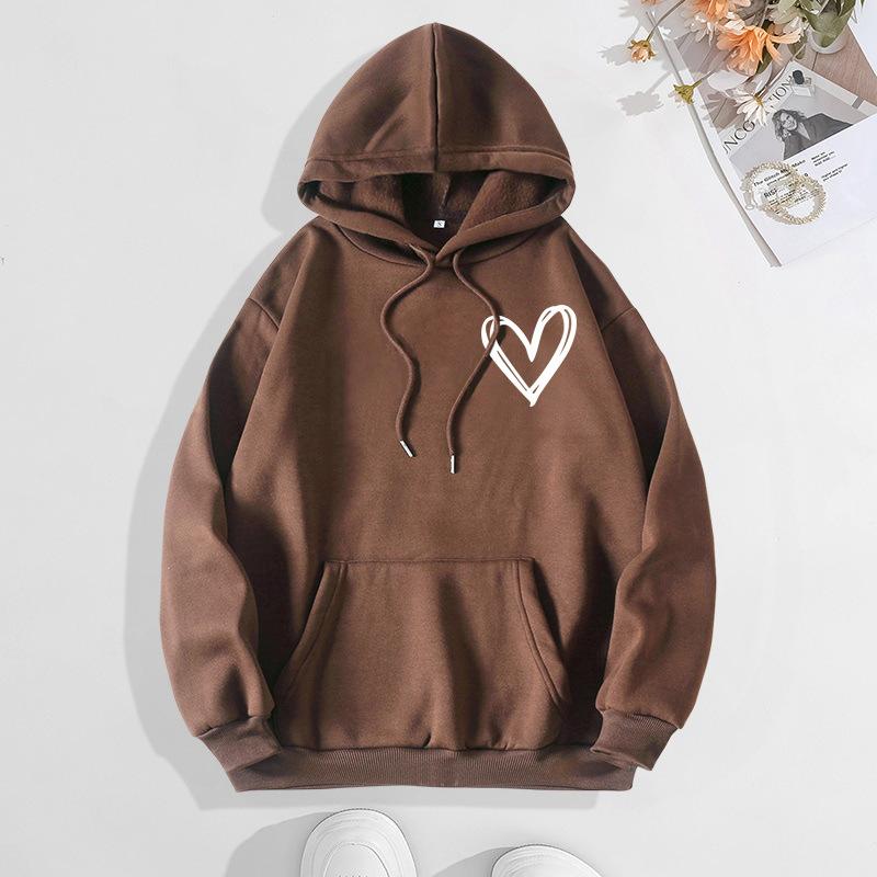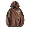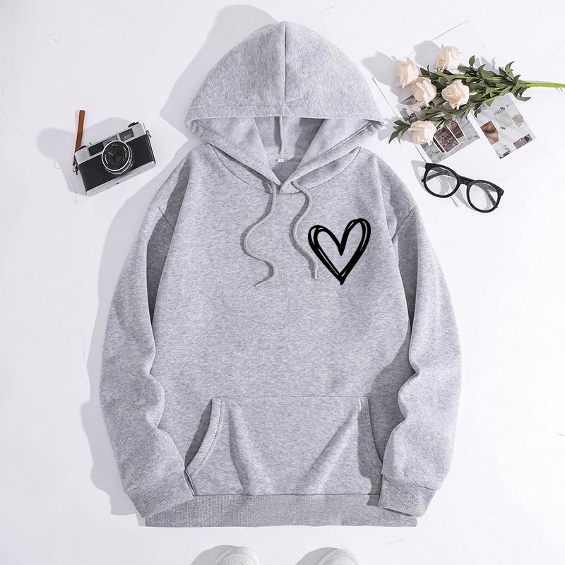 Suéter de otoño e invierno transfronterizo europeo y americano nuevo suéter con capucha estampada en forma de corazón con cuello de bolsa en la espalda y forro polar para mujer