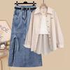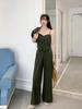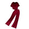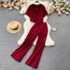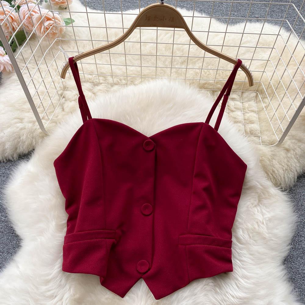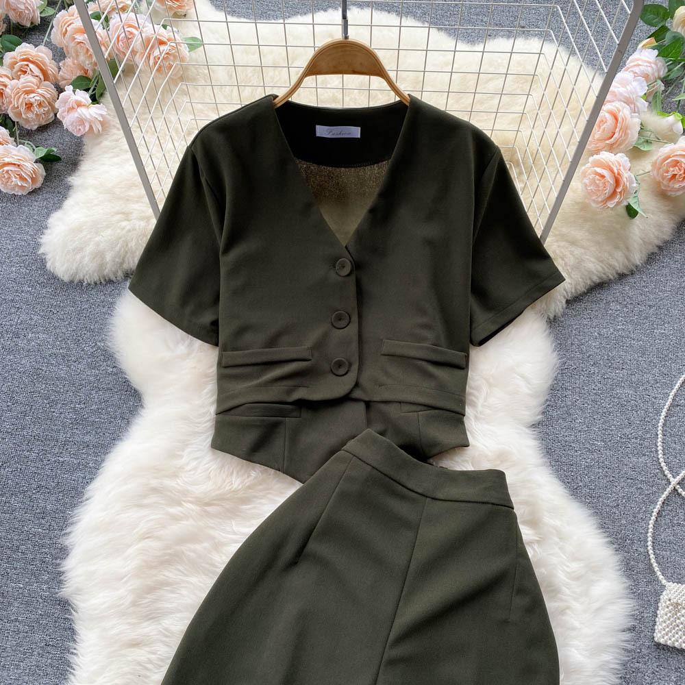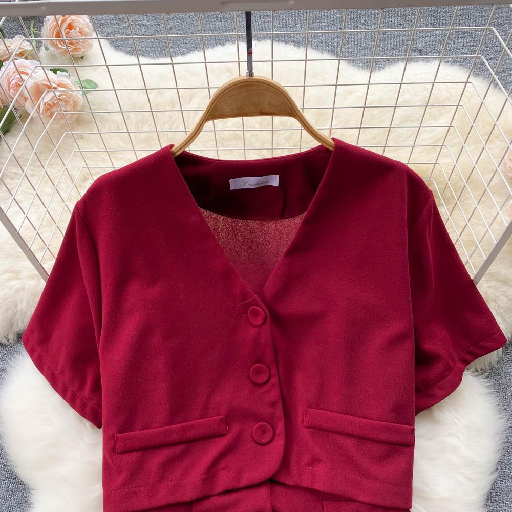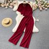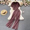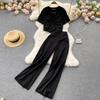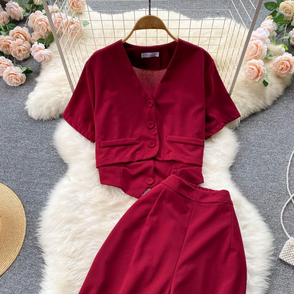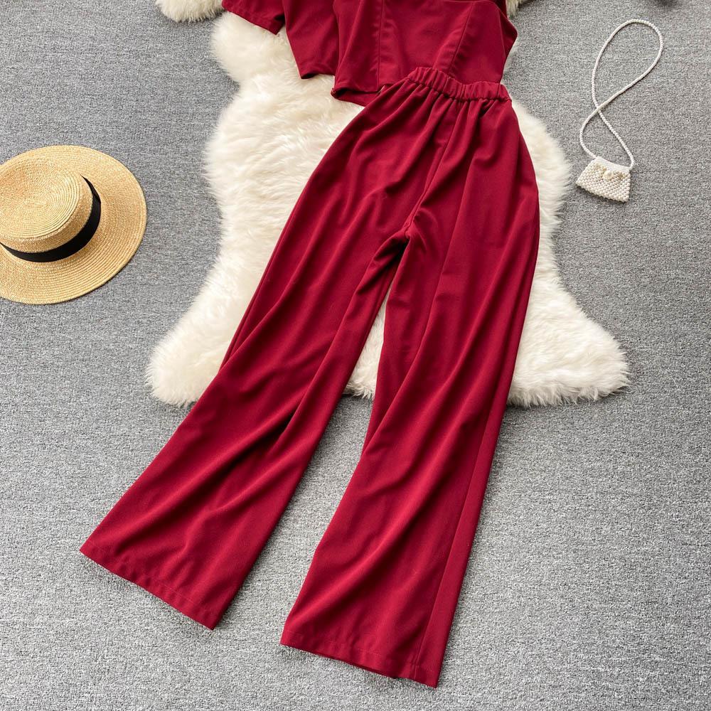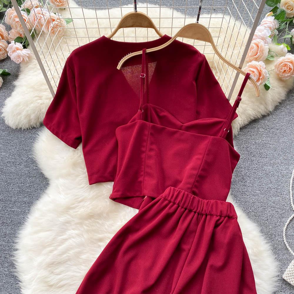 Traje de moda coreana para mujer, camisola de verano, camisa corta con cuello en V, abrigo, pantalones de pierna ancha de cintura alta, conjunto de tres piezas