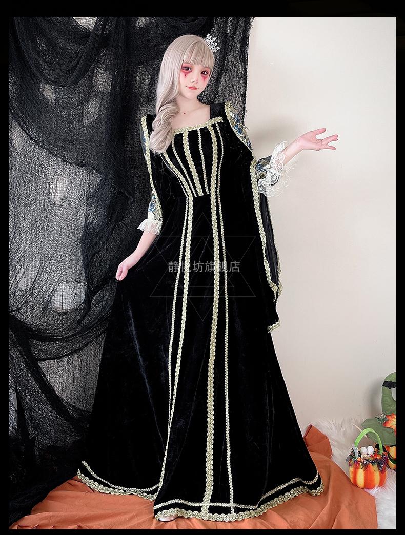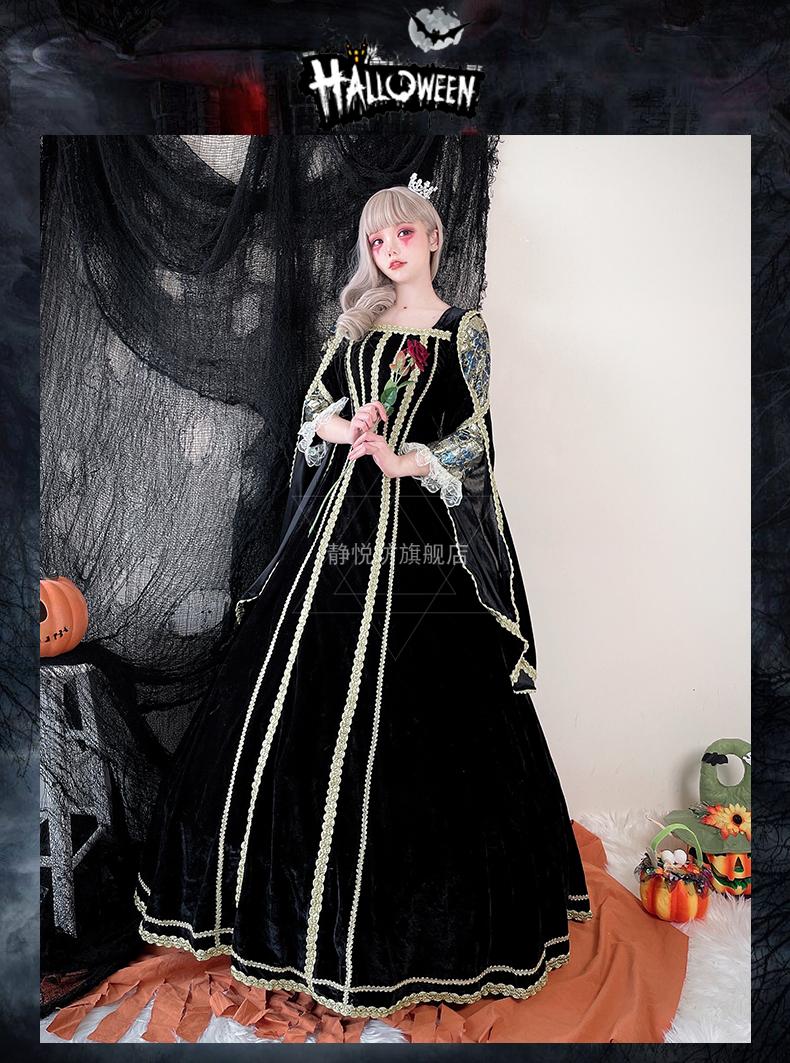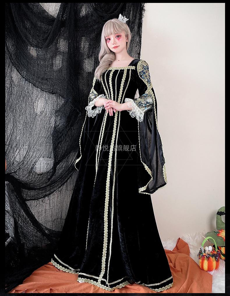 Halloween Adulto Retro Corte Reina Vestido Trasero Chal Capa cosplay Bruja Femenina Vestido Largo Comercio Exterior Transfronterizo