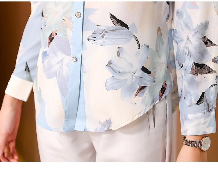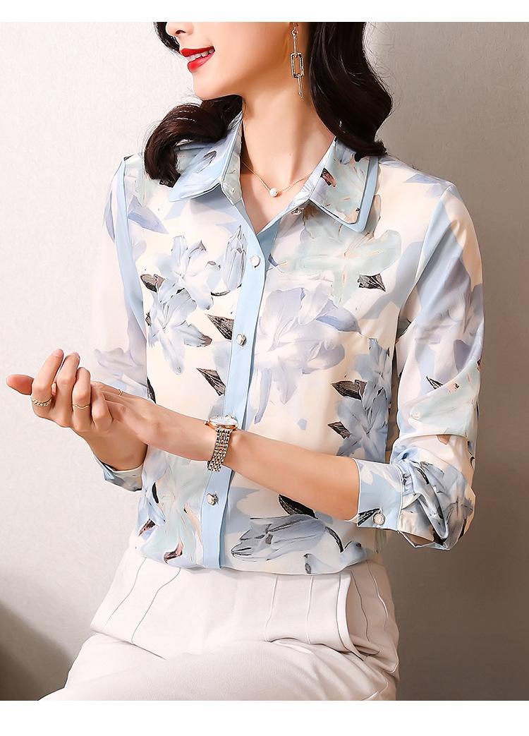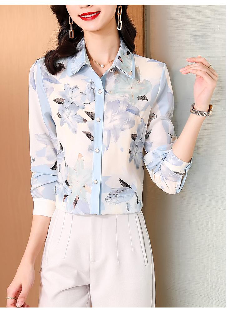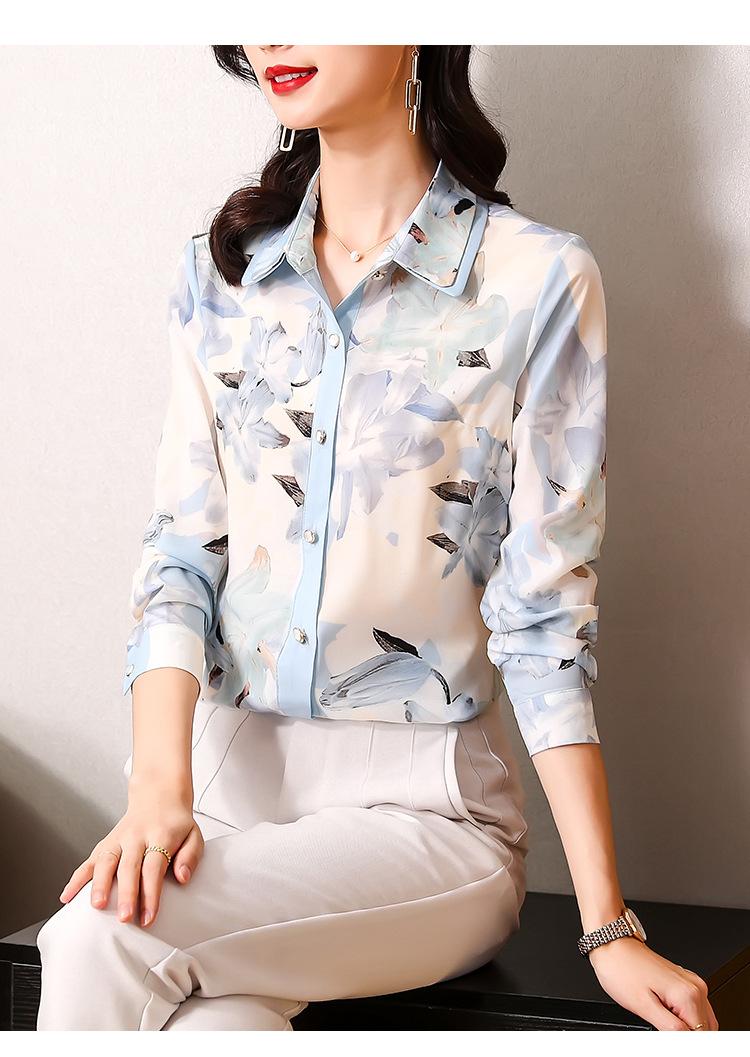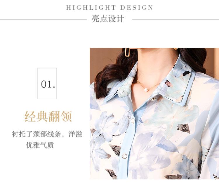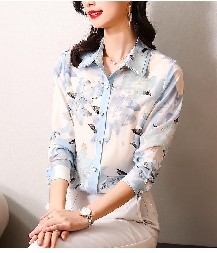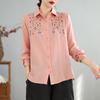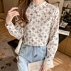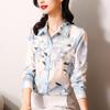 Foto real Otoño 2024 Nueva Moda camisa suelta con temperamento Camisa de solapa de alta calidad estampada retro para mujer Estilo occidental top reductor de edad