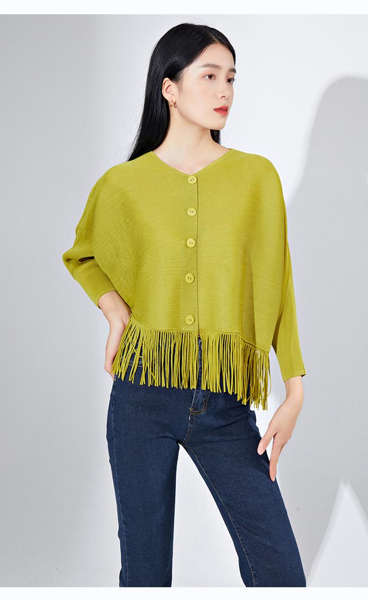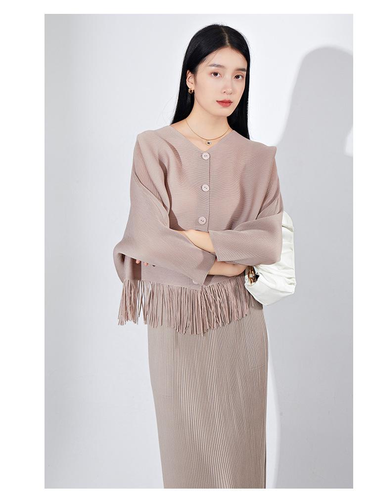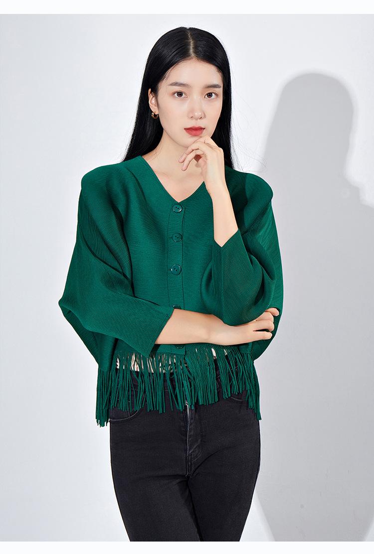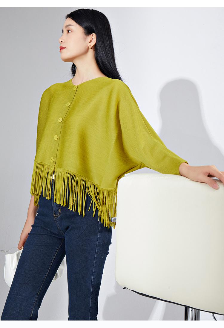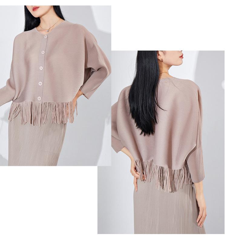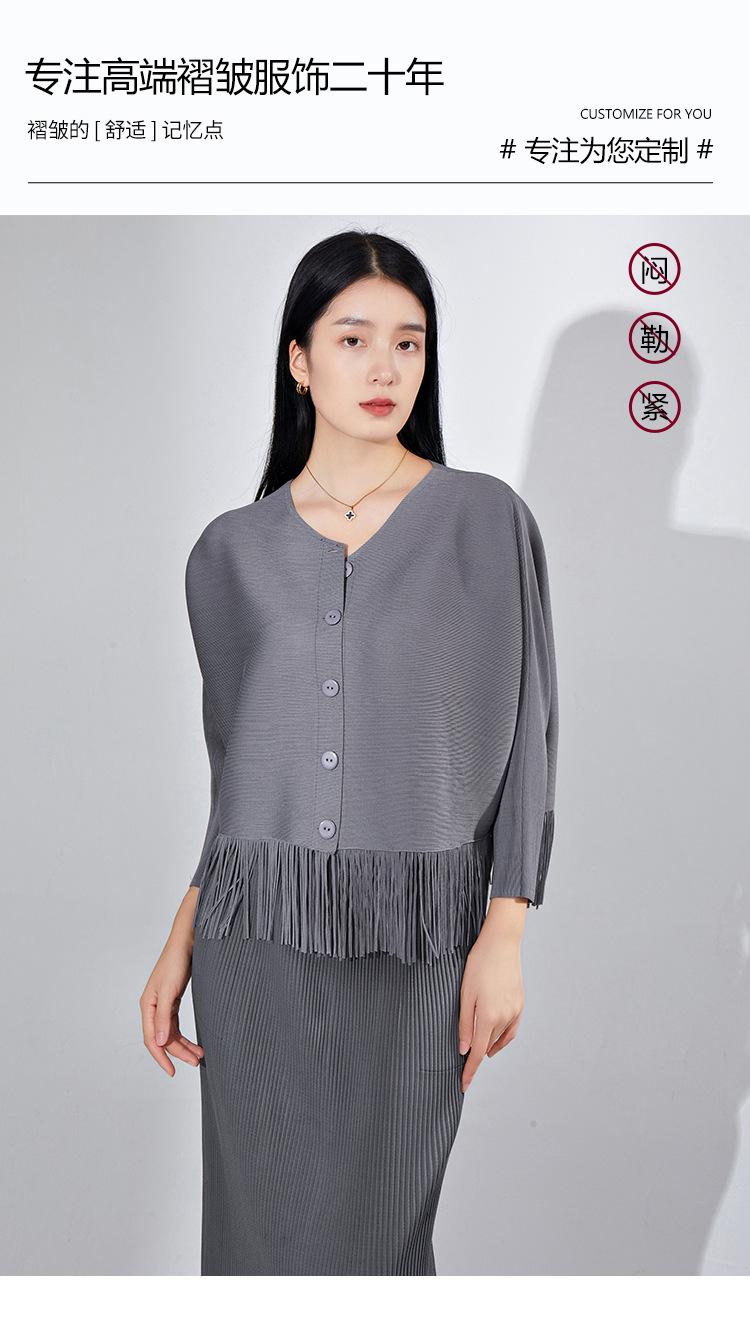 Chaqueta corta ajustada con mangas de cinco puntos para mujer de Miyake, estilo nuevo de primavera y verano, con un botón y top plisado, para uso exterior |
