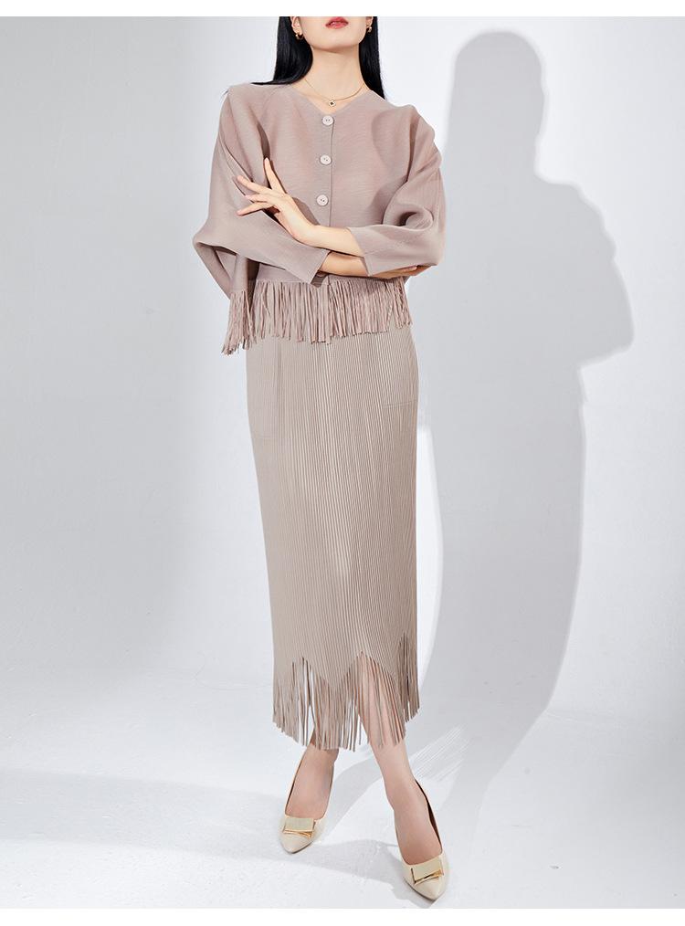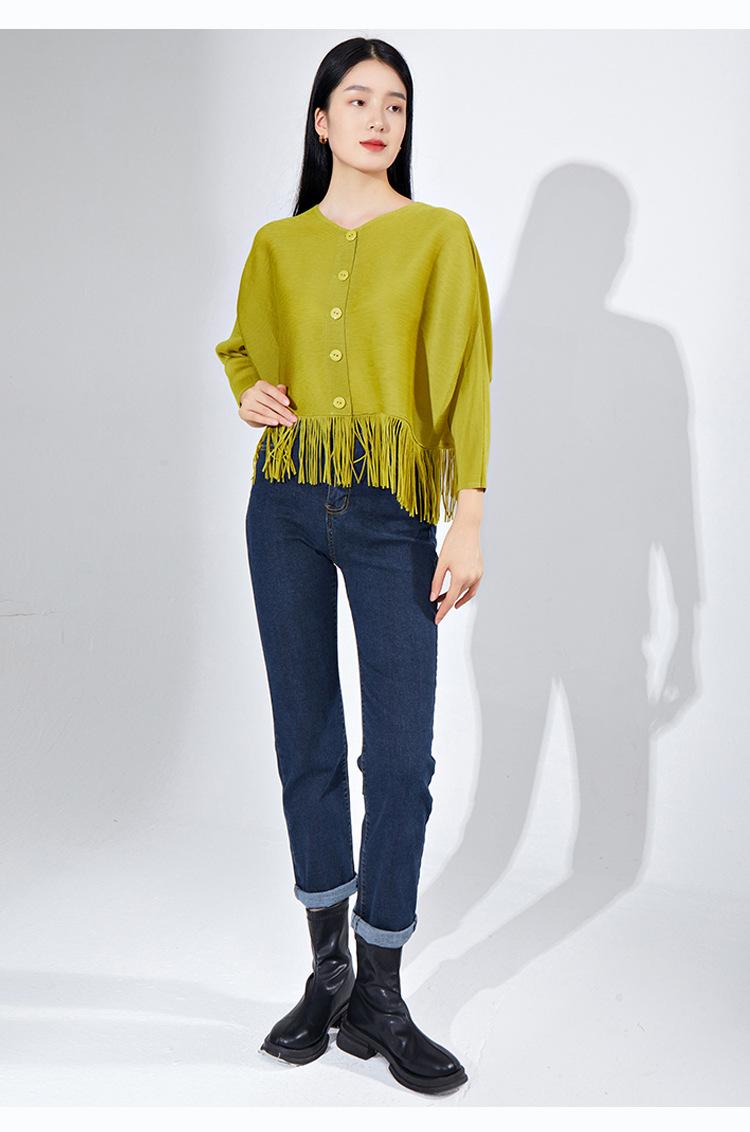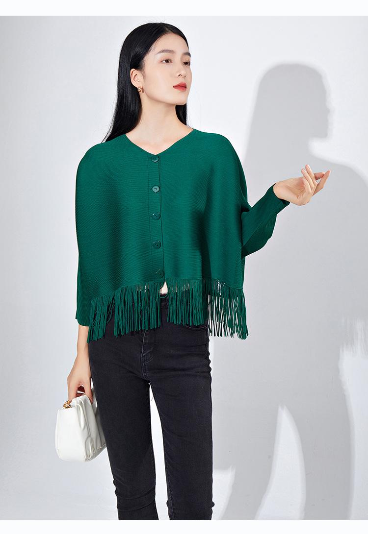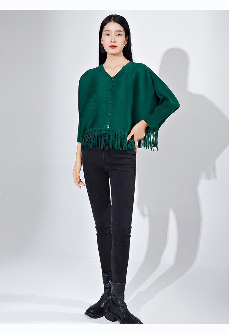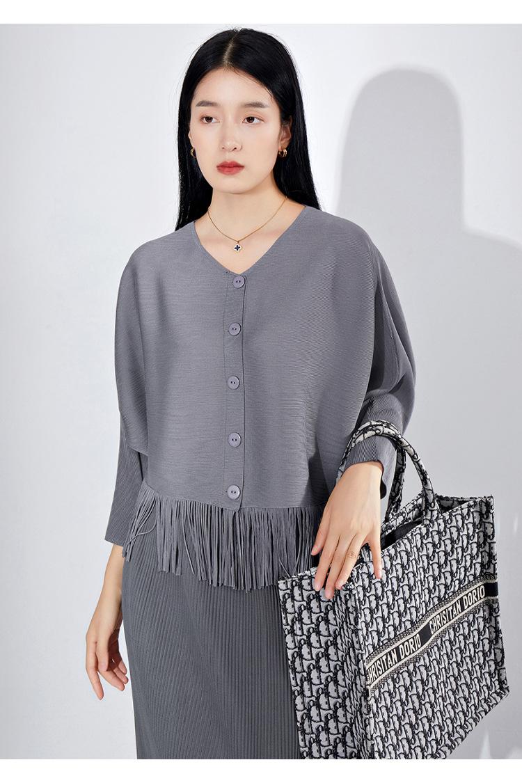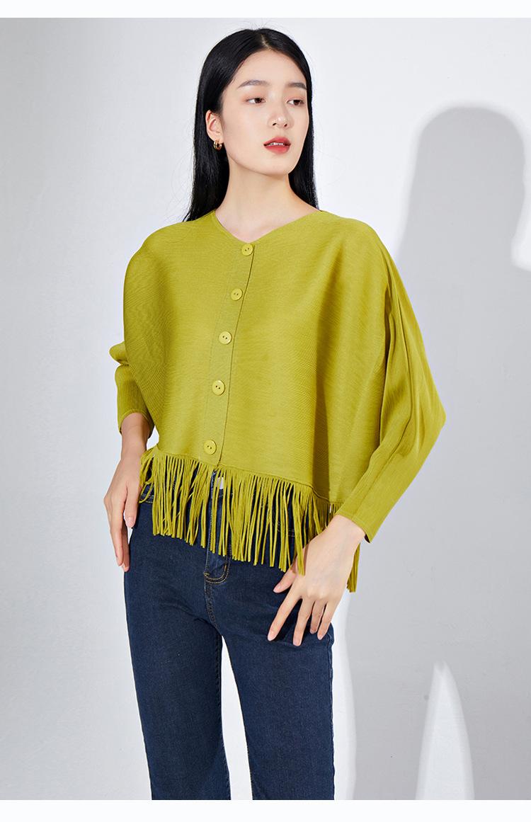 Chaqueta corta ajustada con mangas de cinco puntos para mujer de Miyake, estilo nuevo de primavera y verano, con un botón y top plisado, para uso exterior |