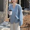Chaqueta vaquera plisada para mujer, nuevo estilo para primavera y otoño, top holgado y ajustado con mangas murciélago, estilo holgado, cárdigan moderno y versátil. |