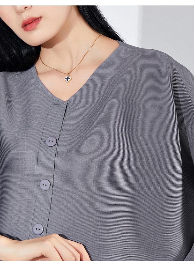 Camiseta de cuello en V de manga corta Miyake para mujer en el verano de 24 años, nuevo estilo, mangas murciélago de alta calidad, tops holgados y de moda para todos los partidos |