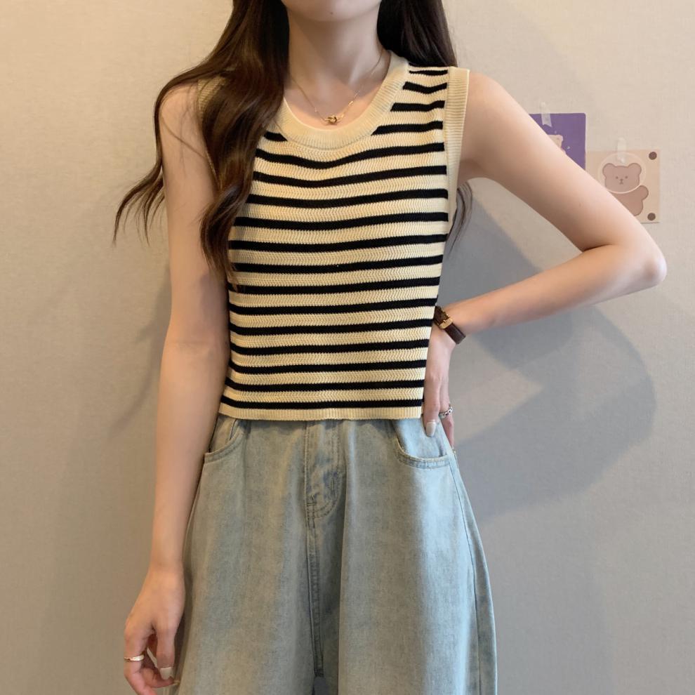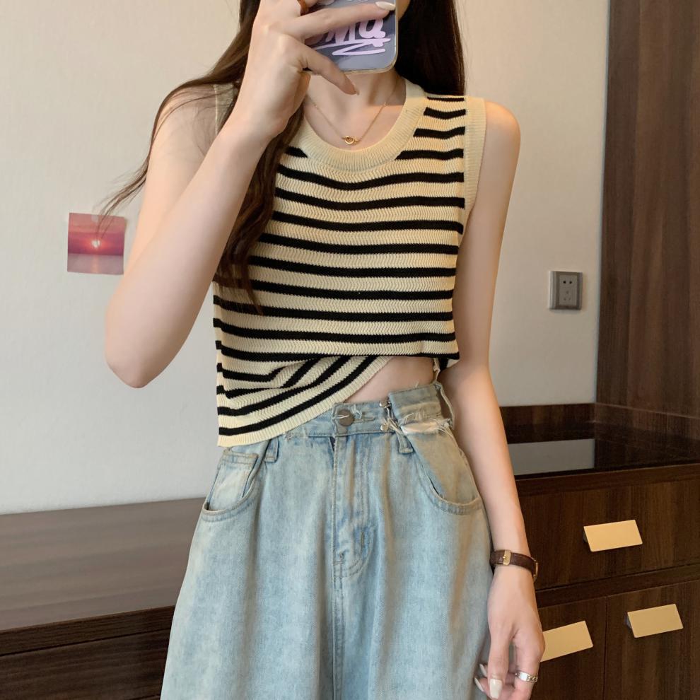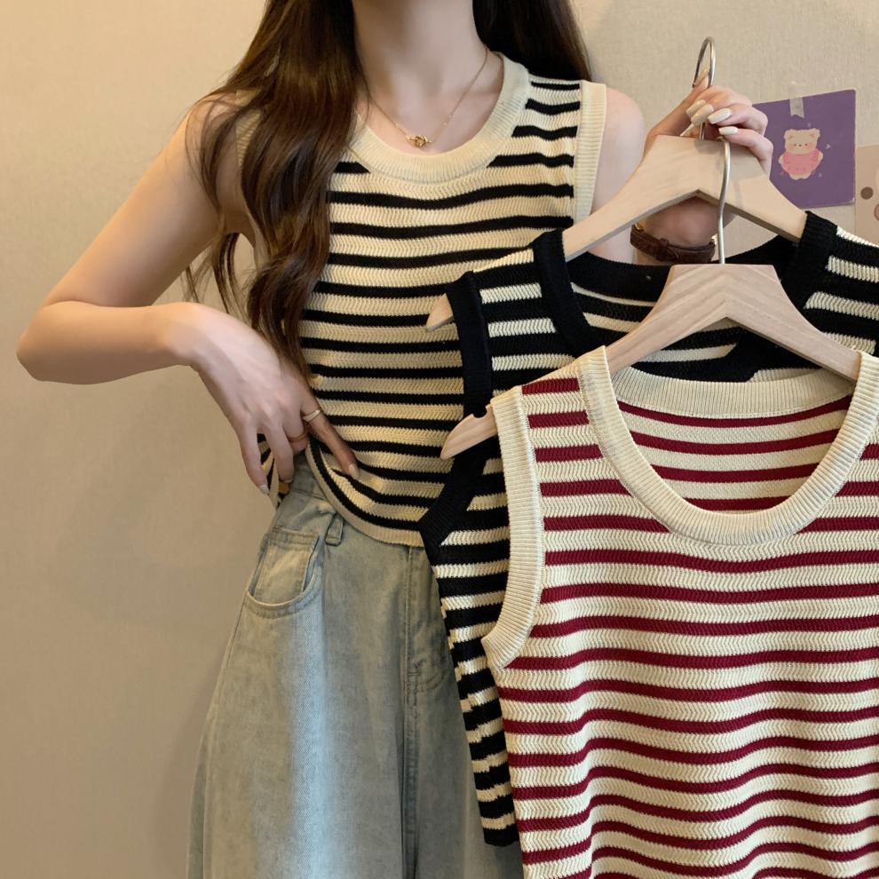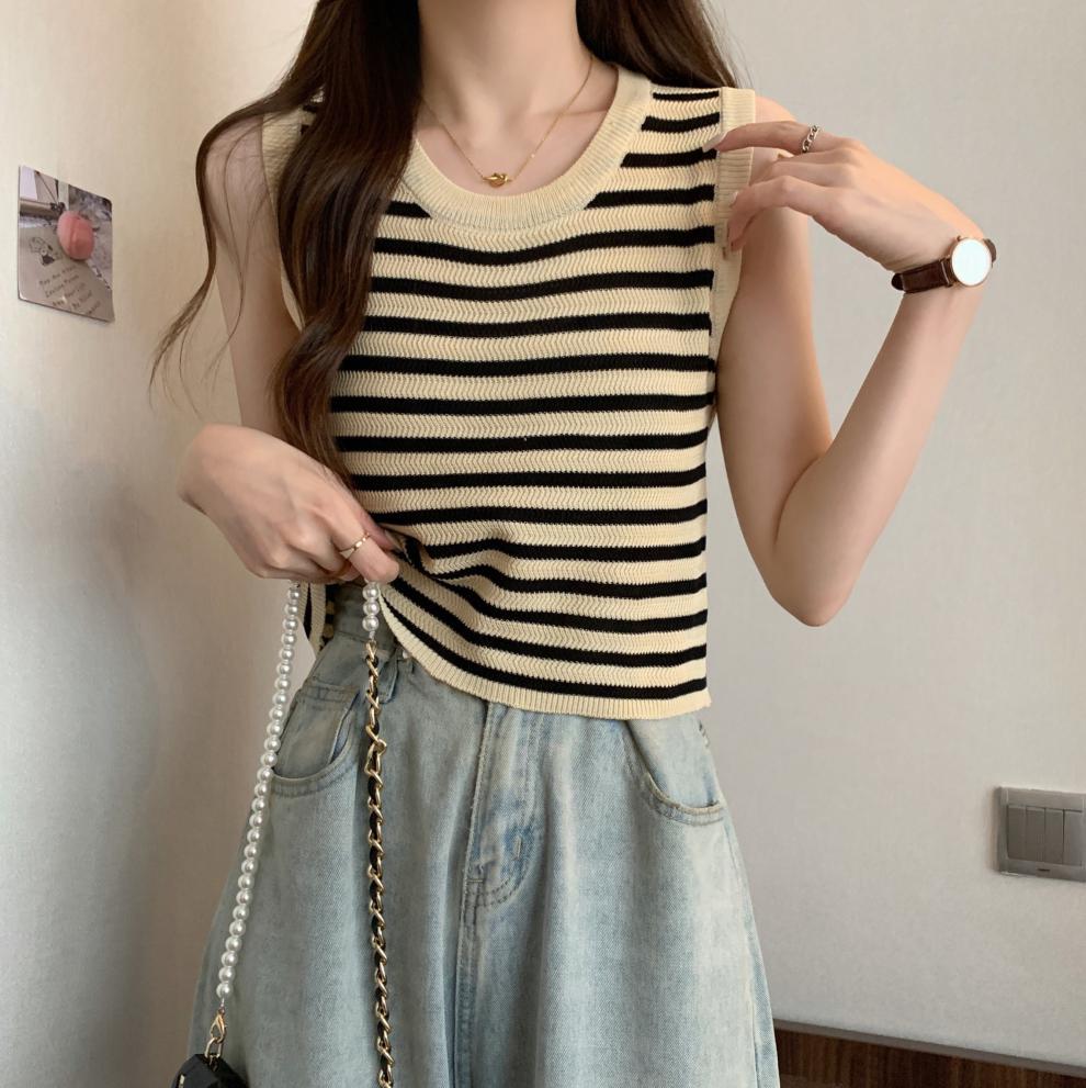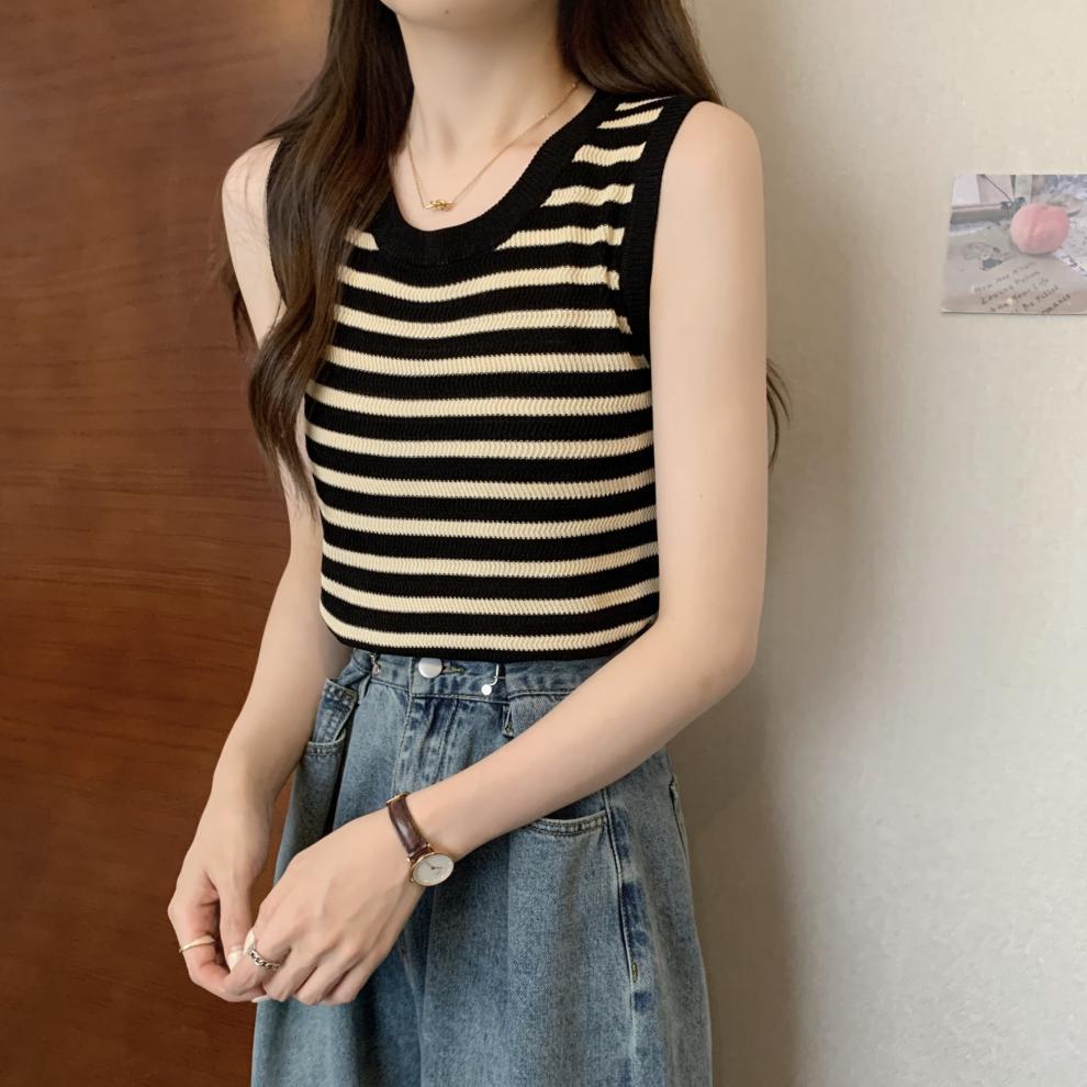 Camisola a rayas para mujer, verano 2024, prenda exterior adelgazante, prenda interior que cubre la carne, top informal de punto sin mangas