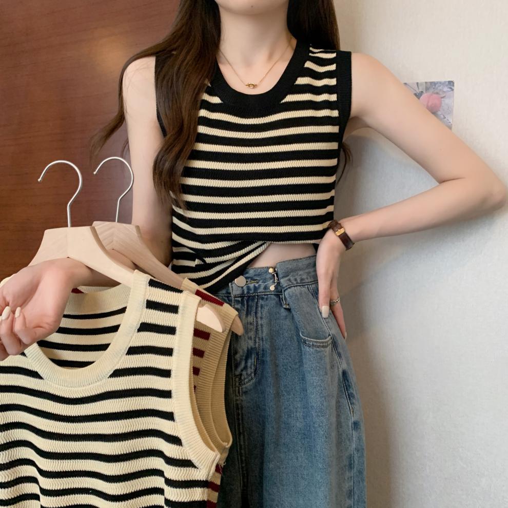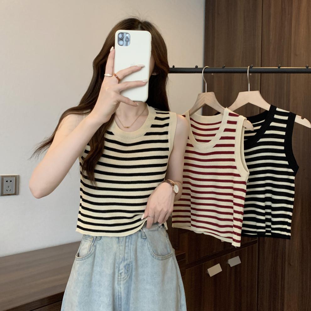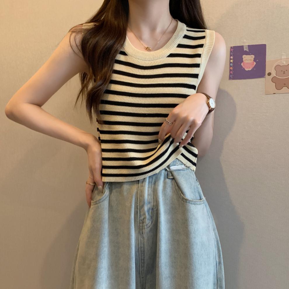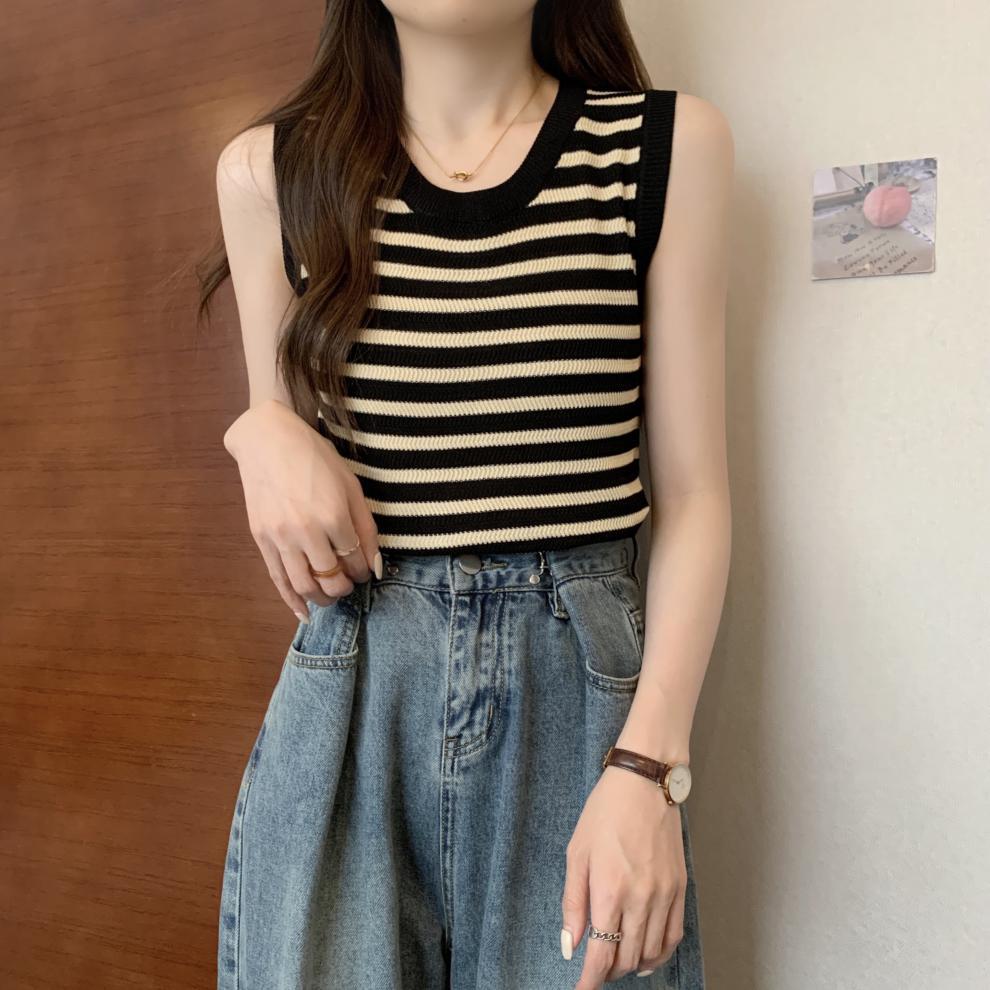 Camisola a rayas para mujer, verano 2024, prenda exterior adelgazante, prenda interior que cubre la carne, top informal de punto sin mangas