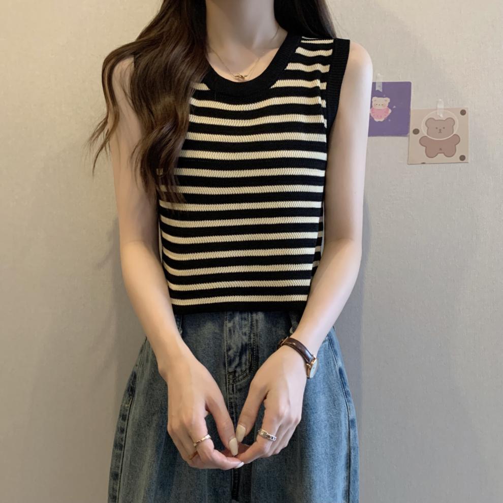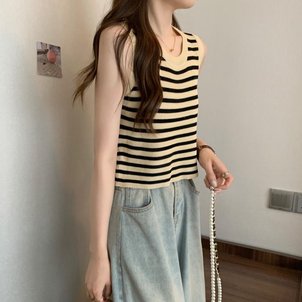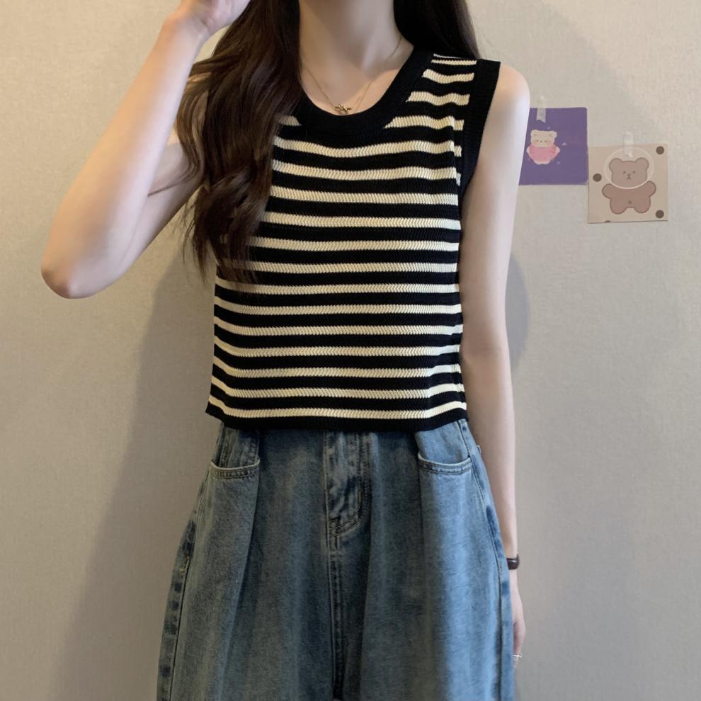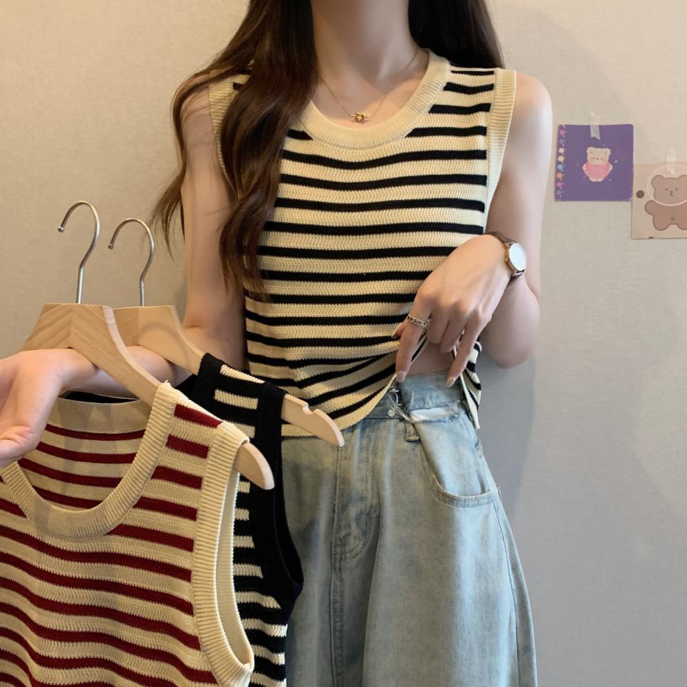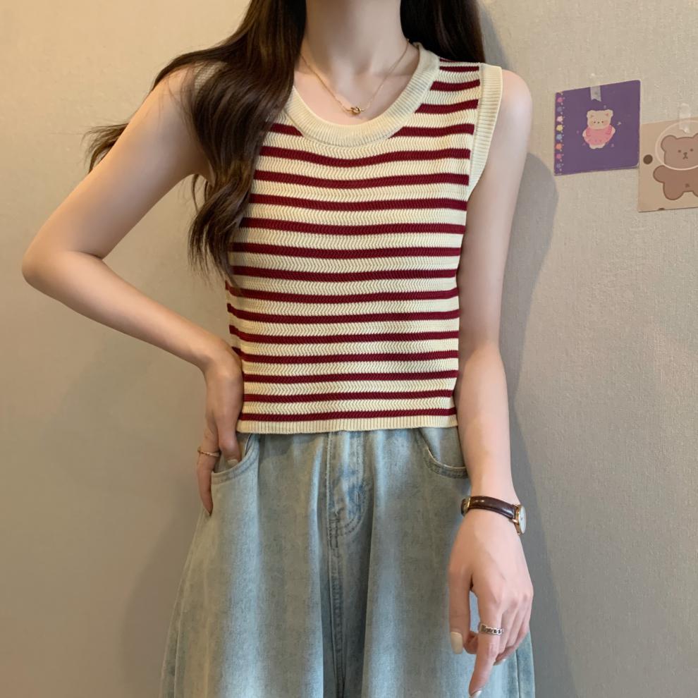 Camisola a rayas para mujer, verano 2024, prenda exterior adelgazante, prenda interior que cubre la carne, top informal de punto sin mangas