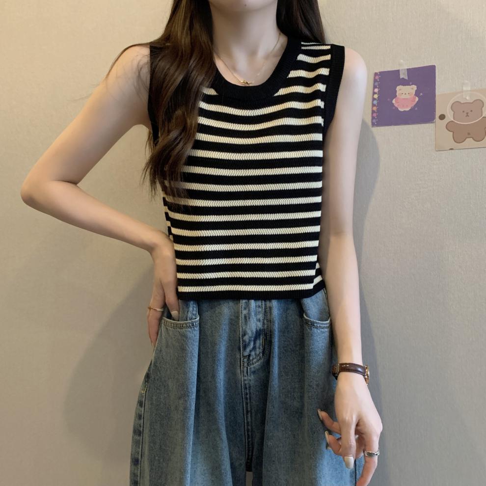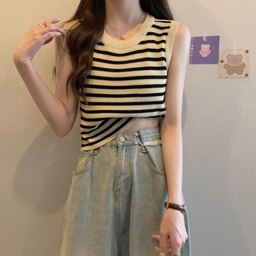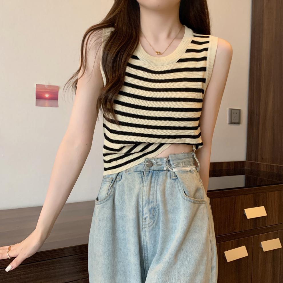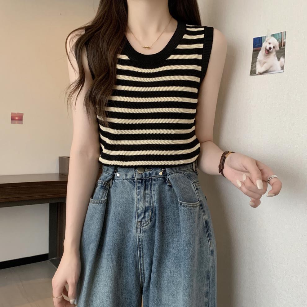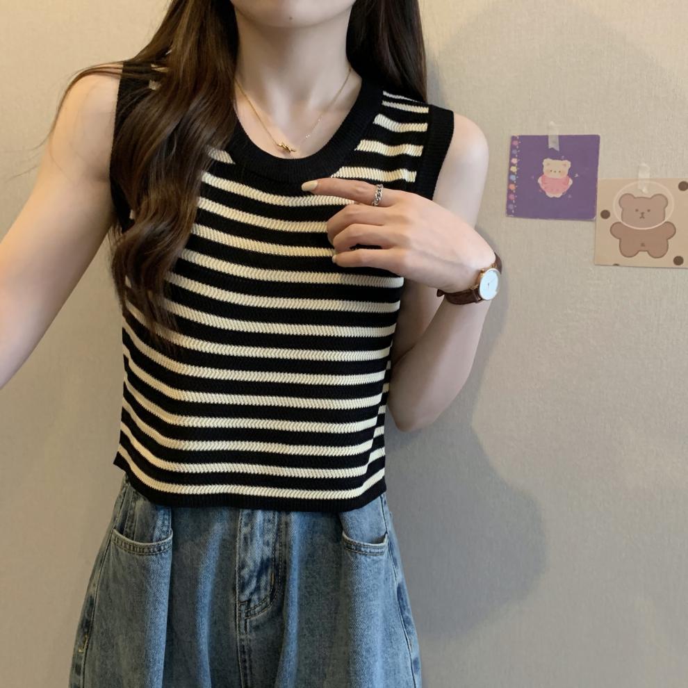 Camisola a rayas para mujer, verano 2024, prenda exterior adelgazante, prenda interior que cubre la carne, top informal de punto sin mangas