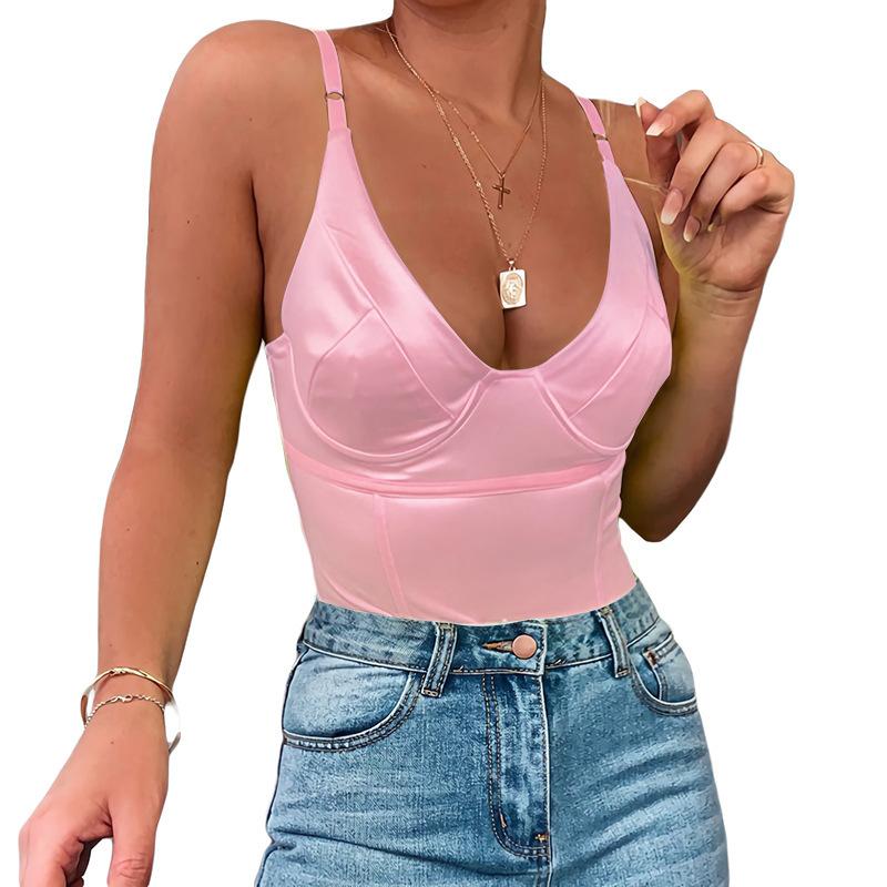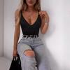 80168 nueva camisola de color sólido, ropa de mujer, moda de verano europea y americana, mono sexy que favorece el pecho para chica sexy.